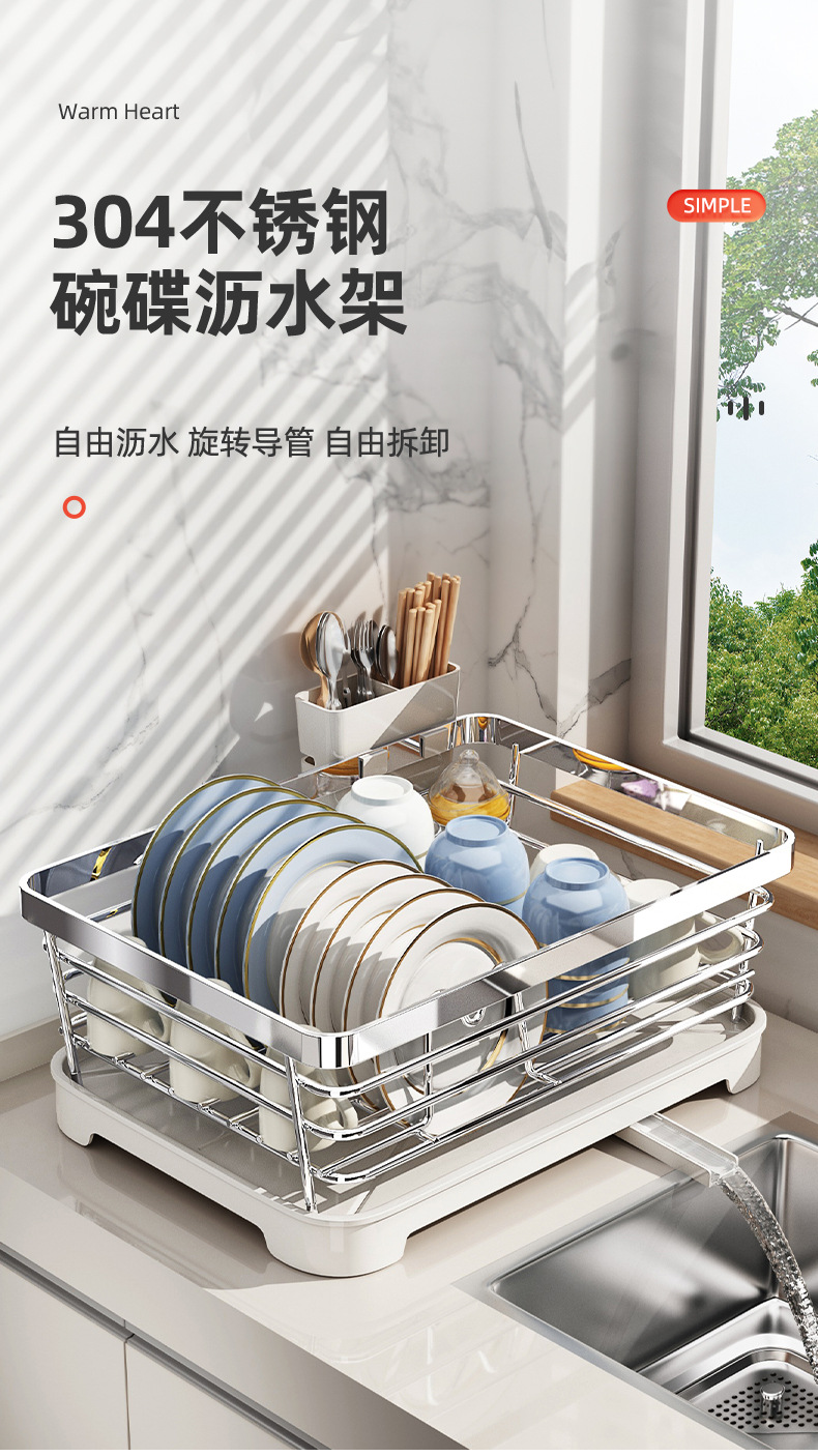 접시 및 접시 배수 랙 접시 랙 테이블 탑 304 스테인레스 스틸 주방 배수 바구니 랙 그릇 및 젓가락 접시 보관 랙