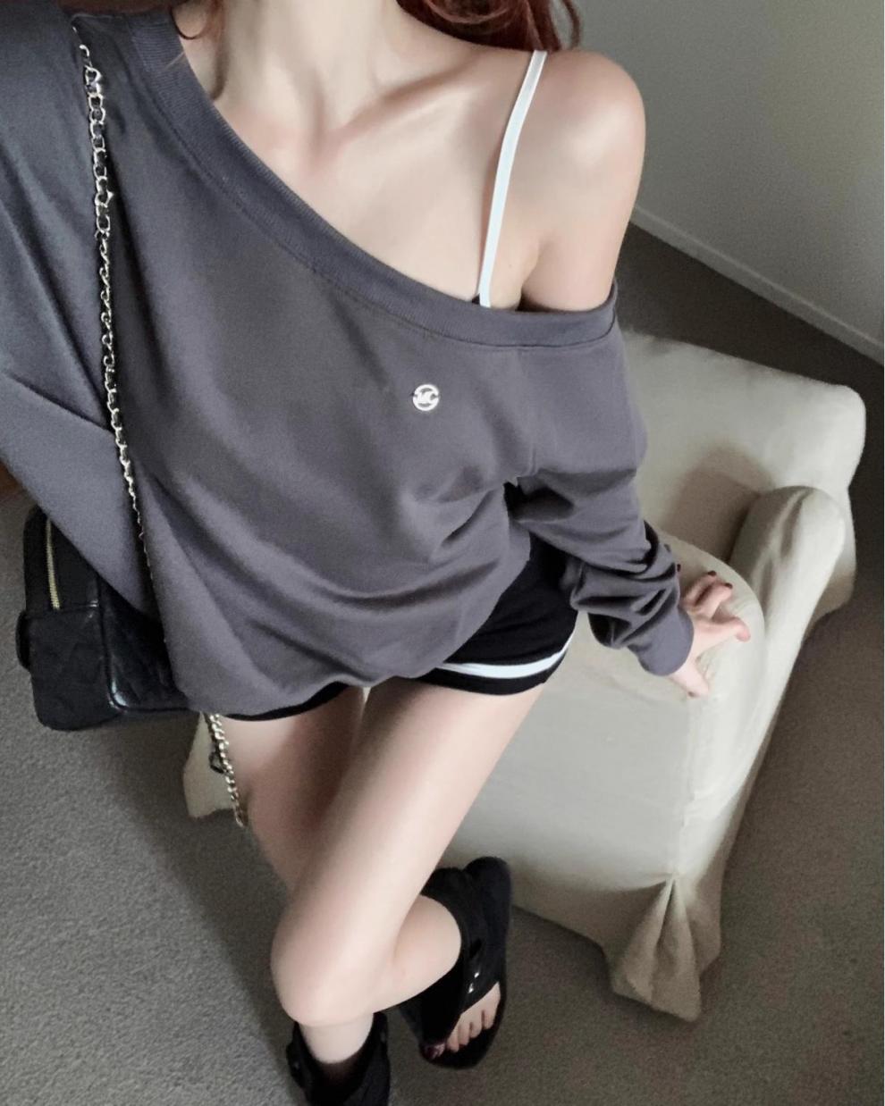 • [카본그레이] 그레이 오블리크 숄더 긴소매