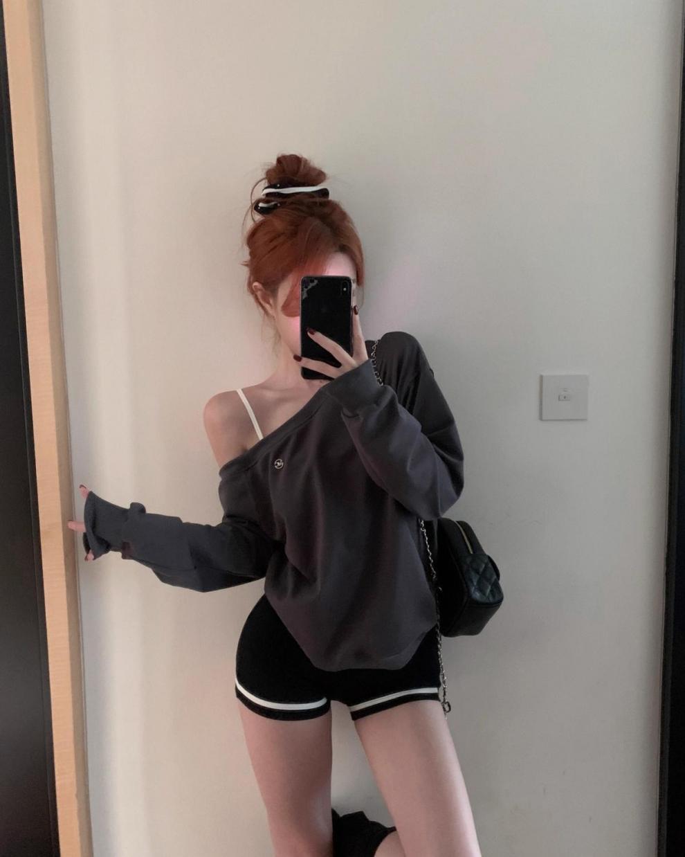 빈티지 그레이 긴팔 티셔츠 여성용 느슨한 게으른 스웨트 셔츠 디자인 슬림핏 올매치 탑스토어 가기