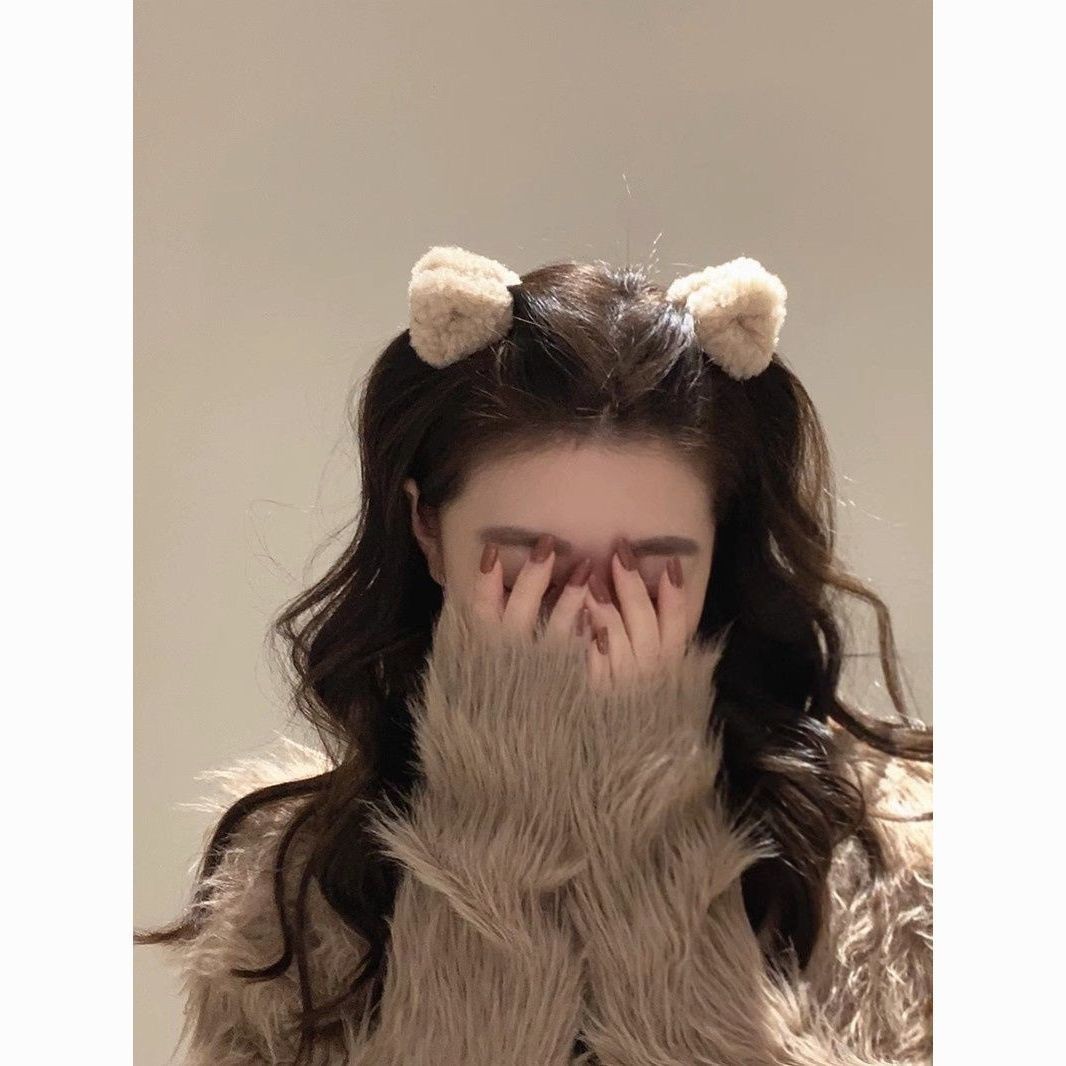 【신상품】털이 부드러운 귀 모양 삼각형 작은 집게핀 앞머리핀 양털 집게핀 머리 장식 고양이 귀 스타일스토어 가기