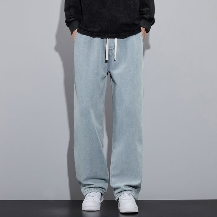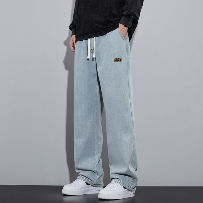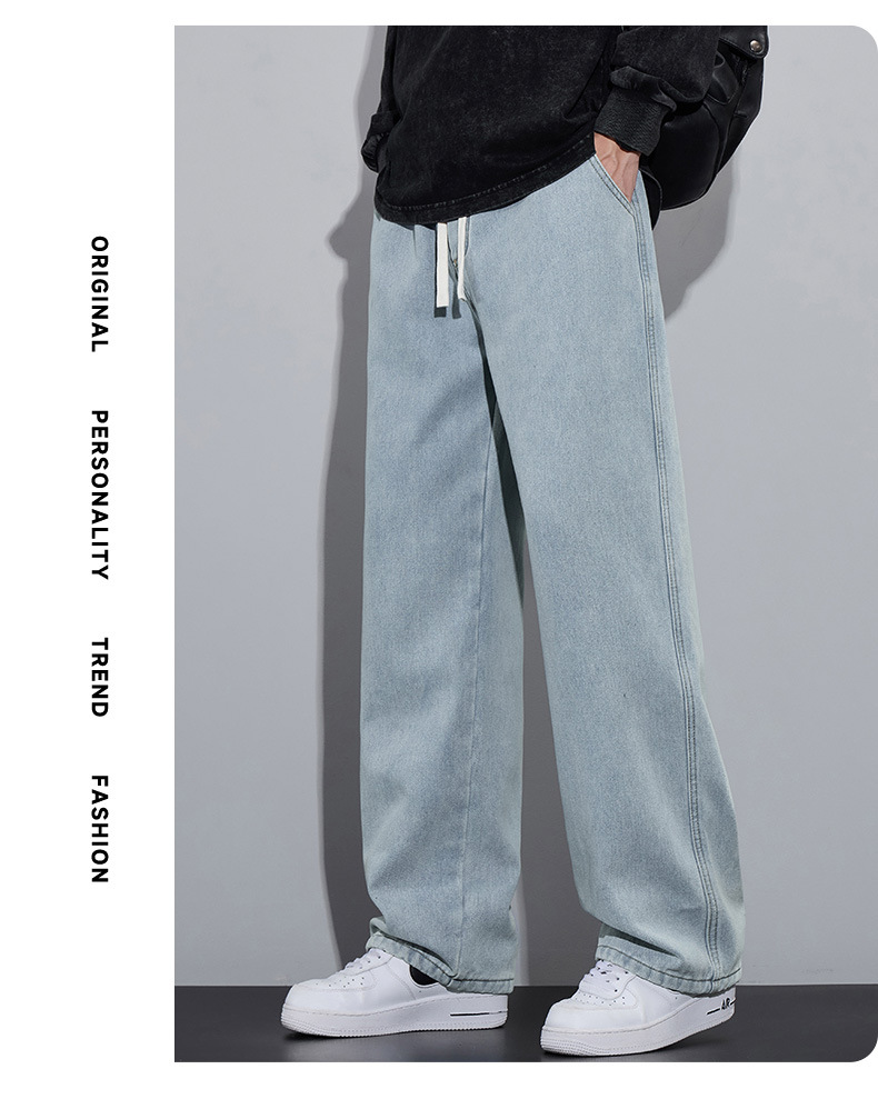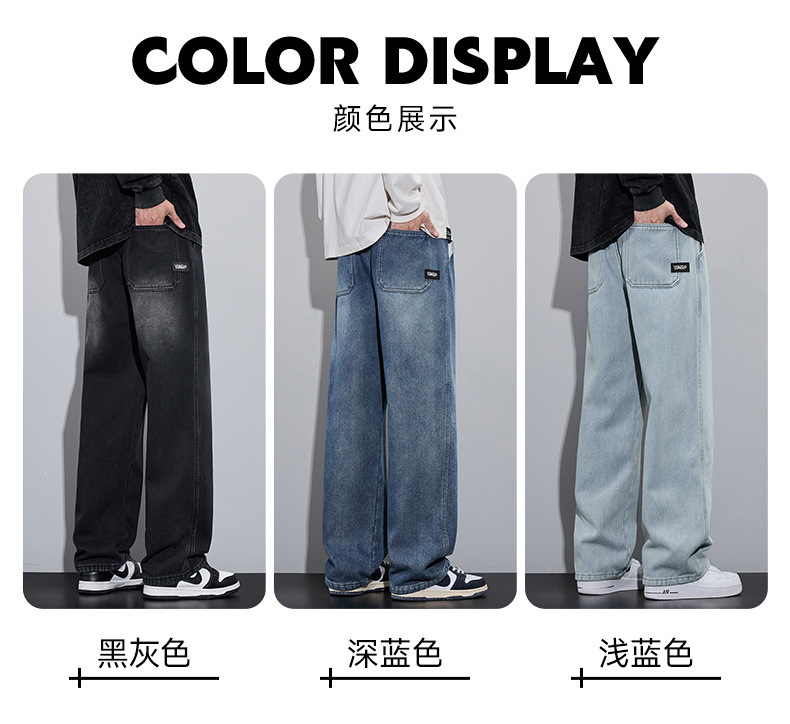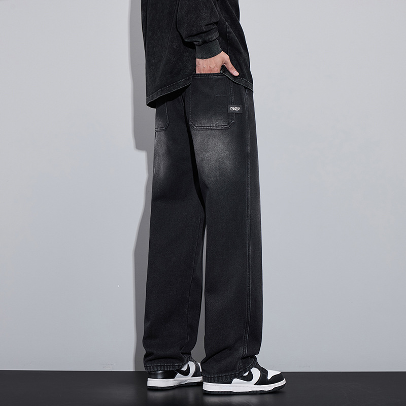 2024 가을과 겨울 미국 스타일 청바지 남성 바지 하이 스트리트 트렌디 브랜드 소년 넓은 다리 바지 느슨한 캐주얼 스트레이트 바지스토어 가기