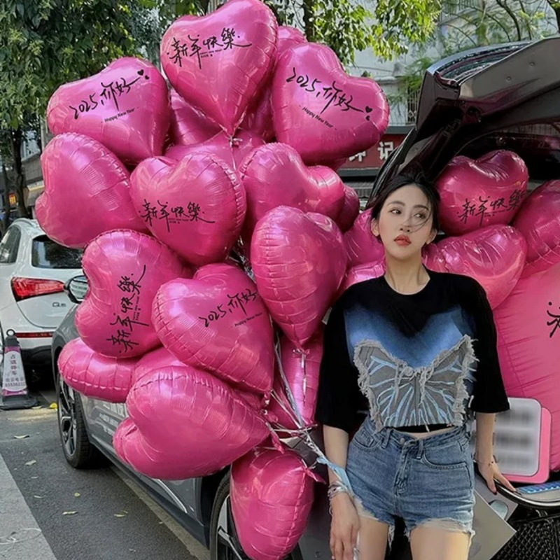새해 복 많이 받으세요 2025 알루미늄 풍선 봄 축제 설날 분위기 배열 Net Red Stalls Street, 야시장 사진 판매