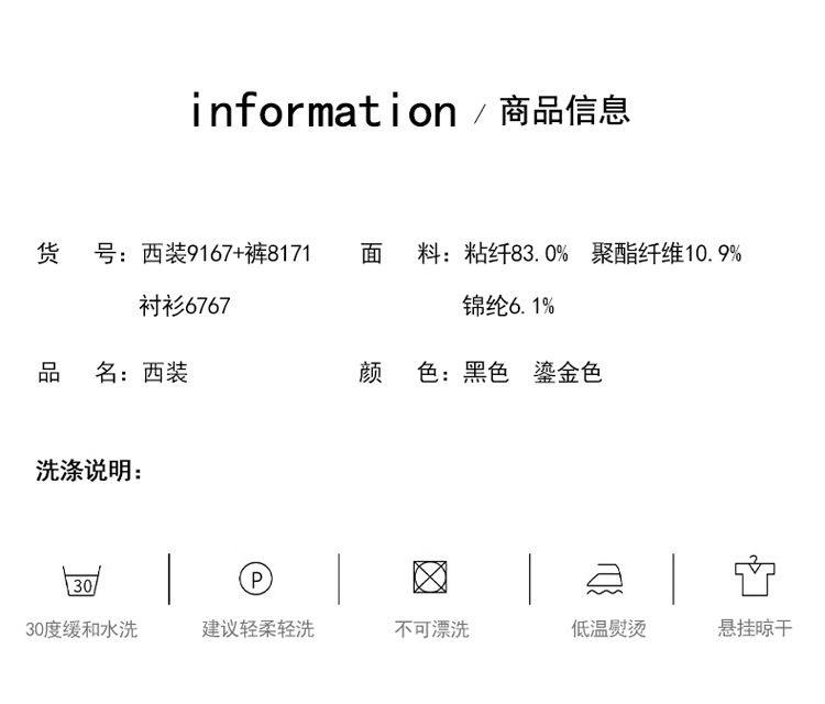 • 블랙 레귤러 스타일 9167 재킷 + 8171 바지 + 화이트 6767 셔츠