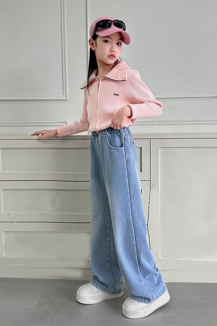 소녀 기모 바지 2024 가을/겨울 새로운 중대형 어린이 넓은 다리 두꺼운 캐주얼 올 매치 따뜻한 청바지스토어 가기