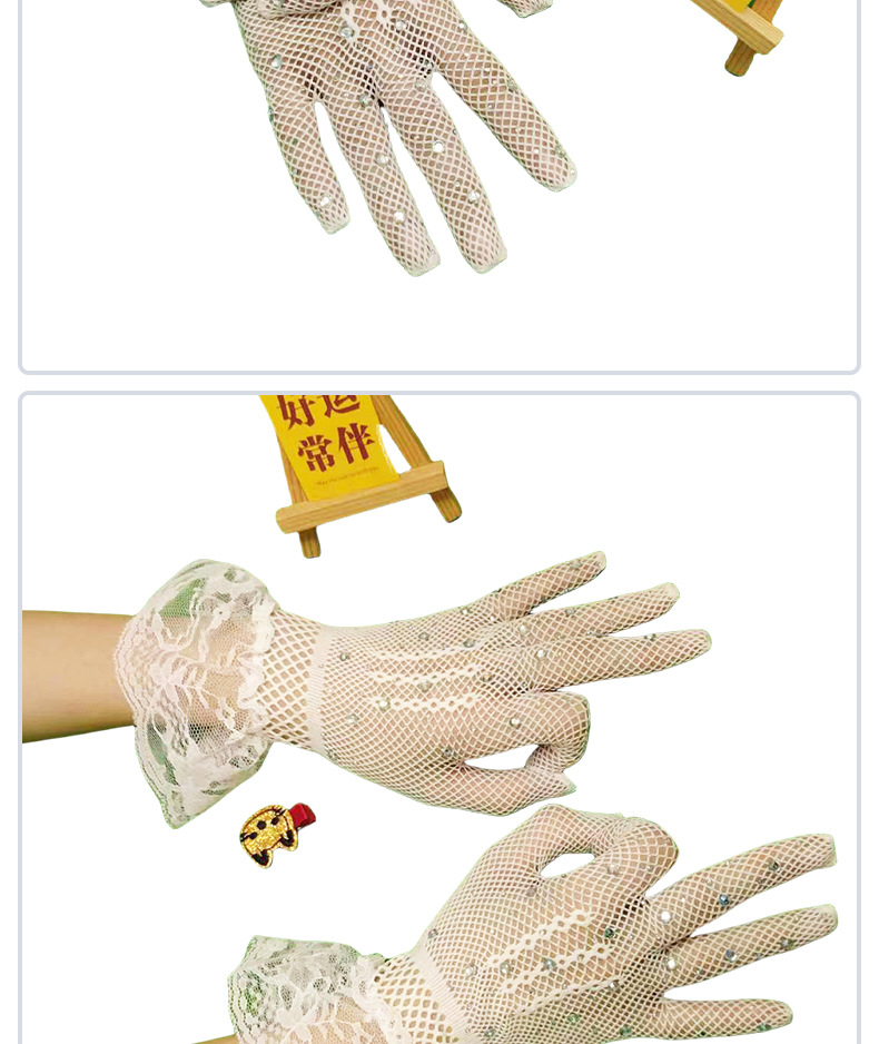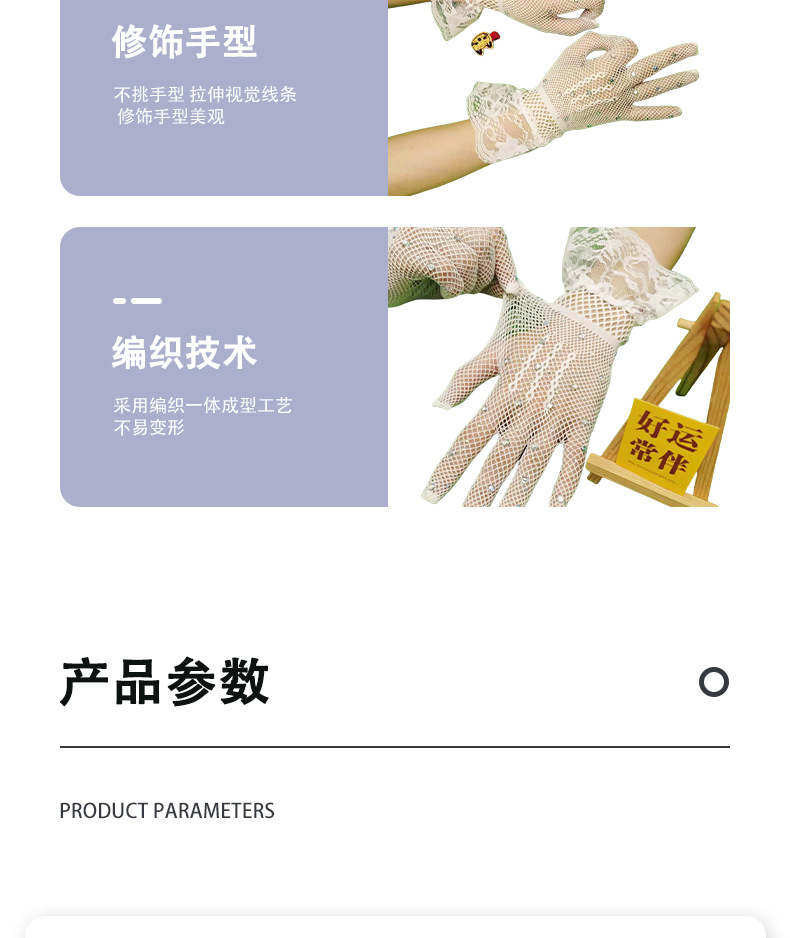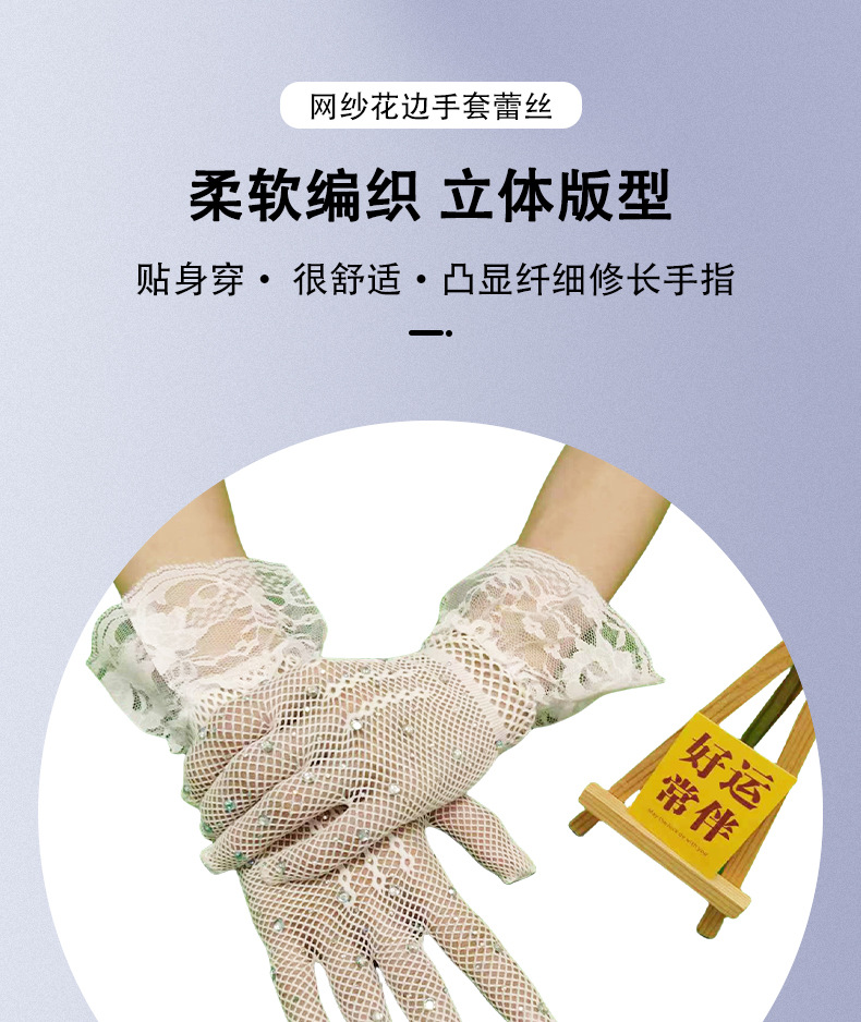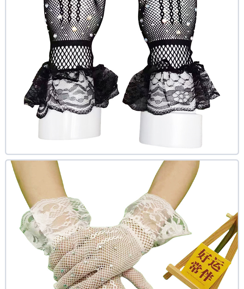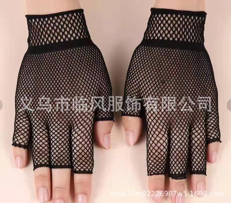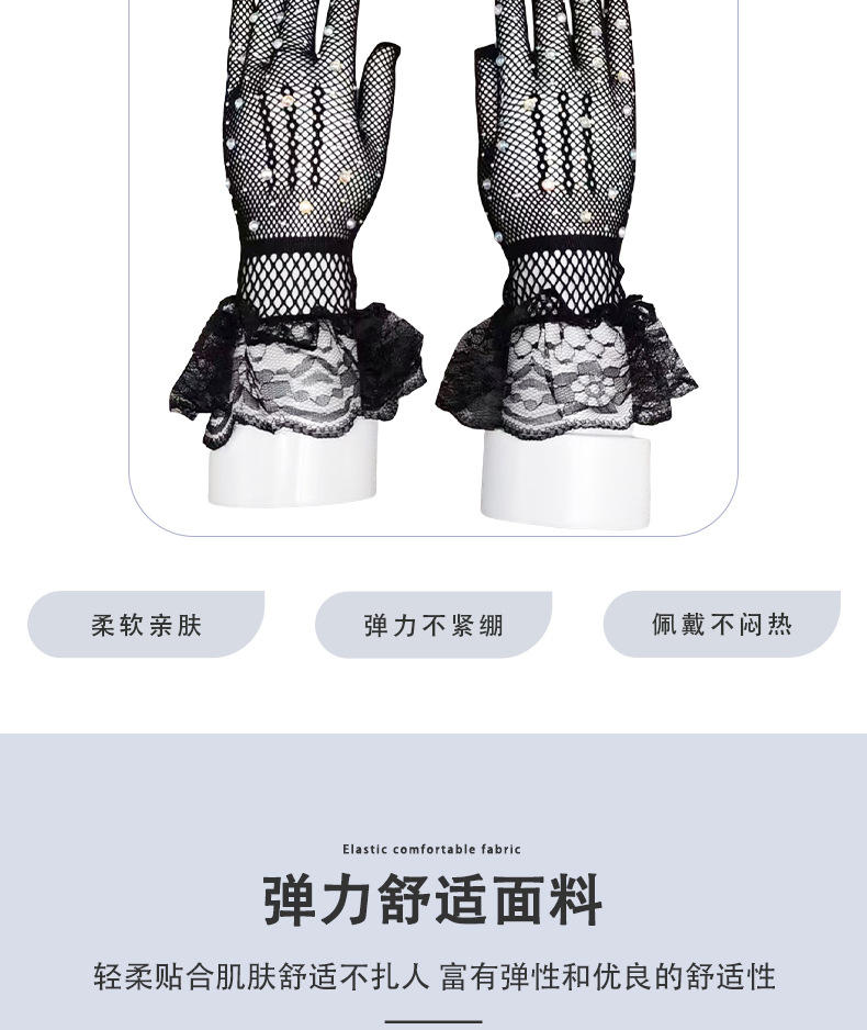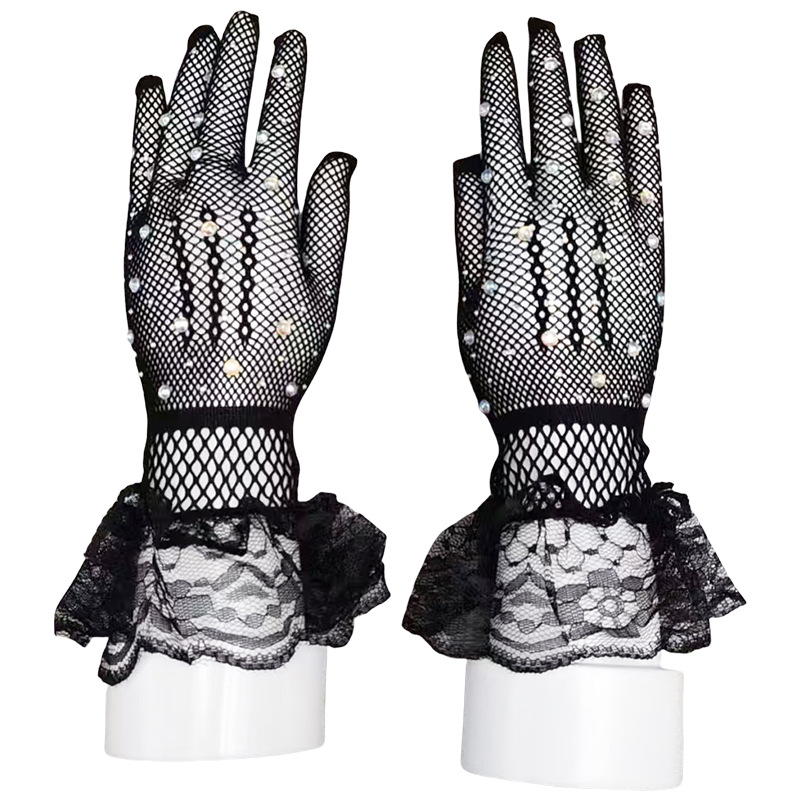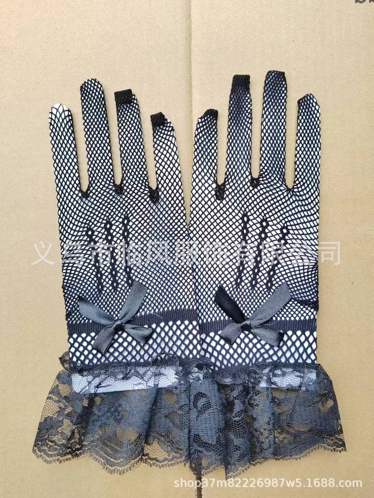 여성을위한 국경 얇은 메쉬 장갑 중공 여름 블랙 스트레치 레이스 핫 다이아몬드 치파오 댄스 보우 짧은 스타일