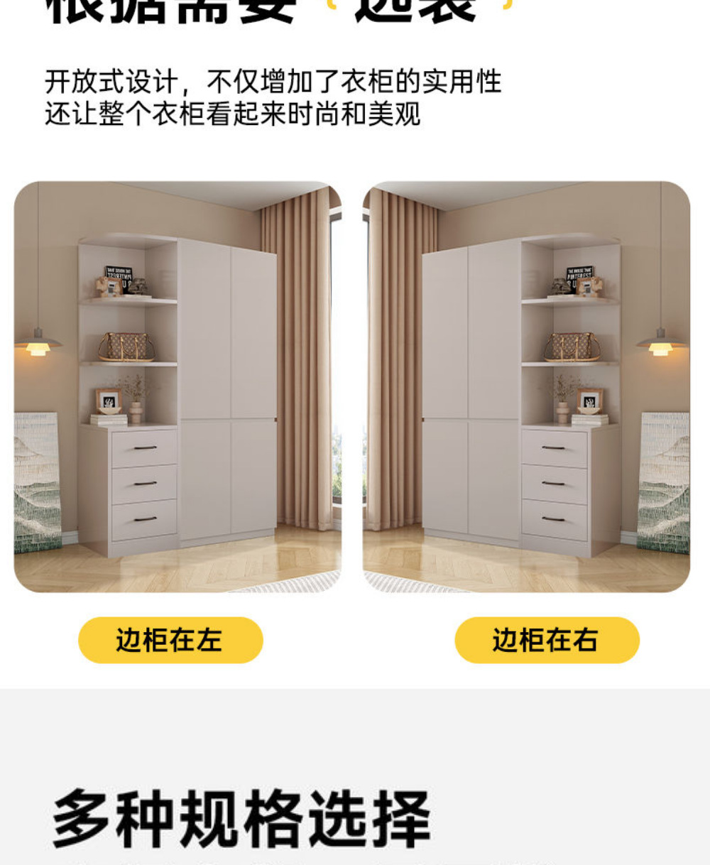 [페인트없는 기술] 옷장 홈 침실 단단한 나무 옷장 빛 고급 캐비닛 조합 저장 캐비닛 현대 단순