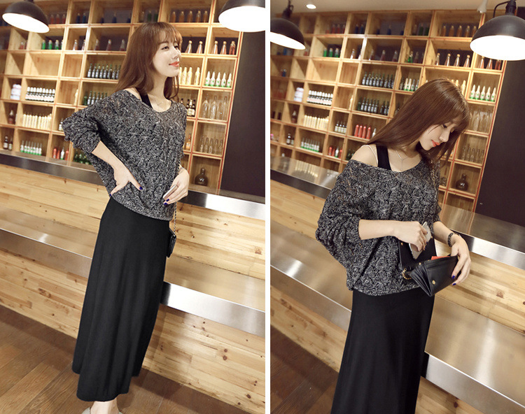 2022 봄 · 가을 플러스 사이즈 여성용 긴팔 니트 세트 스커트 한국식 슬림핏 투피스 원피스 롱 스커트