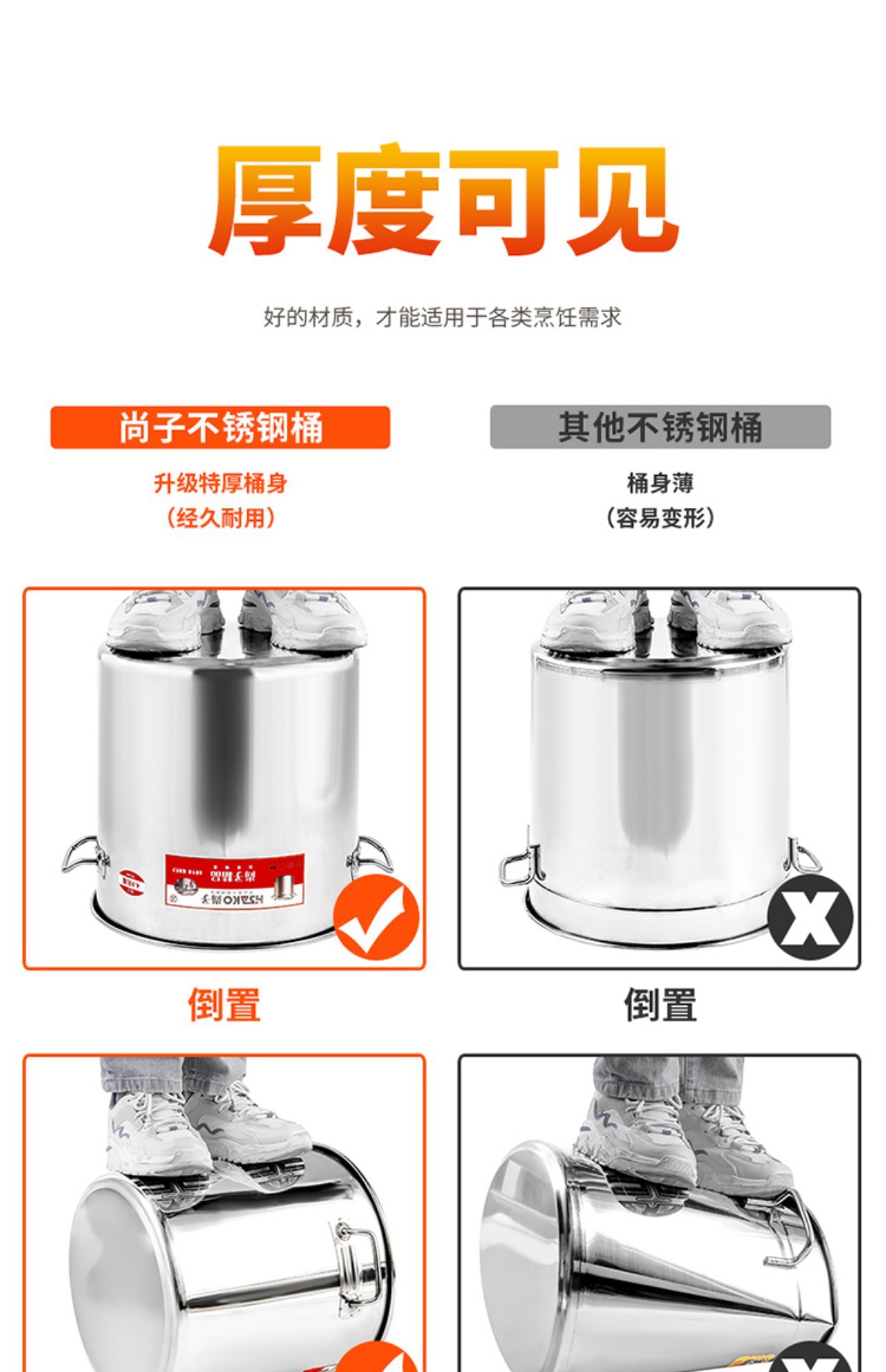 304 스테인레스 스틸 버킷 뚜껑 대형 수프 포트 상업용 두꺼운 가정용 물 버킷 오일 버킷 절인 냄비 스테인레스 스틸 수프 버킷스토어 가기