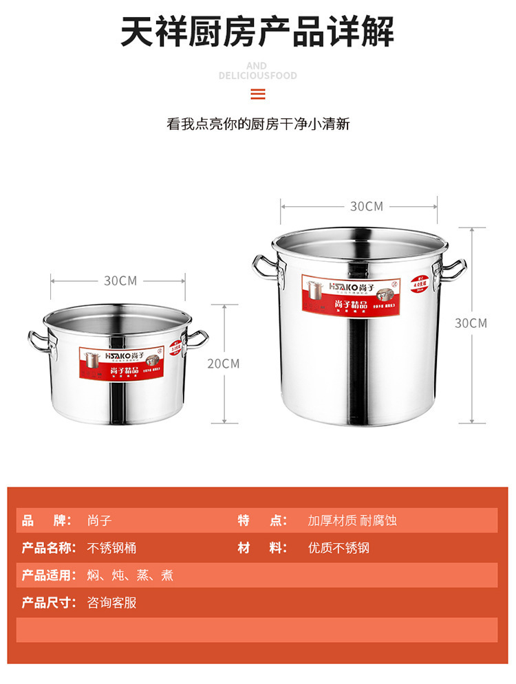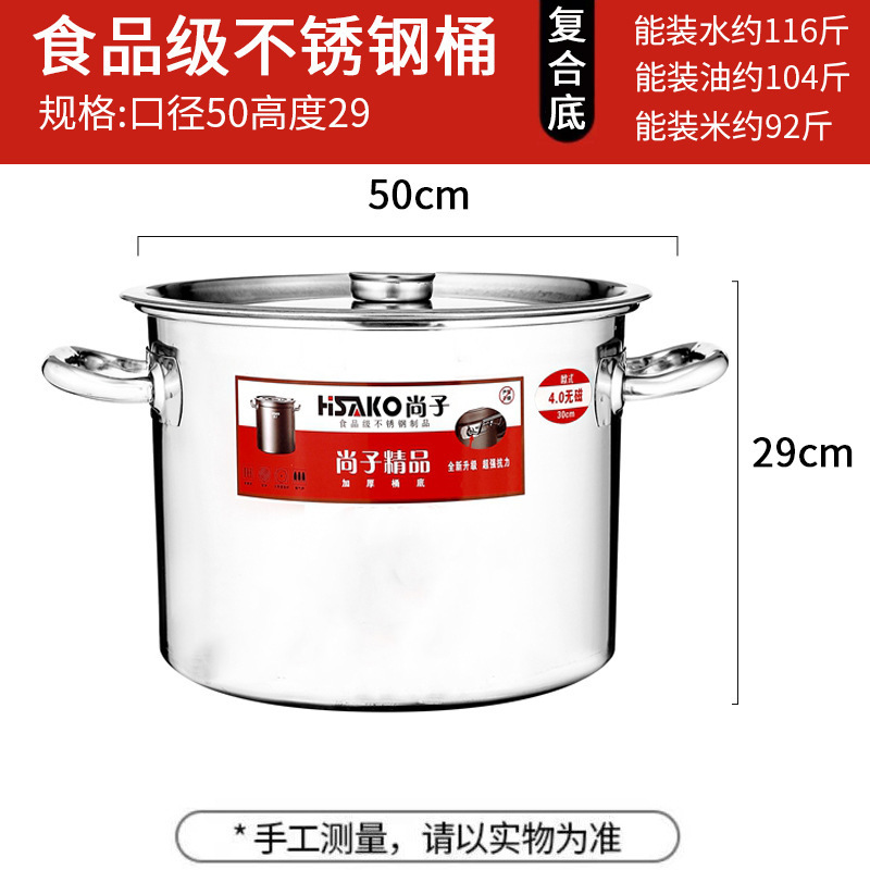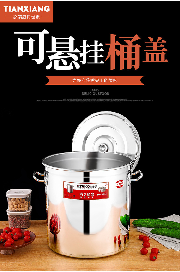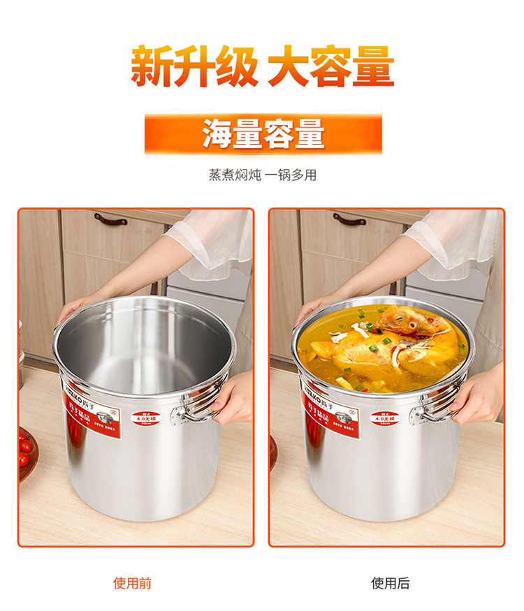 304 스테인레스 스틸 버킷 뚜껑 대형 수프 포트 상업용 두꺼운 가정용 물 버킷 오일 버킷 절인 냄비 스테인레스 스틸 수프 버킷