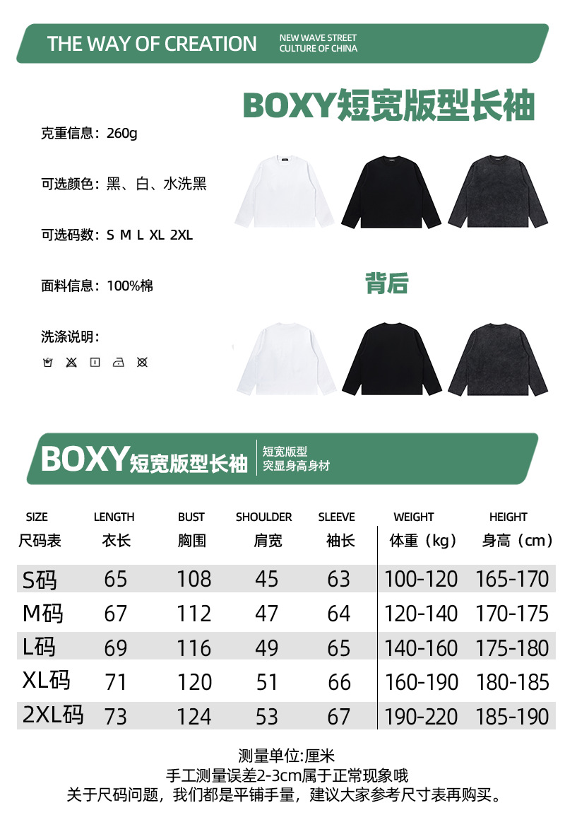 • 워시드 블랙 (BOXY 쇼트 와이드 핏 긴팔 티셔츠)