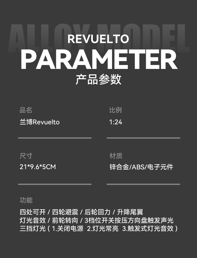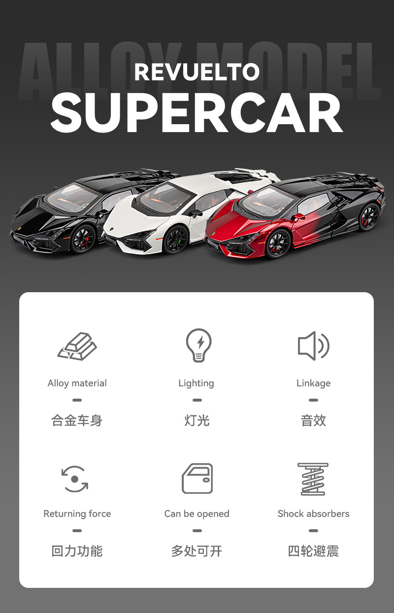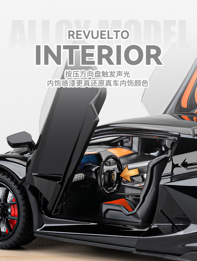 자동차 1:24 Rambo Daniel Reventon 사운드 및 라이트 백 자동차 어린이 장난감 슈퍼 런 시뮬레이션 합금 모델 장식품