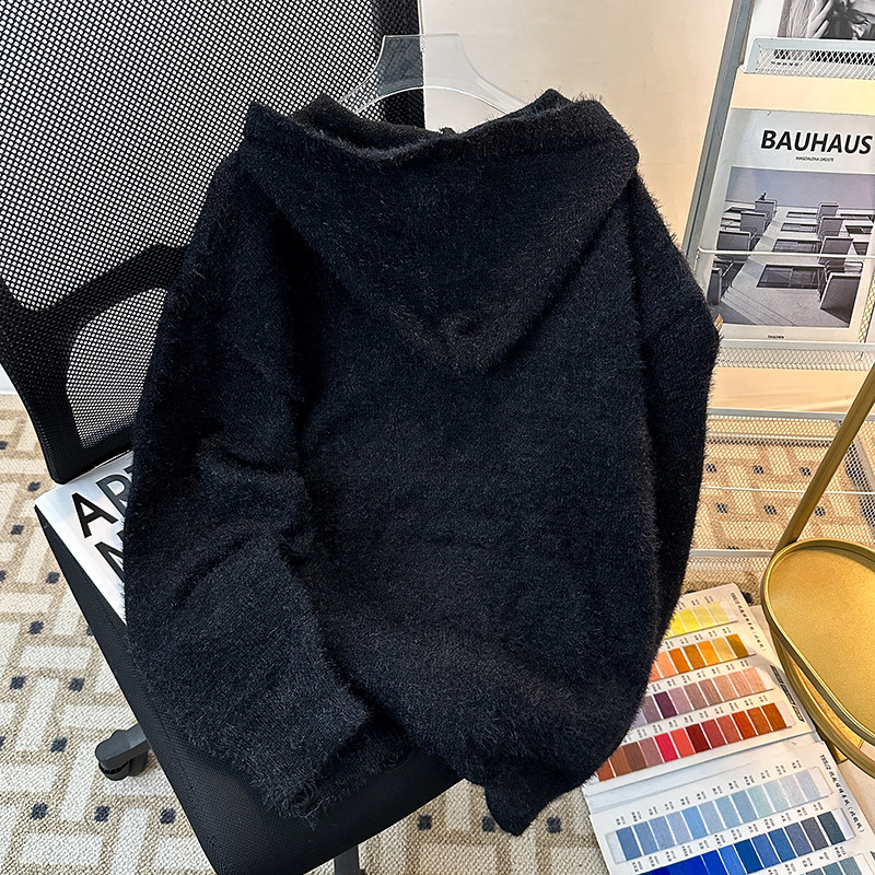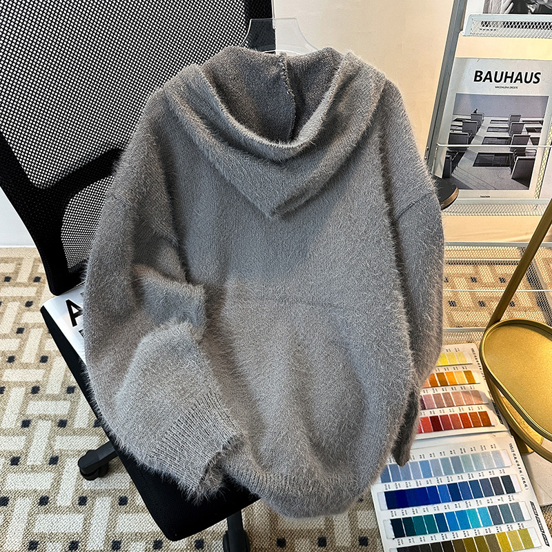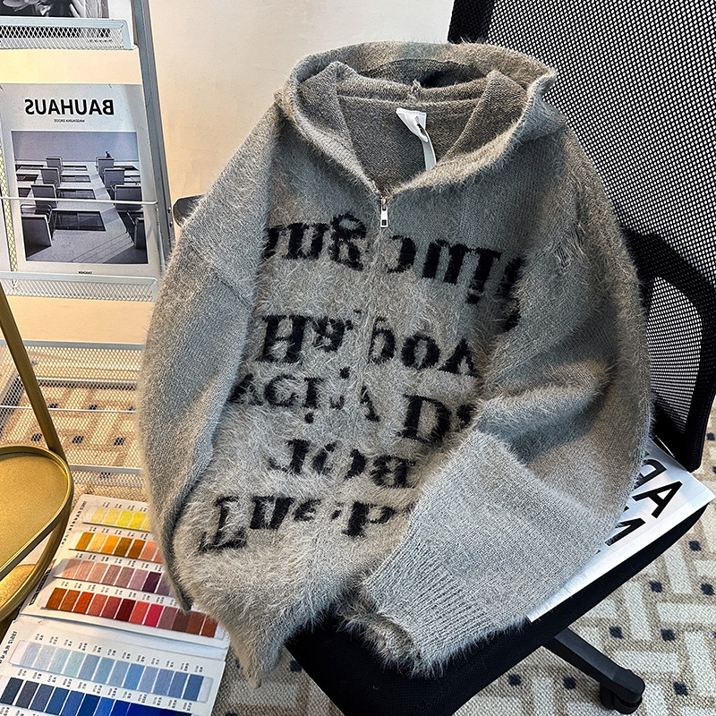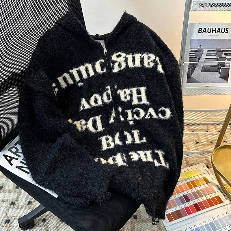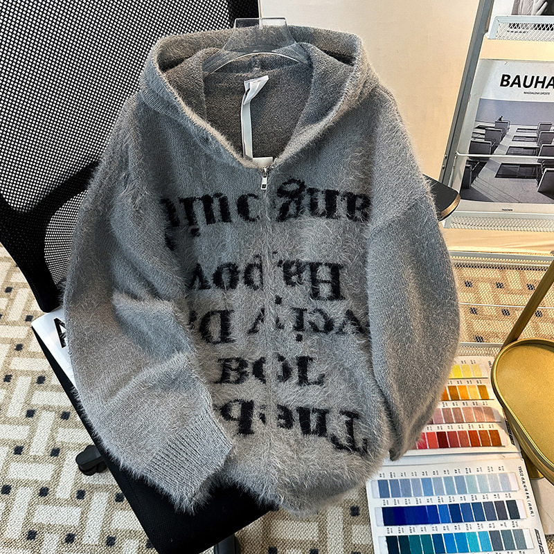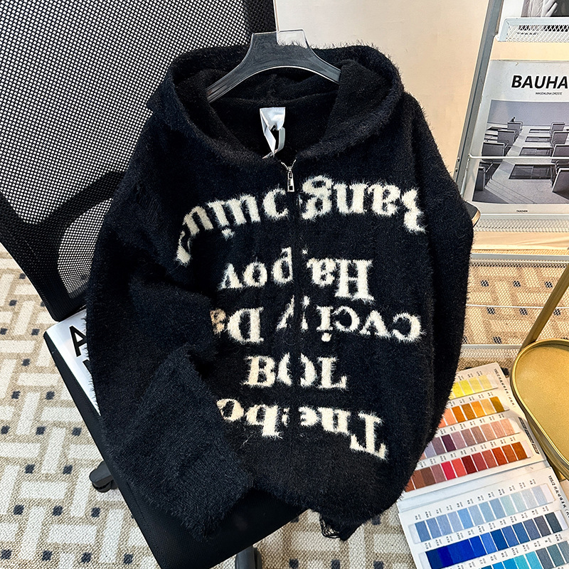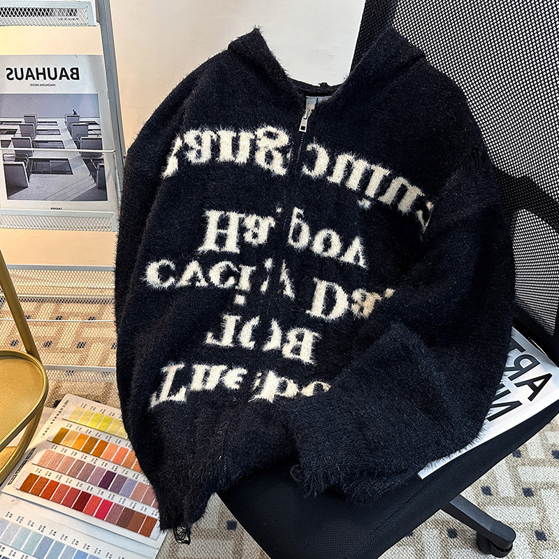 아메리칸 스타일 게으른 레트로 하이 스트리트 찢어진 후드 니트 카디건 남녀 스웨터 루즈 커플 지퍼 봉제 재킷