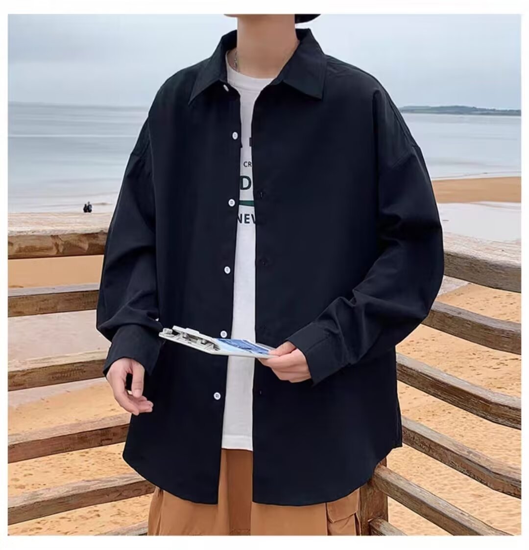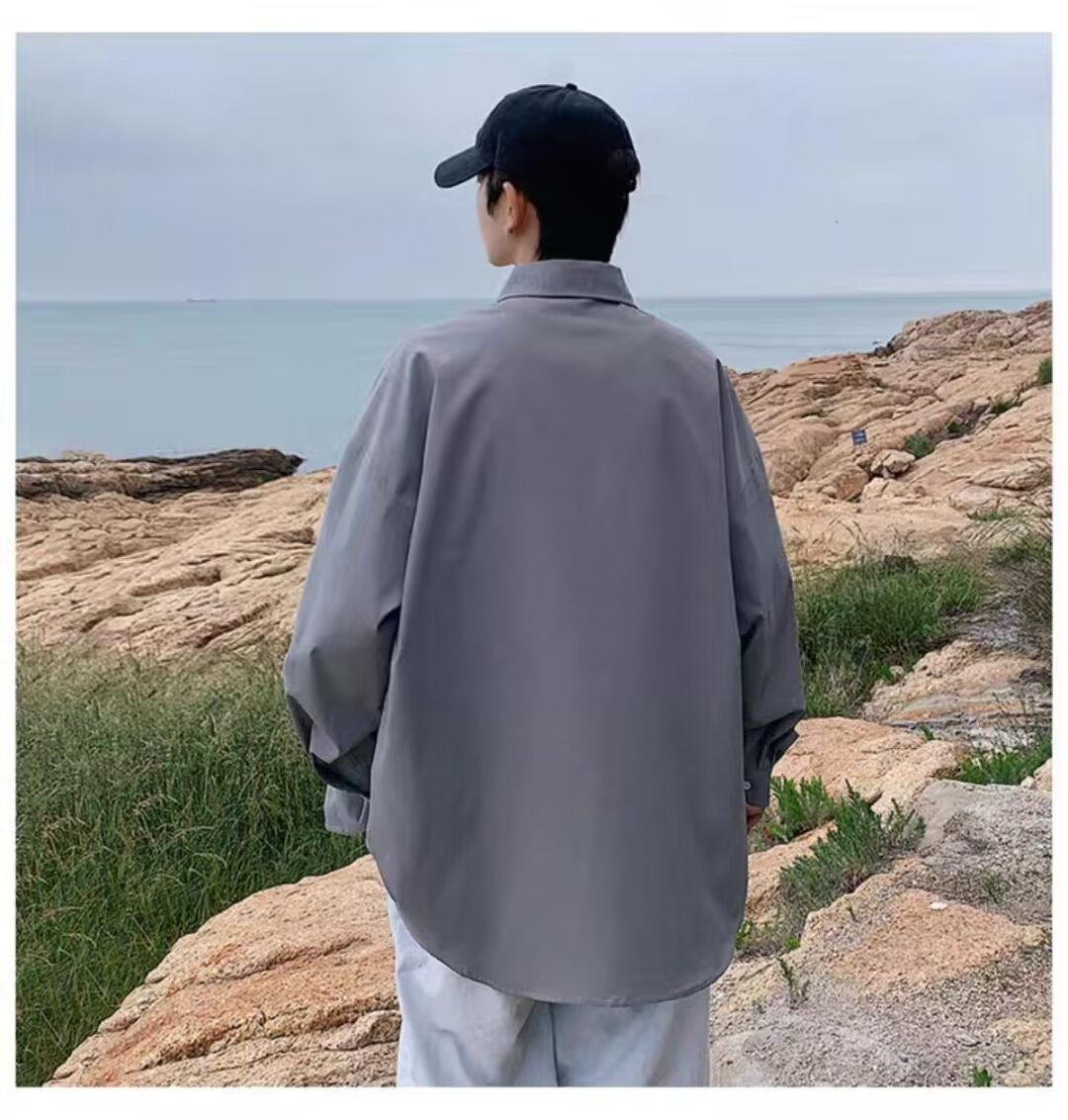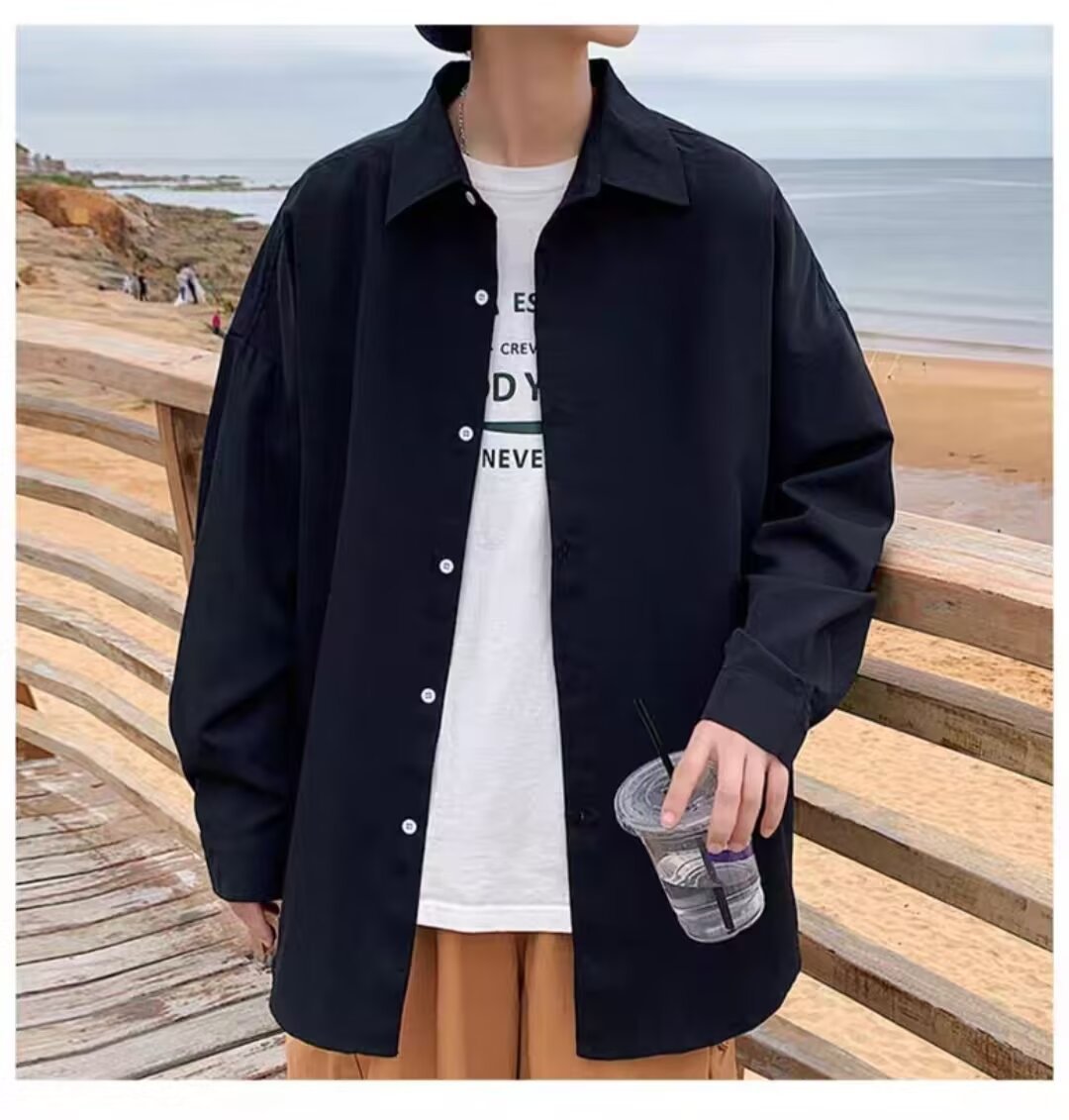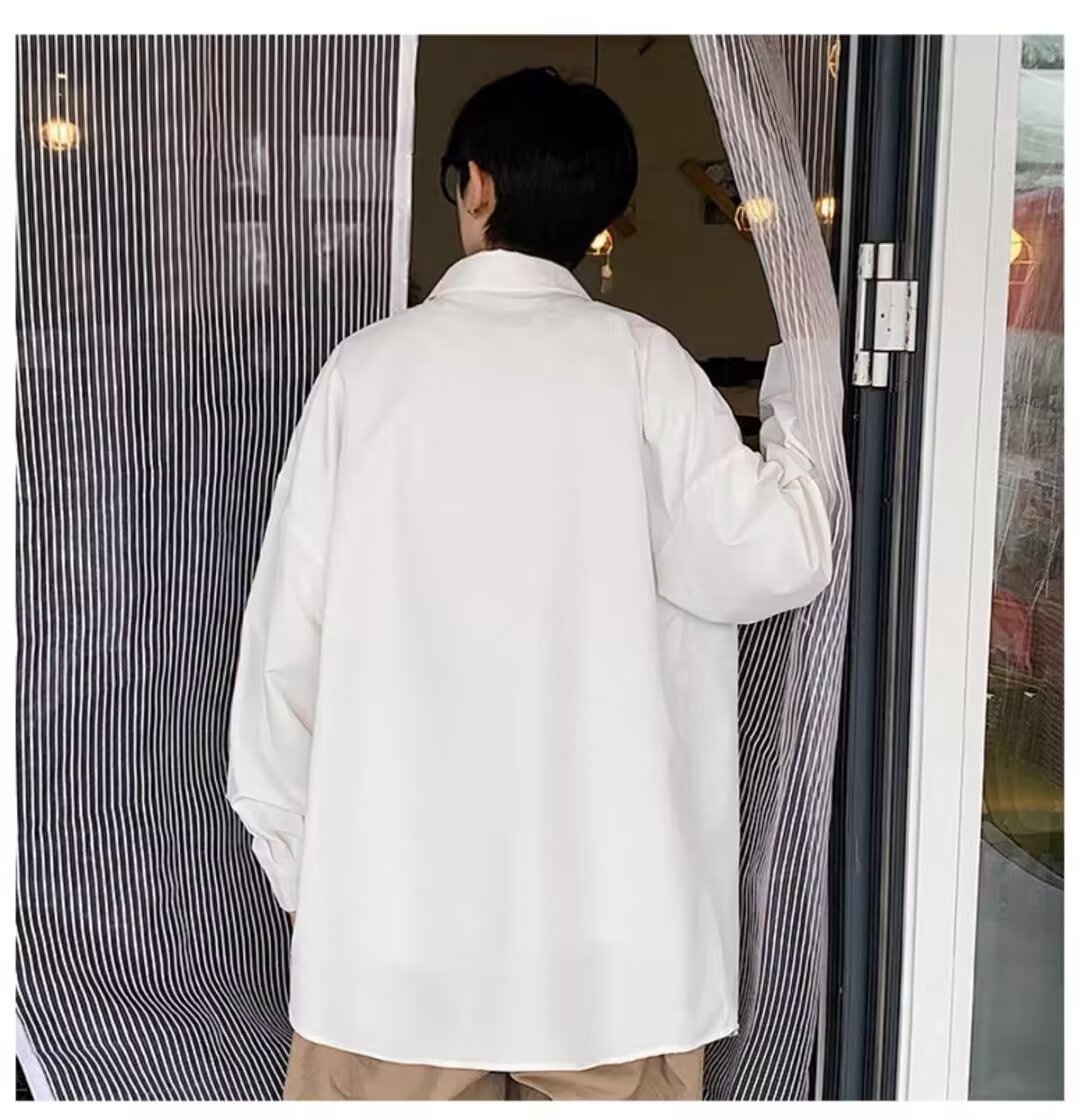 솔리드 컬러 긴팔 셔츠 남성 일본 유행 루즈 다용도 라펠 셔츠 커플 하이 스트리트 캐주얼 청소년 재킷스토어 가기