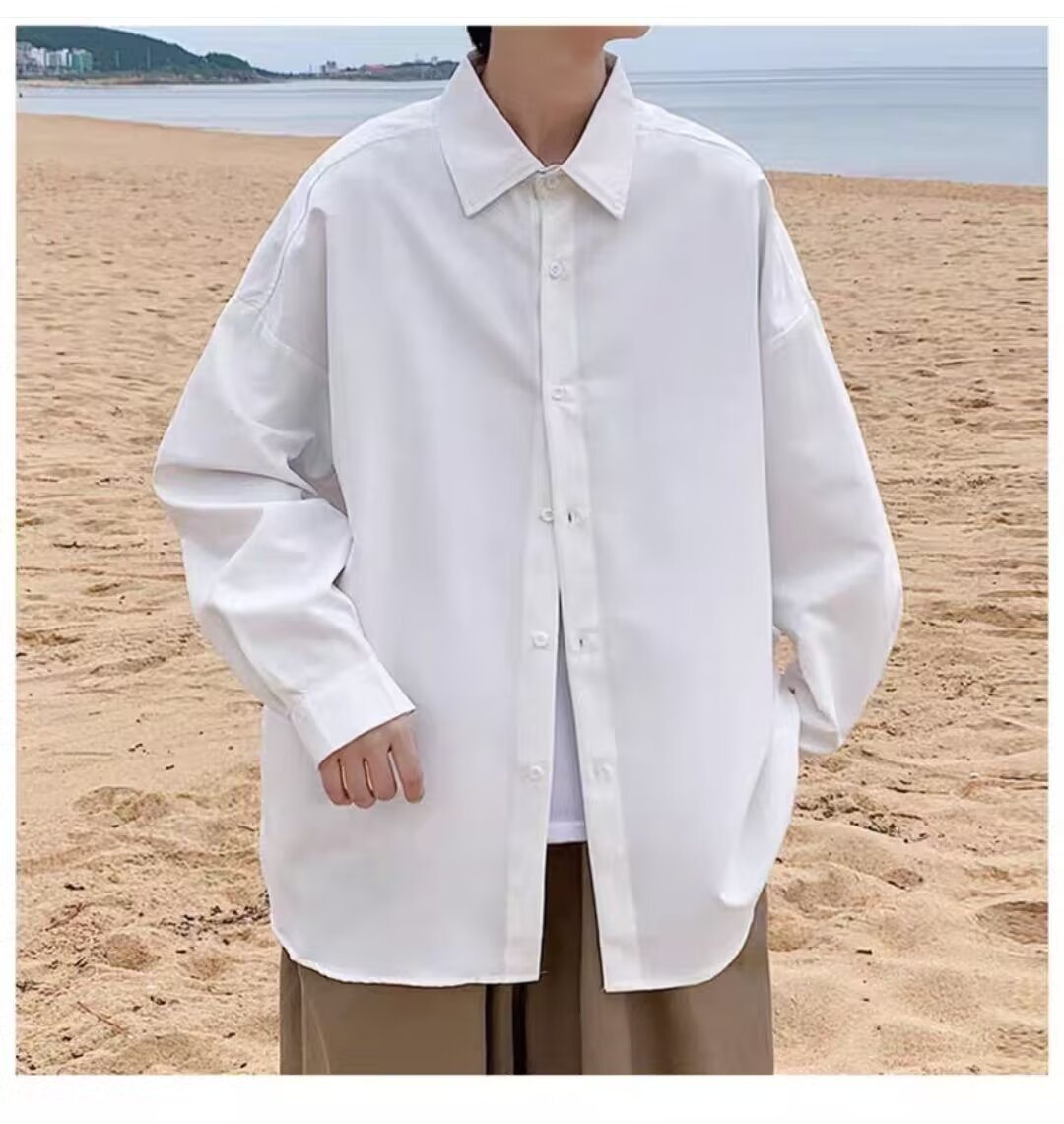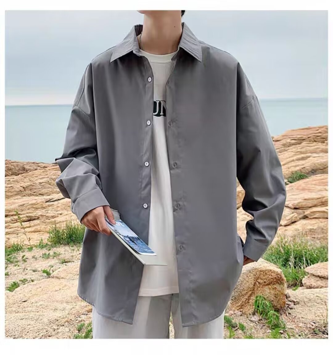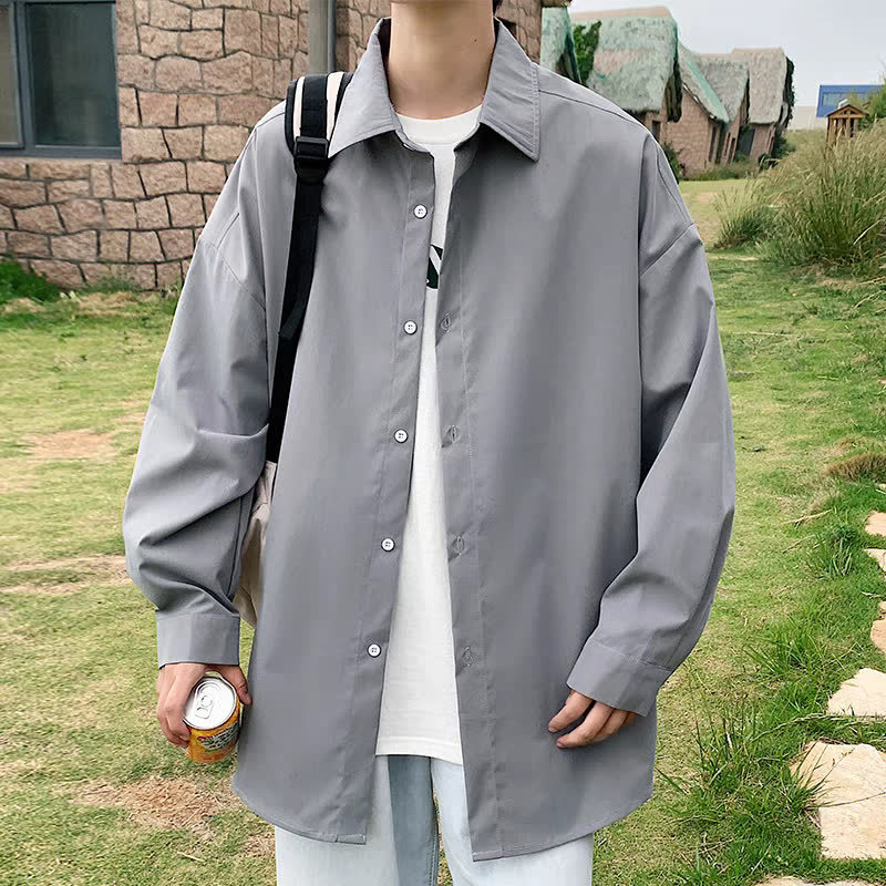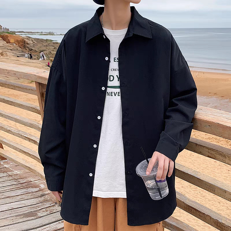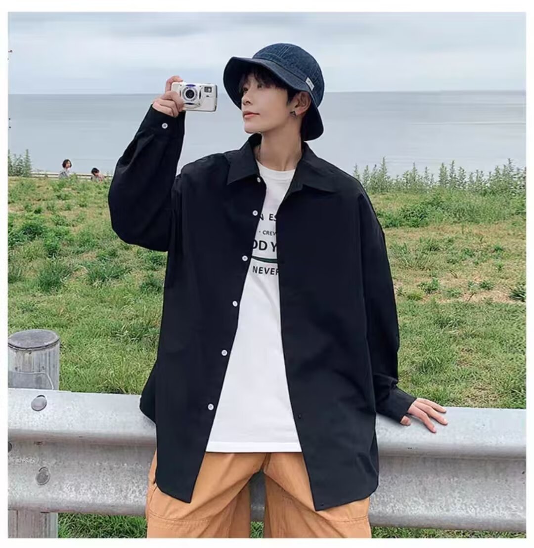 솔리드 컬러 긴팔 셔츠 남성 일본 유행 루즈 다용도 라펠 셔츠 커플 하이 스트리트 캐주얼 청소년 재킷스토어 가기