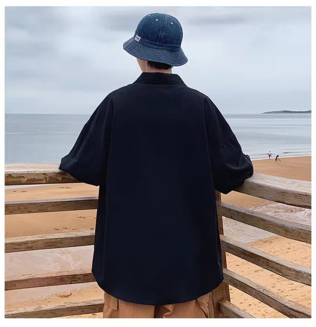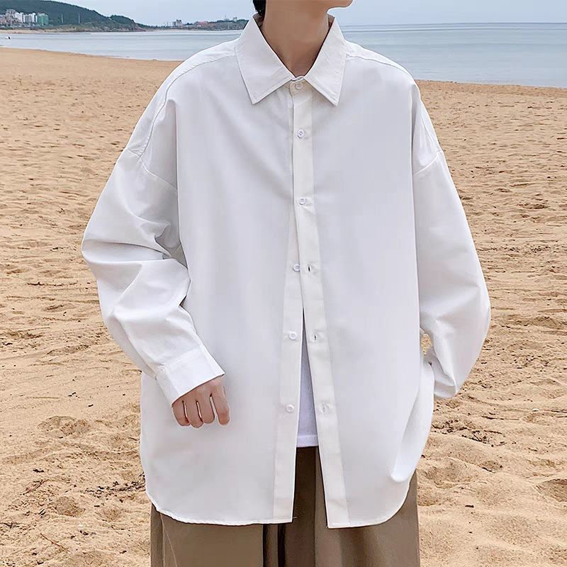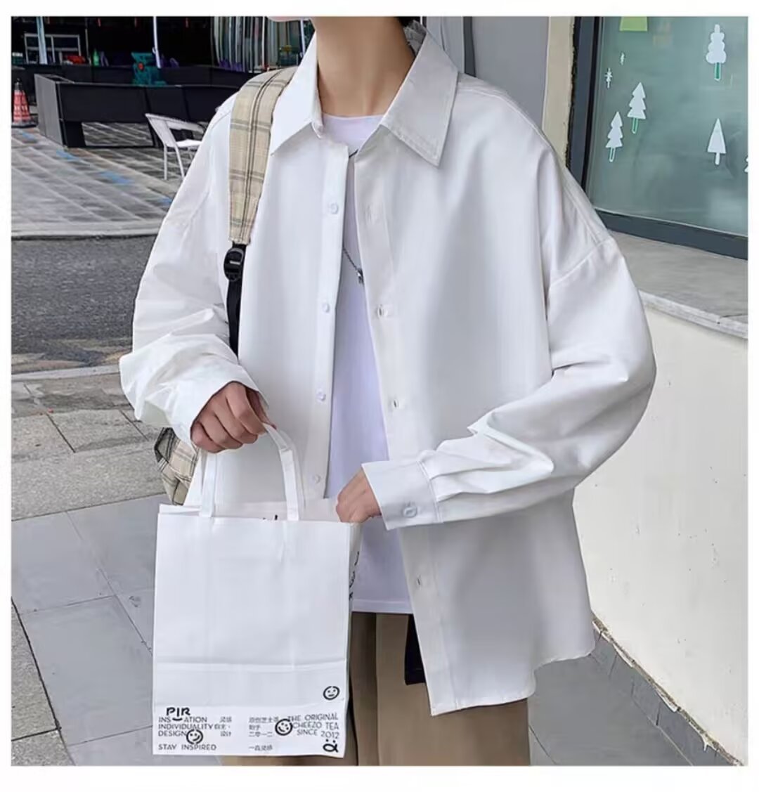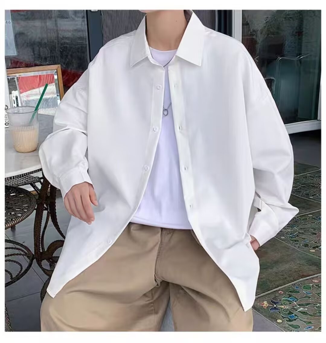 솔리드 컬러 긴팔 셔츠 남성 일본 유행 루즈 다용도 라펠 셔츠 커플 하이 스트리트 캐주얼 청소년 재킷스토어 가기