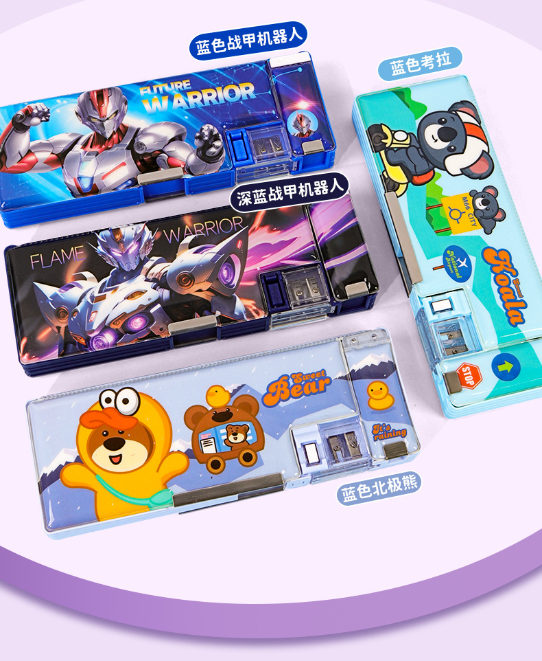 2025 다기능 편지지 상자 더블 레이어 간단한 소년과 소녀 초등 학생 만화 연필 상자 플라스틱 펜 상자 도매