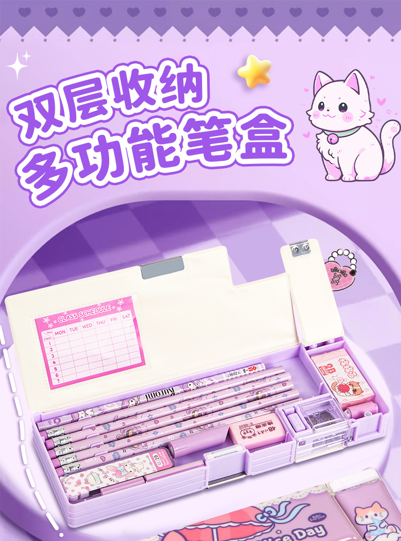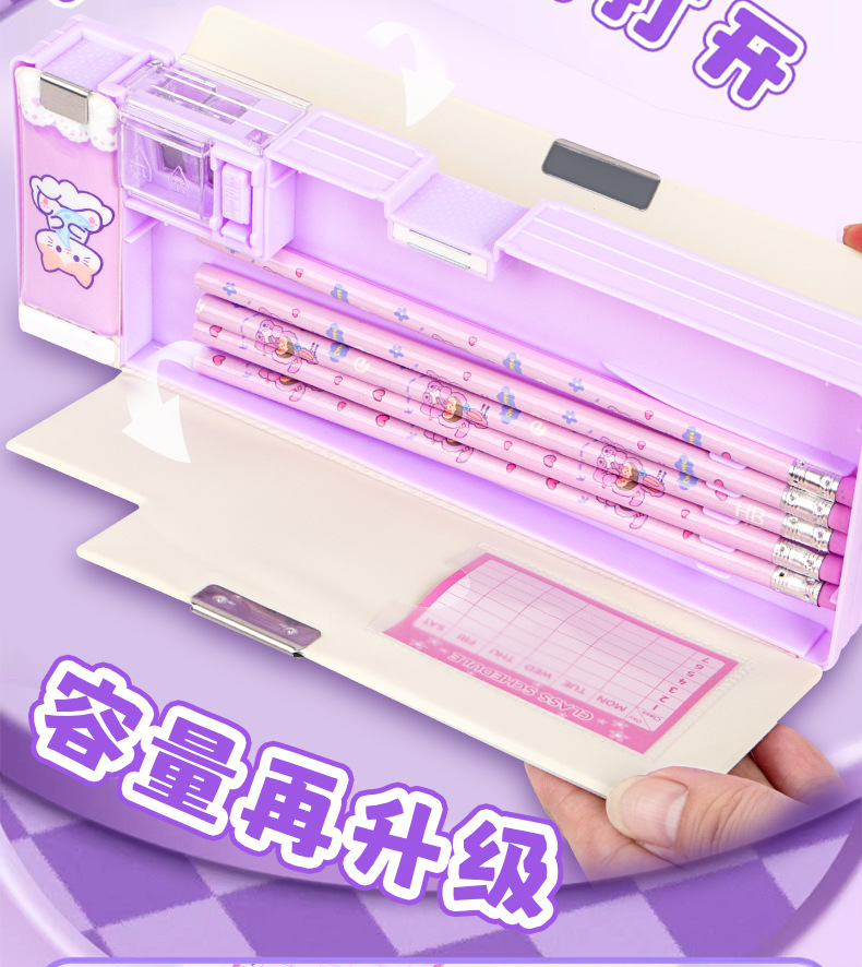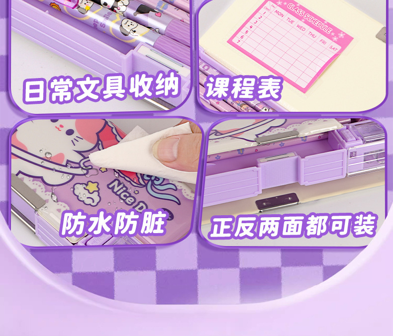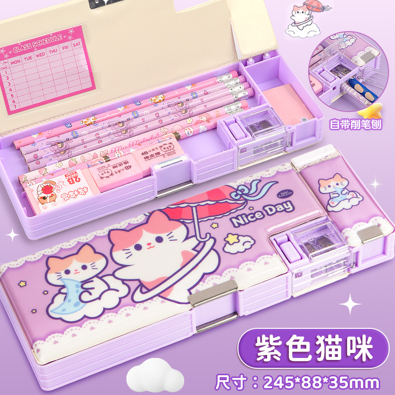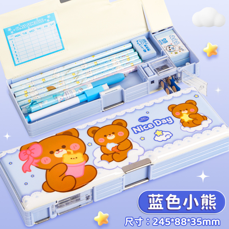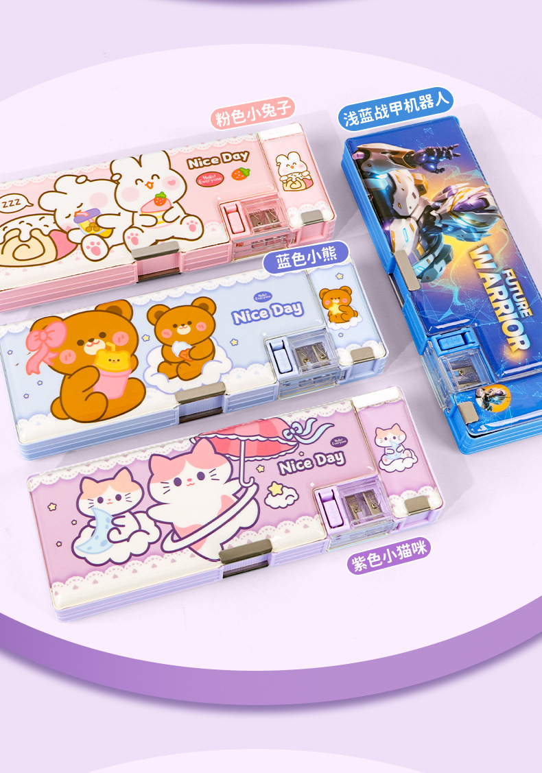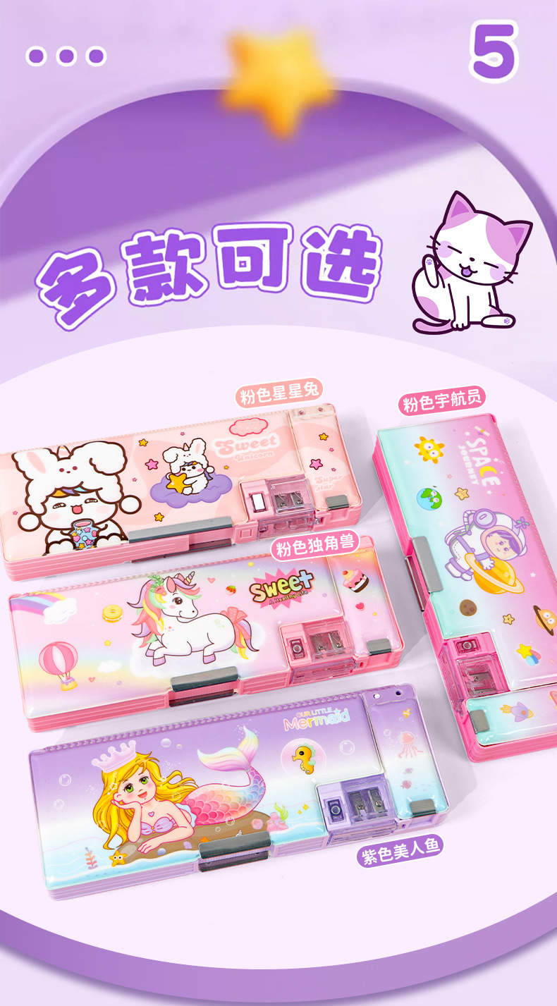 2025 다기능 편지지 상자 더블 레이어 간단한 소년과 소녀 초등 학생 만화 연필 상자 플라스틱 펜 상자 도매스토어 가기