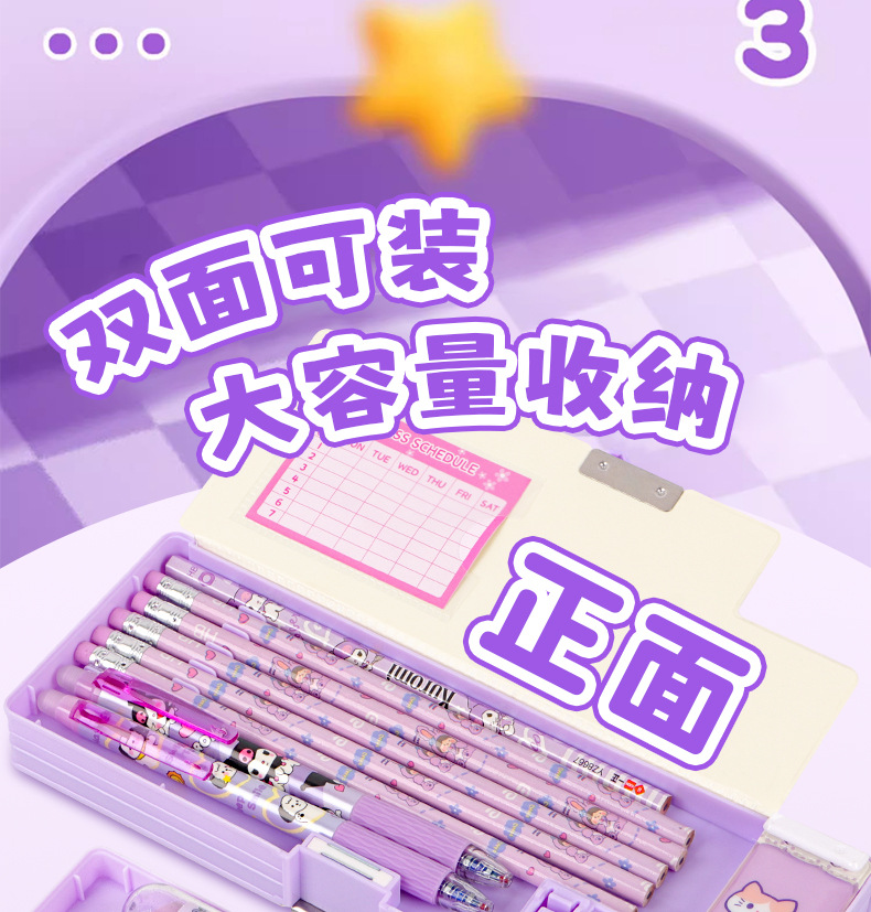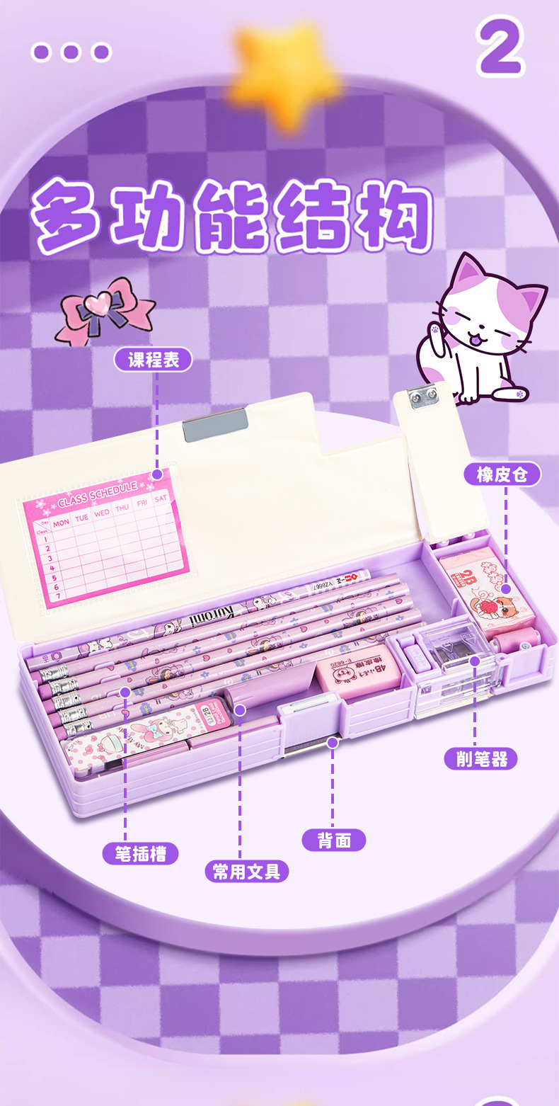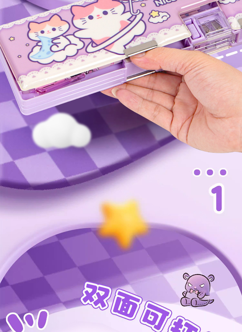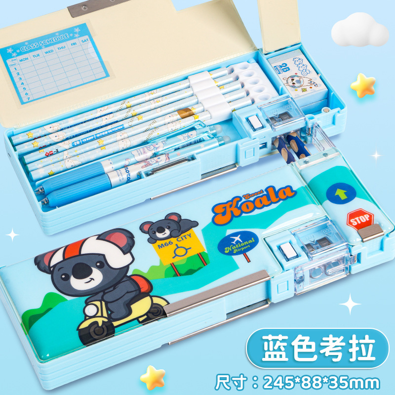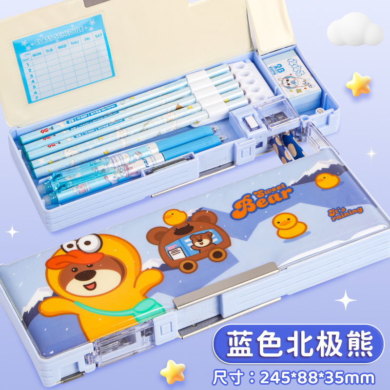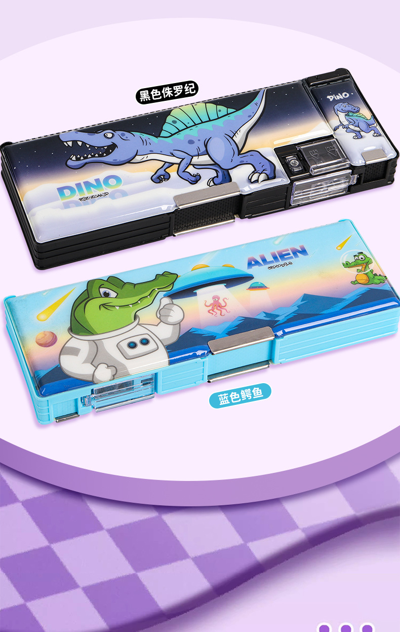 2025 다기능 편지지 상자 더블 레이어 간단한 소년과 소녀 초등 학생 만화 연필 상자 플라스틱 펜 상자 도매스토어 가기