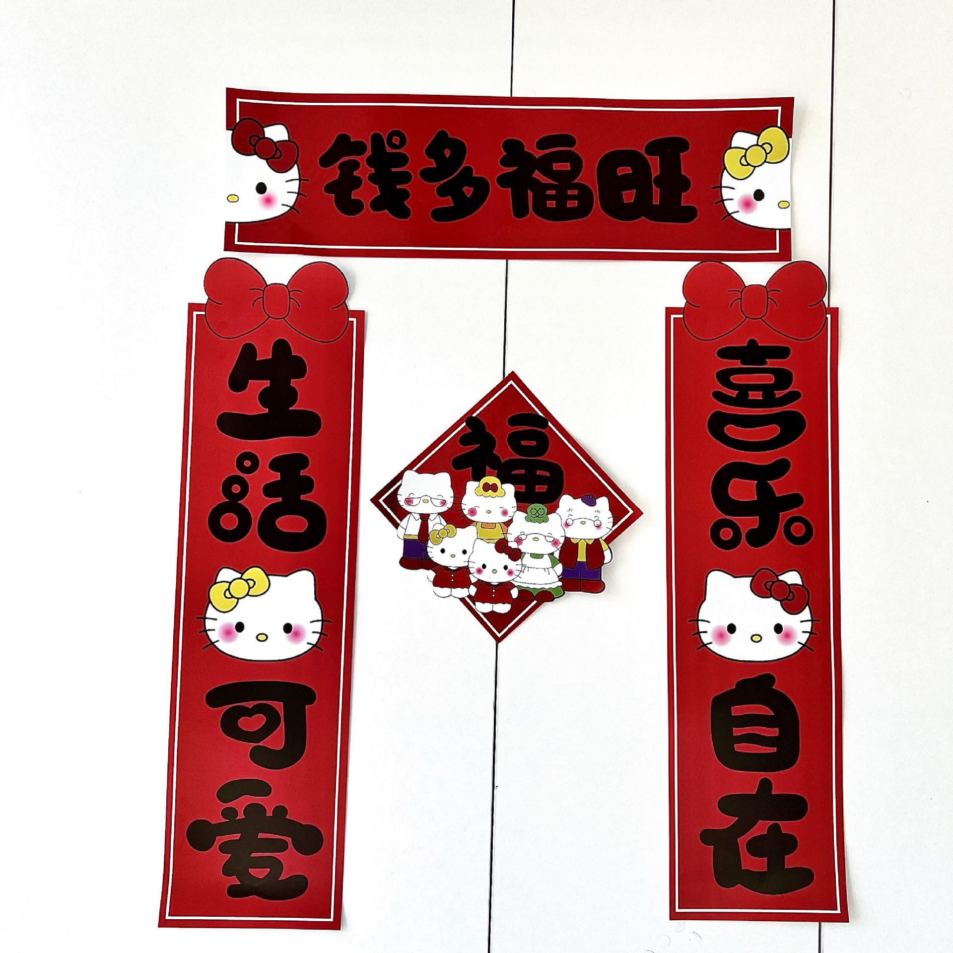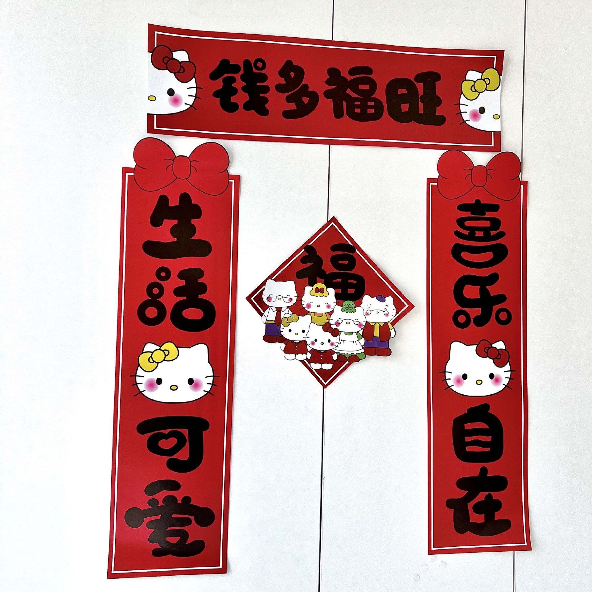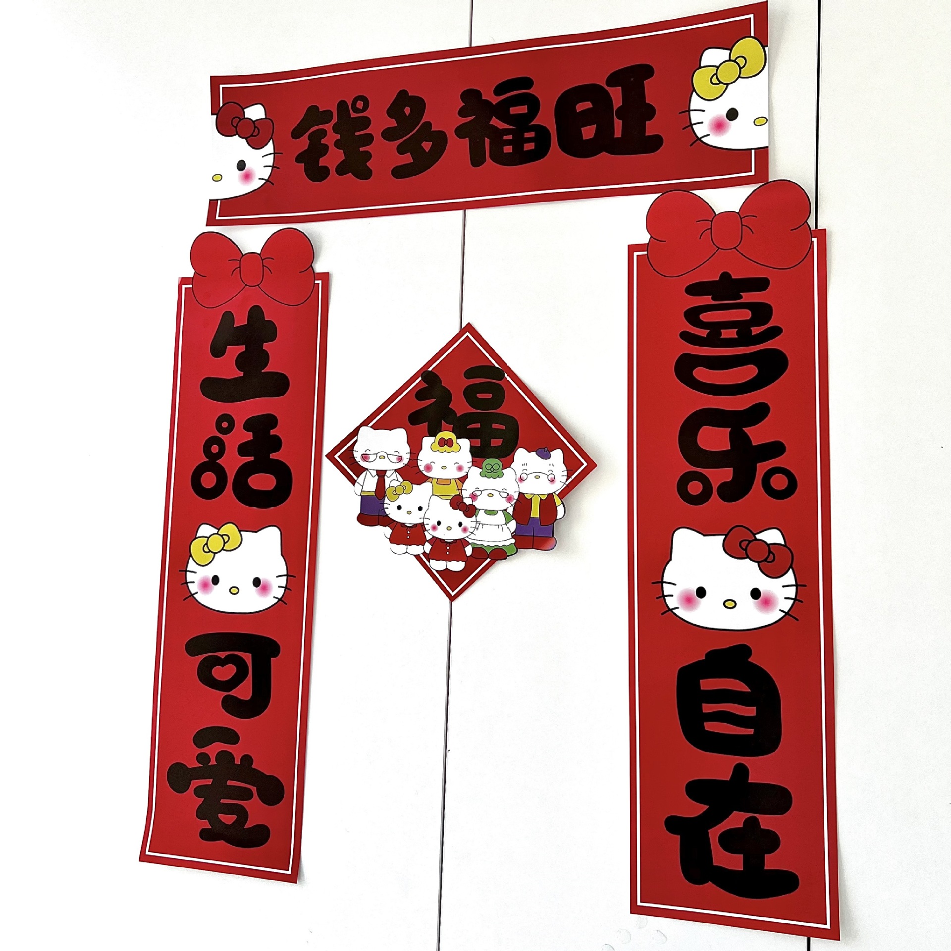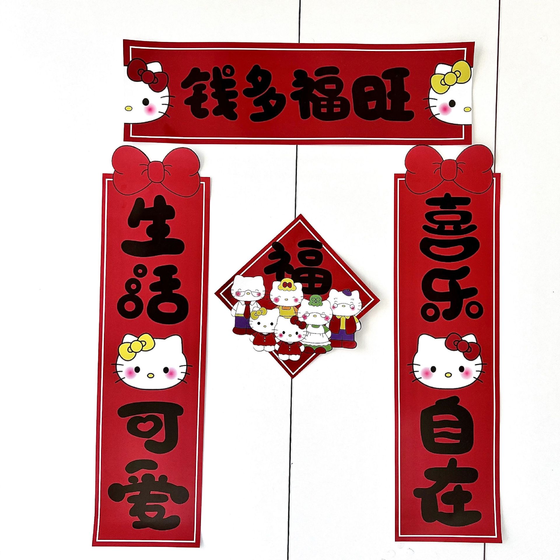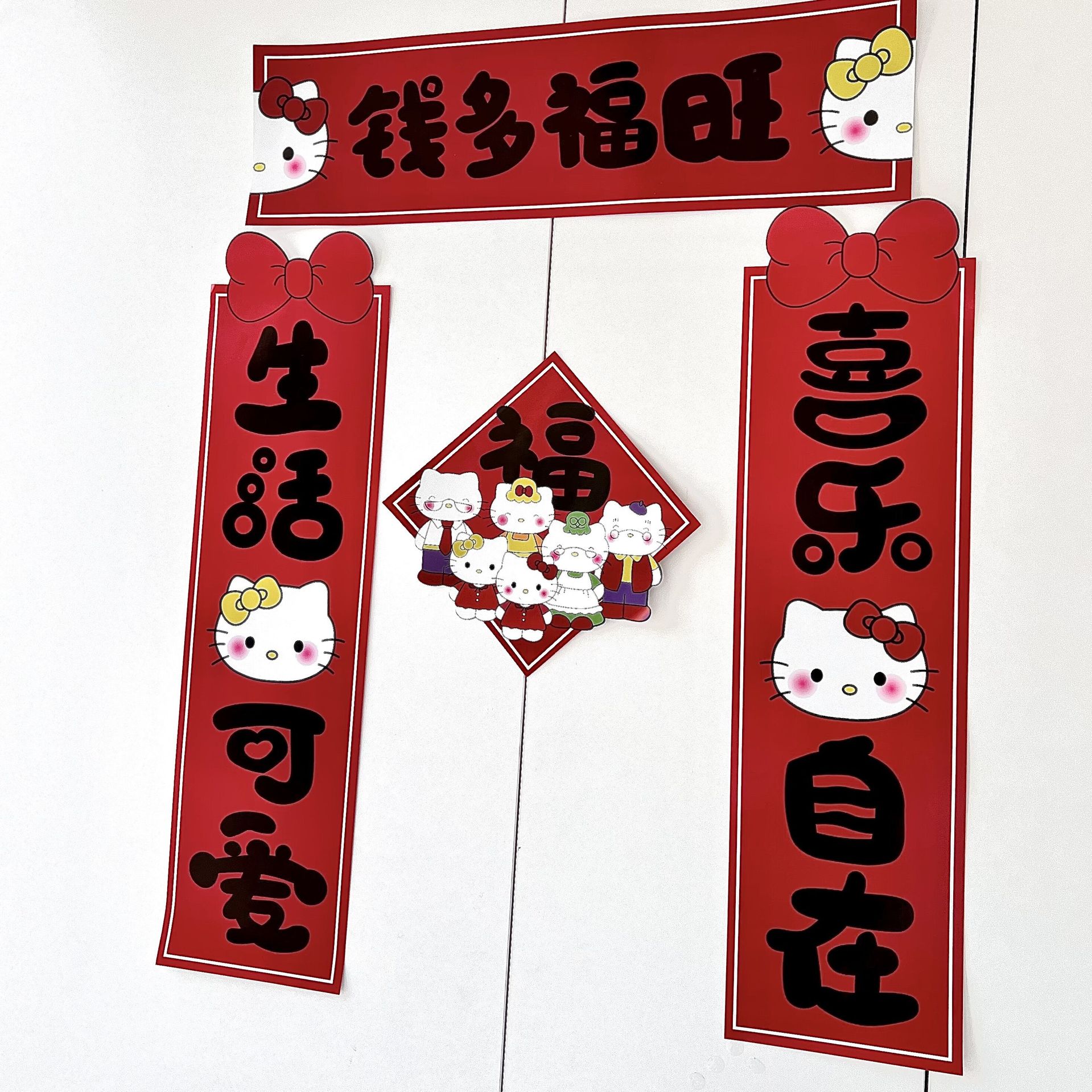 2025 Qian 듀오 푸 왕 헬로 키티 봄 축제 커플 봄 축제 신년 장식 kt 고양이 봄 축제 문 공동 기숙사스토어 가기