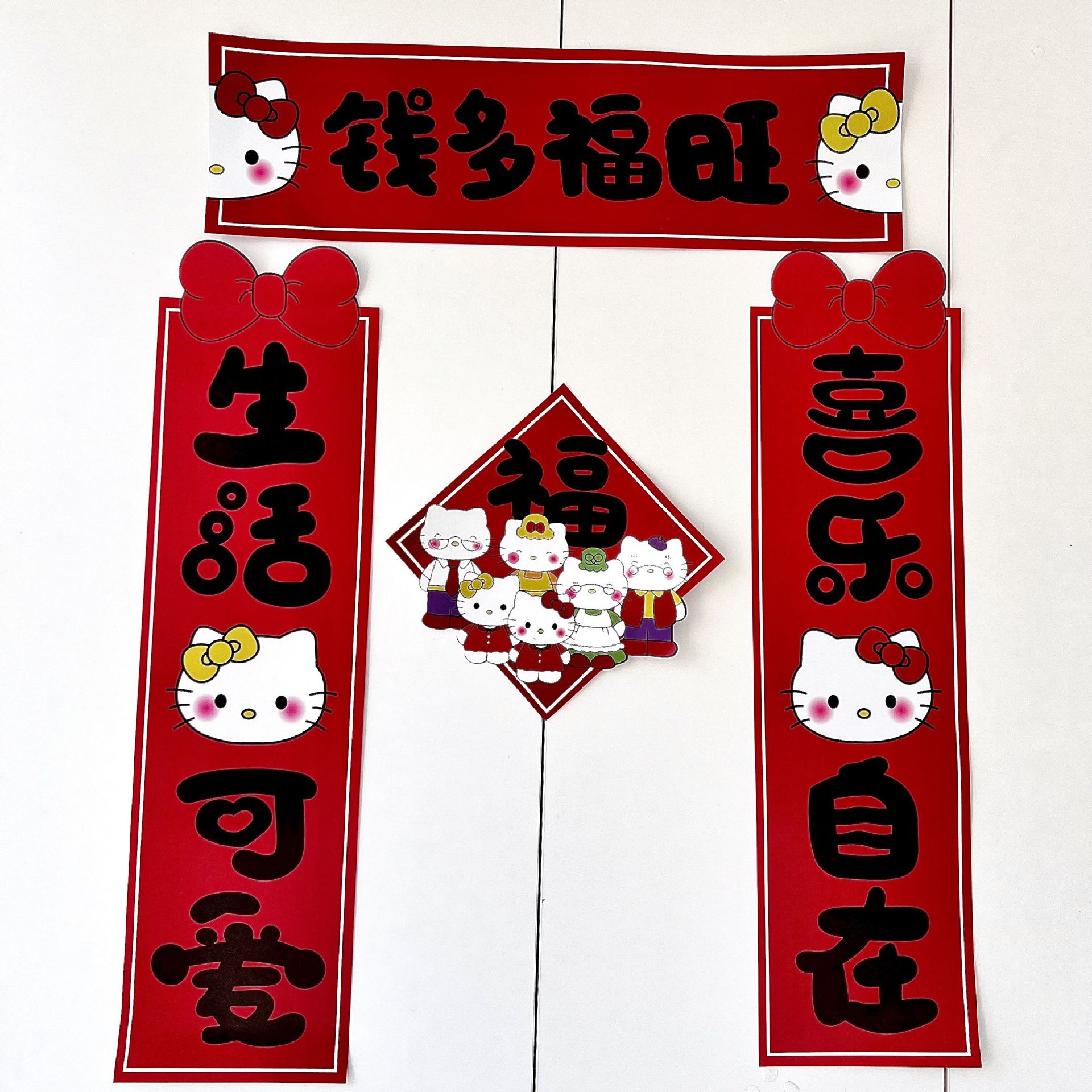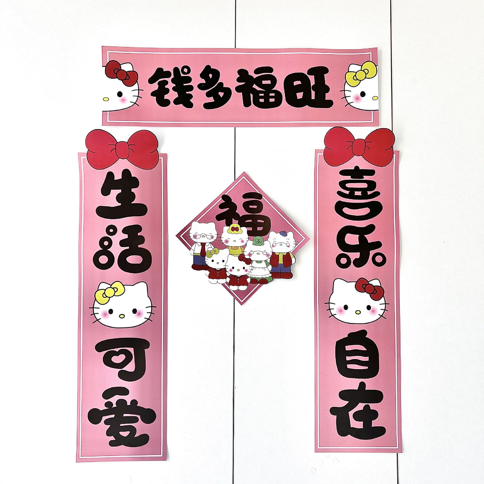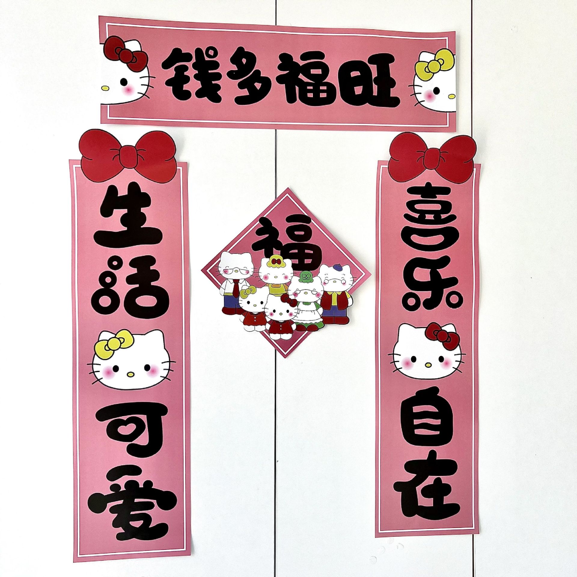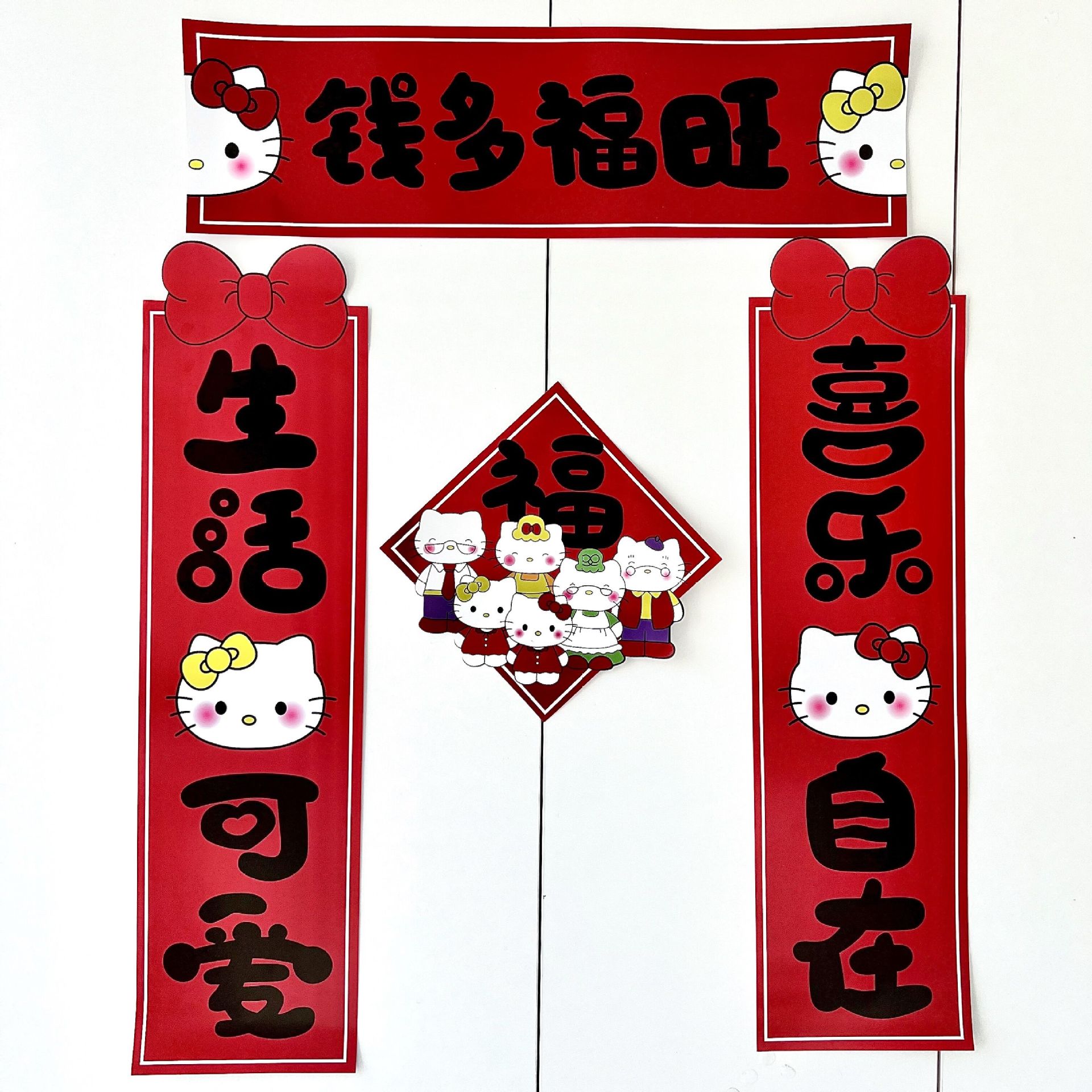 2025 Qian 듀오 푸 왕 헬로 키티 봄 축제 커플 봄 축제 신년 장식 kt 고양이 봄 축제 문 공동 기숙사스토어 가기