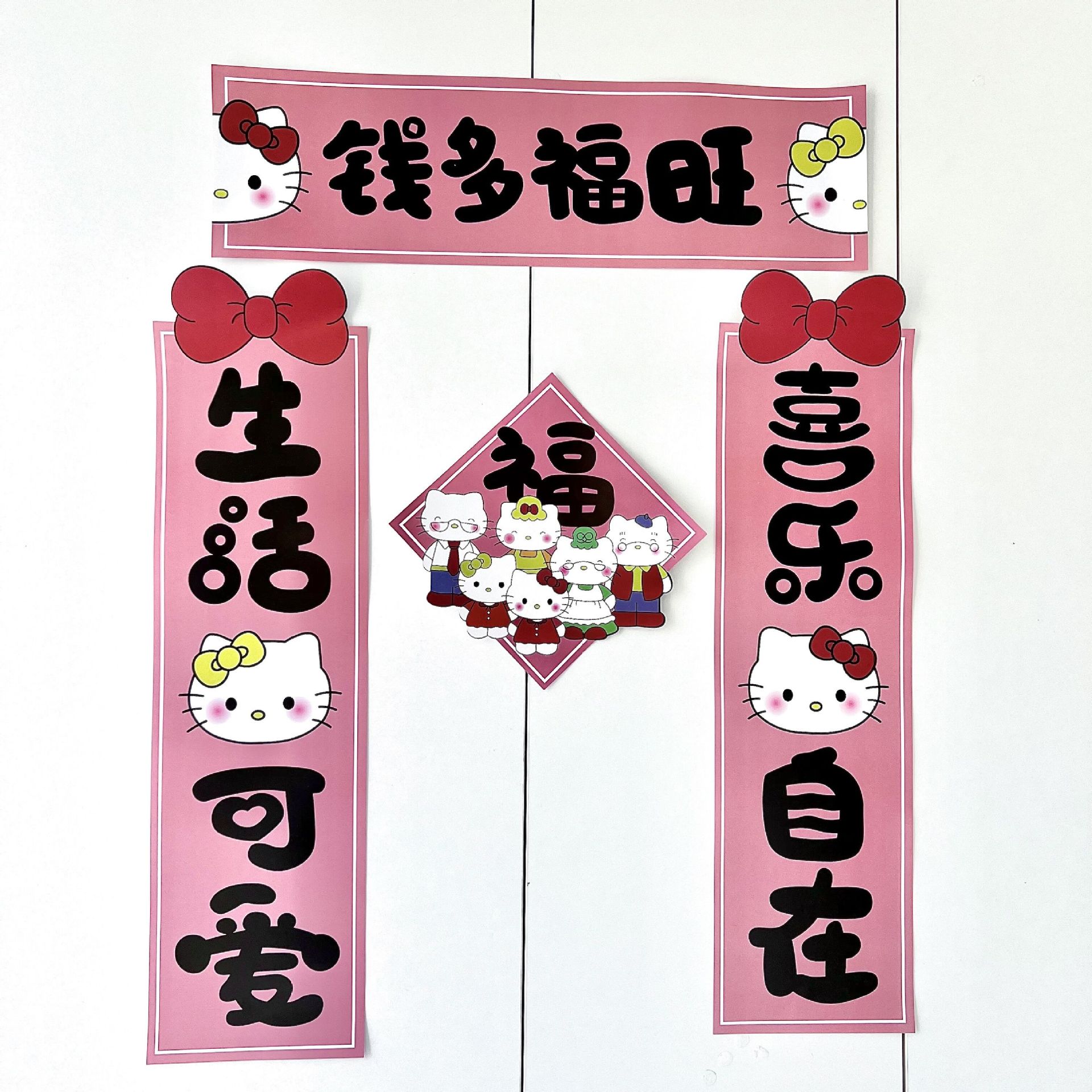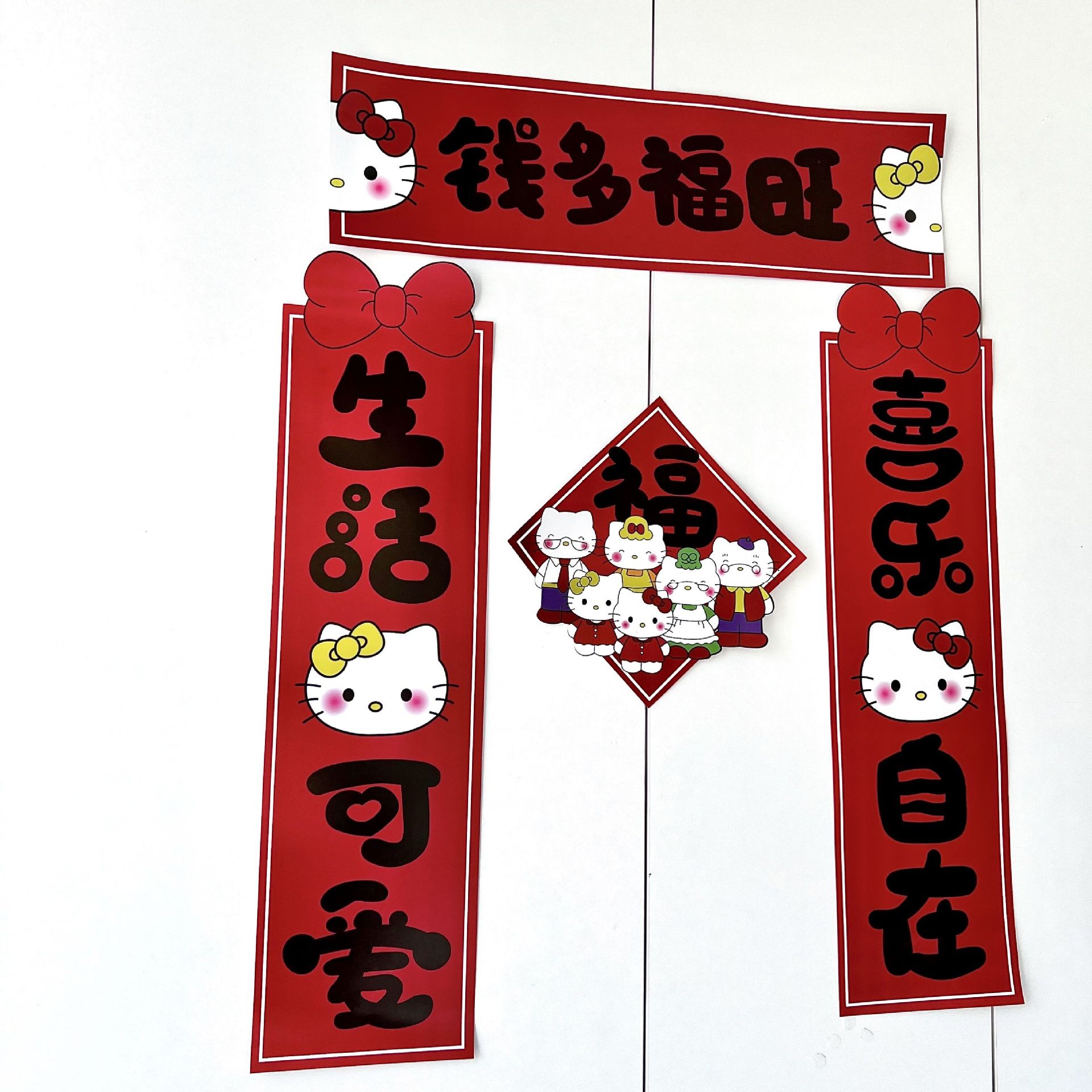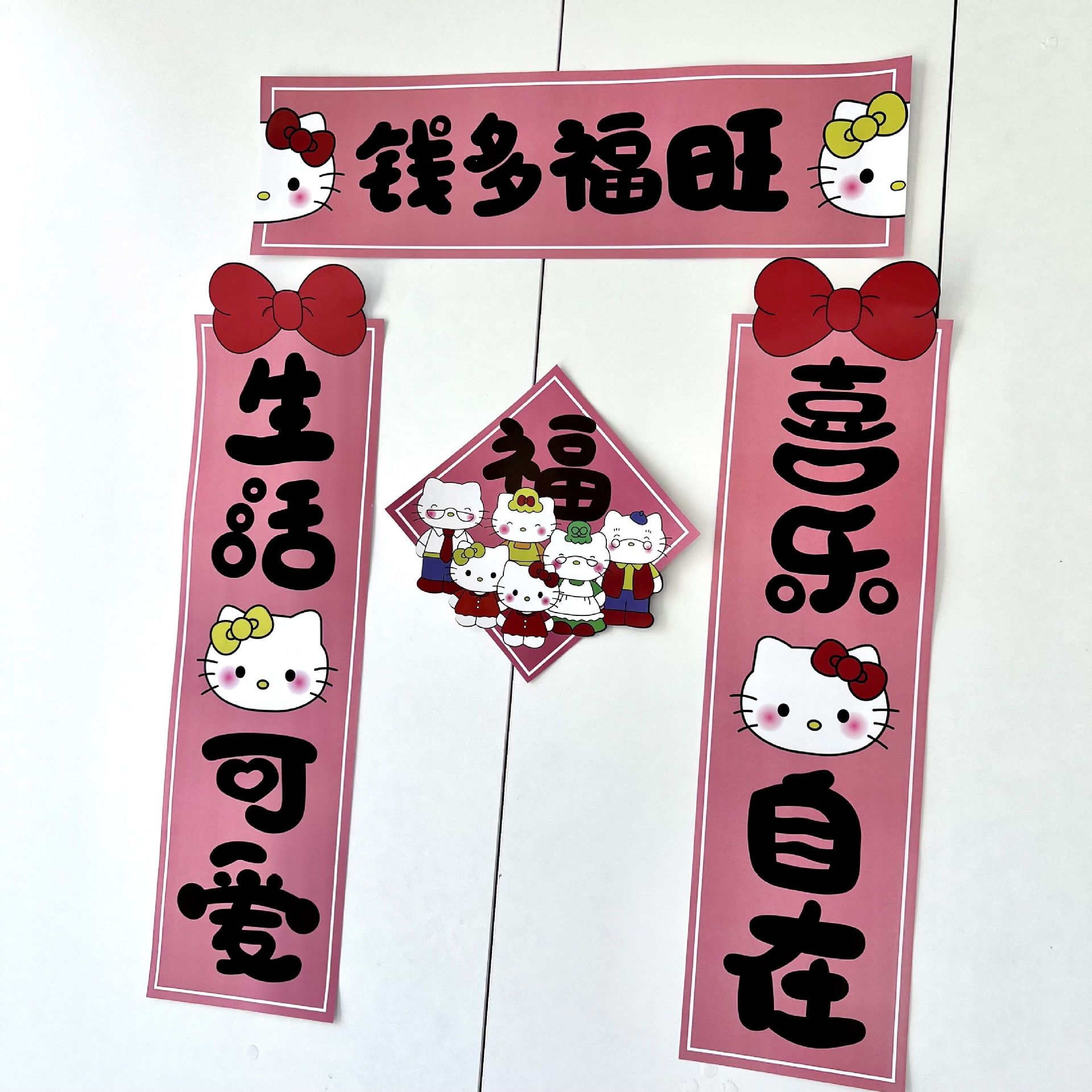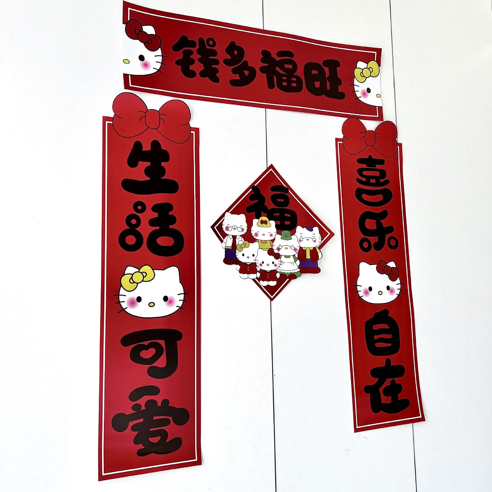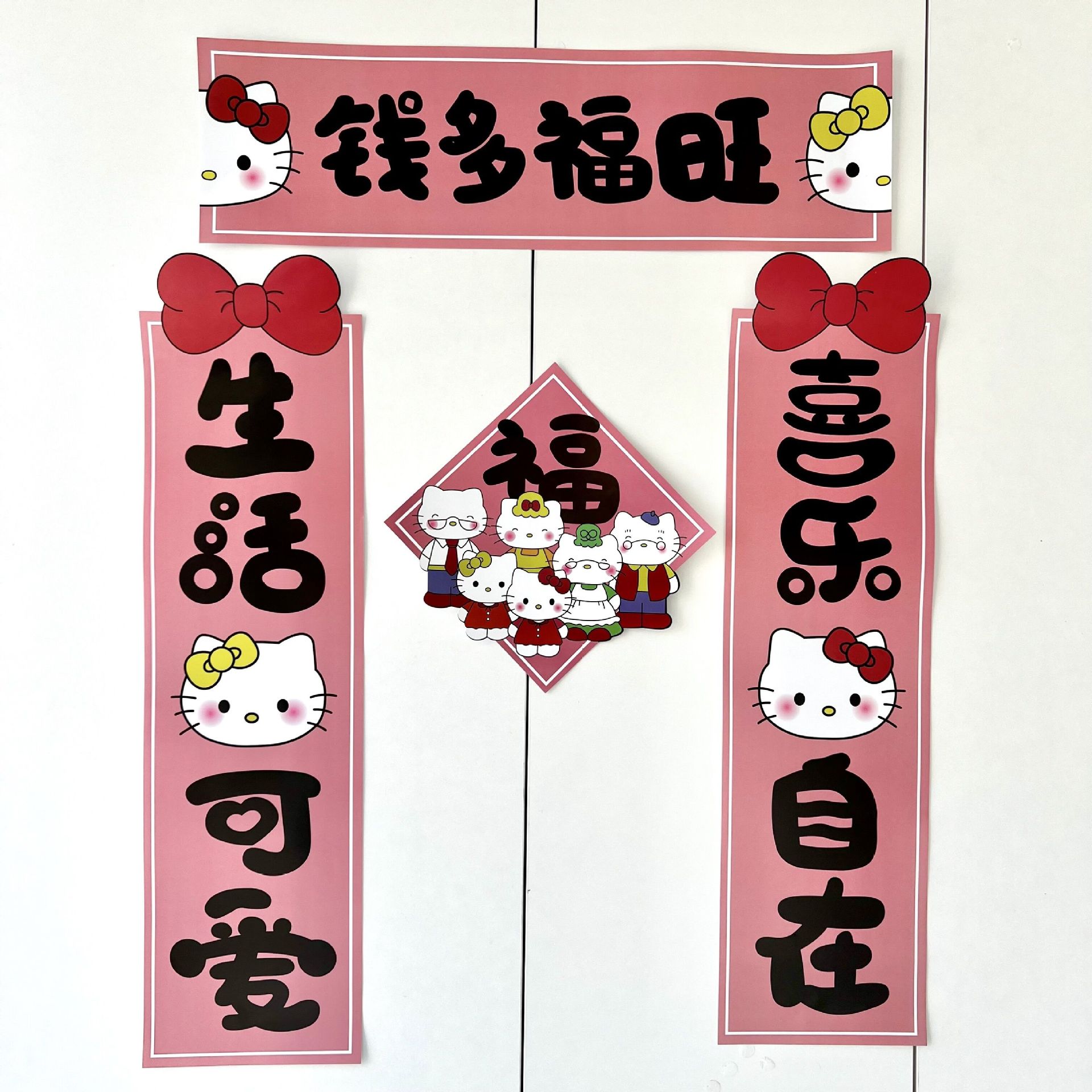 2025 Qian 듀오 푸 왕 헬로 키티 봄 축제 커플 봄 축제 신년 장식 kt 고양이 봄 축제 문 공동 기숙사스토어 가기