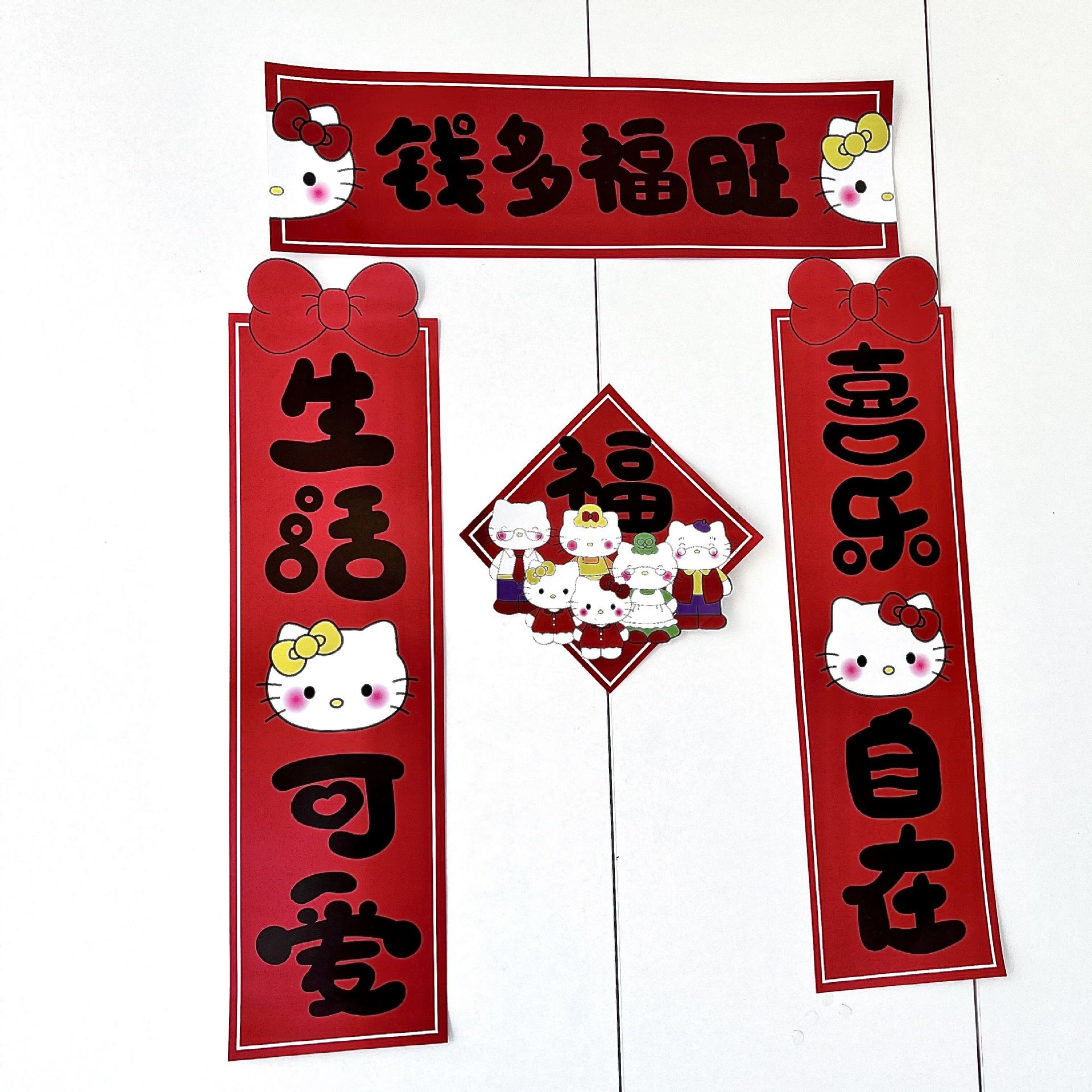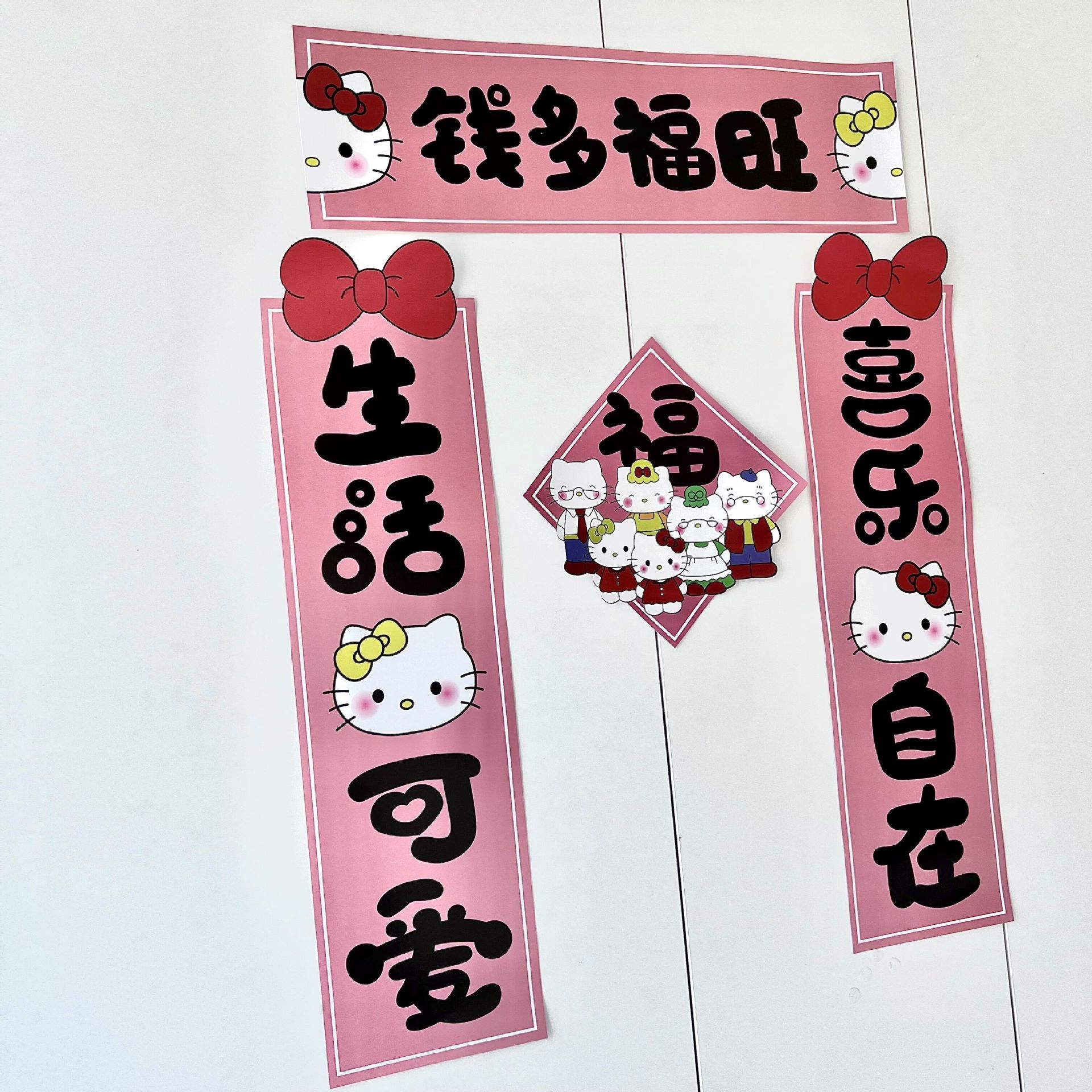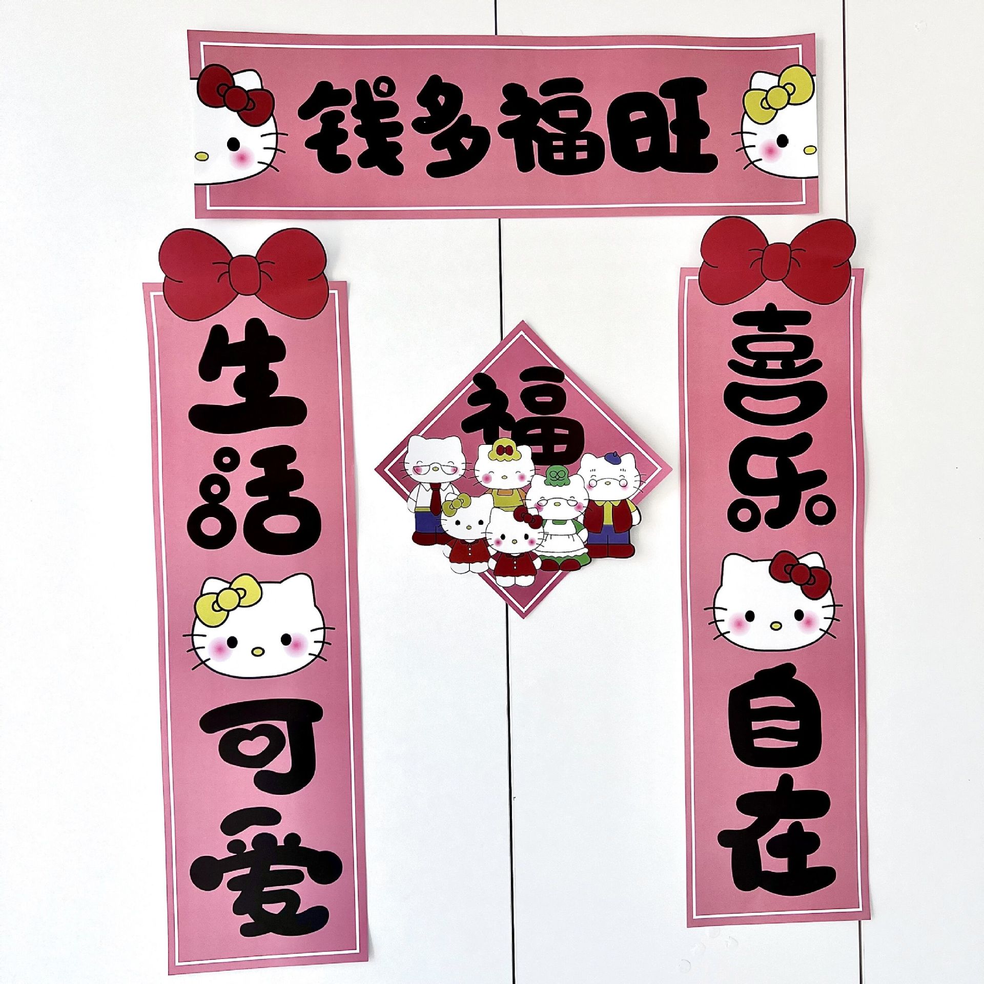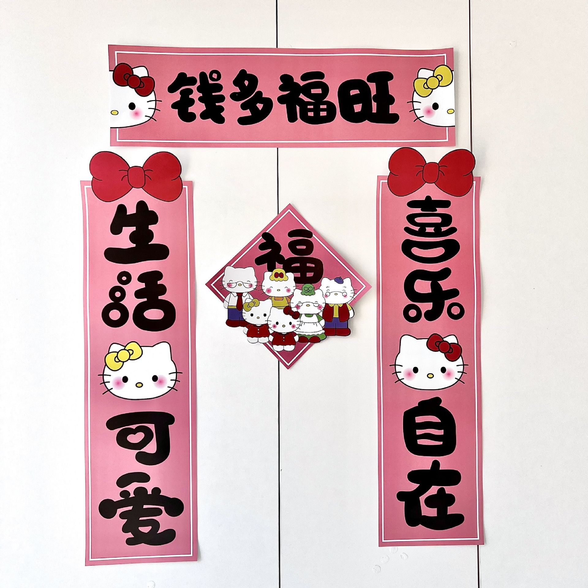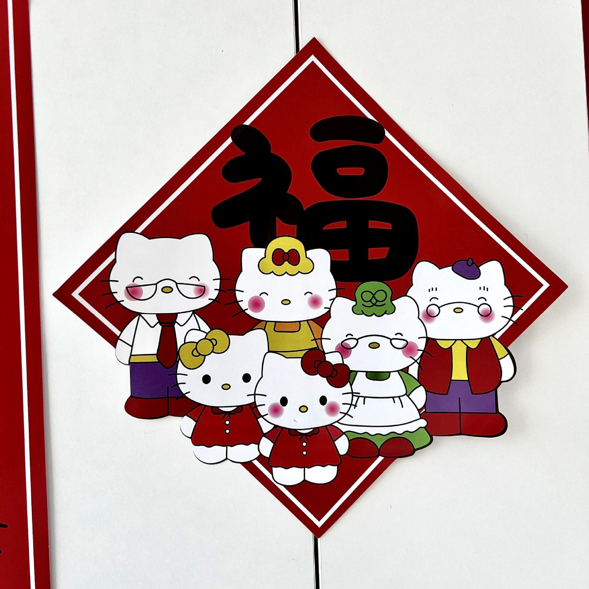 2025 Qian 듀오 푸 왕 헬로 키티 봄 축제 커플 봄 축제 신년 장식 kt 고양이 봄 축제 문 공동 기숙사스토어 가기