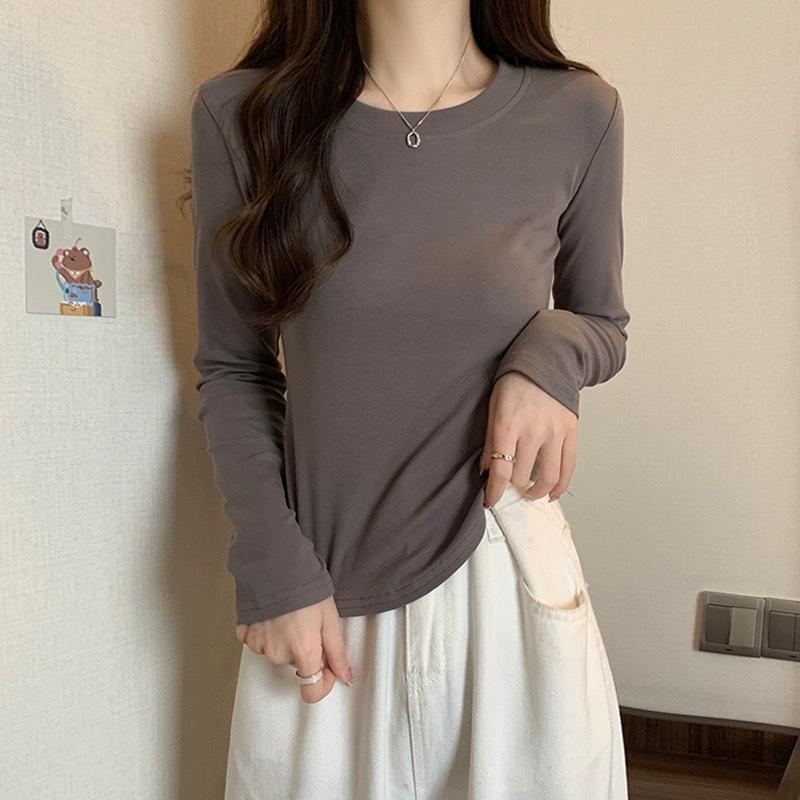 솔리드 컬러 여성의 가을 및 겨울베이스 셔츠 Ins 트렌디 올매치 캐주얼 슬림 핏 슬리밍 긴 소매 불규칙한 곡선 형 헴 트렌디스토어 가기