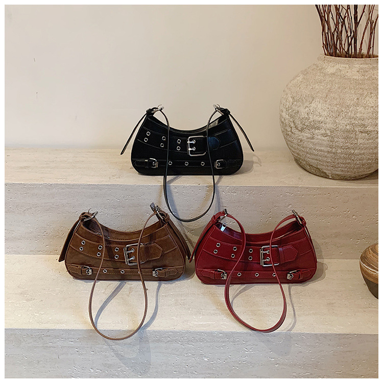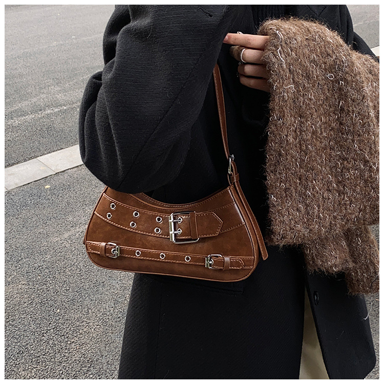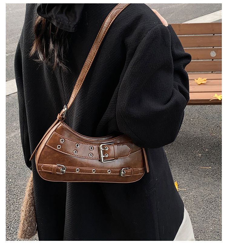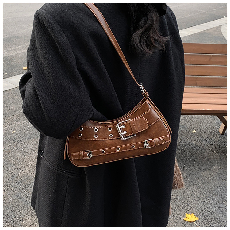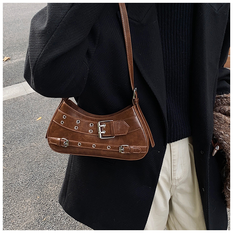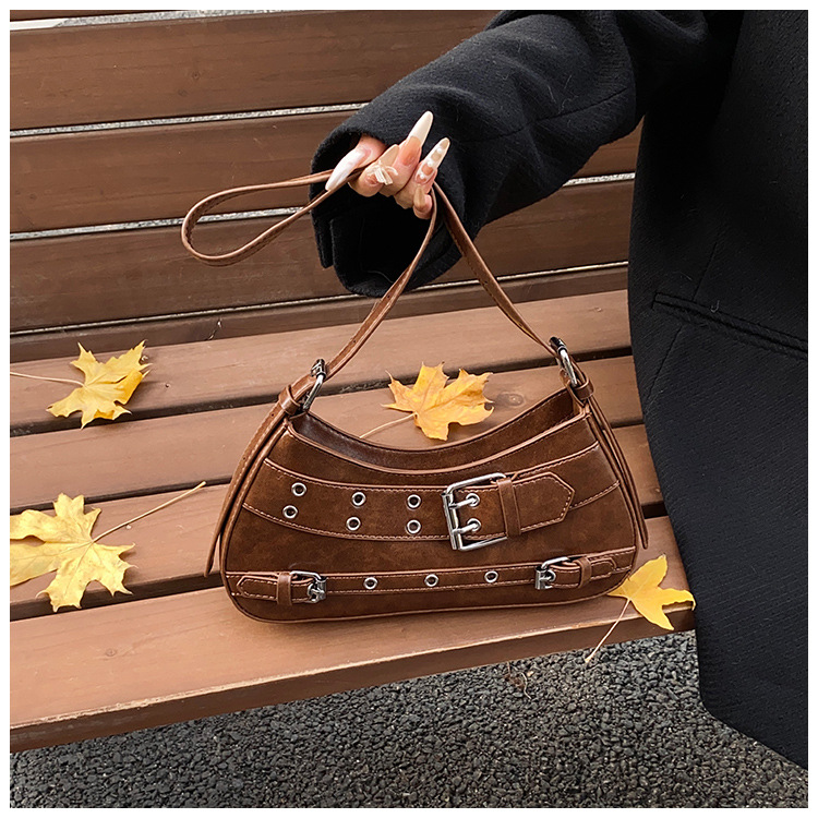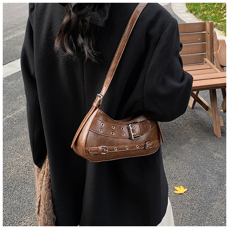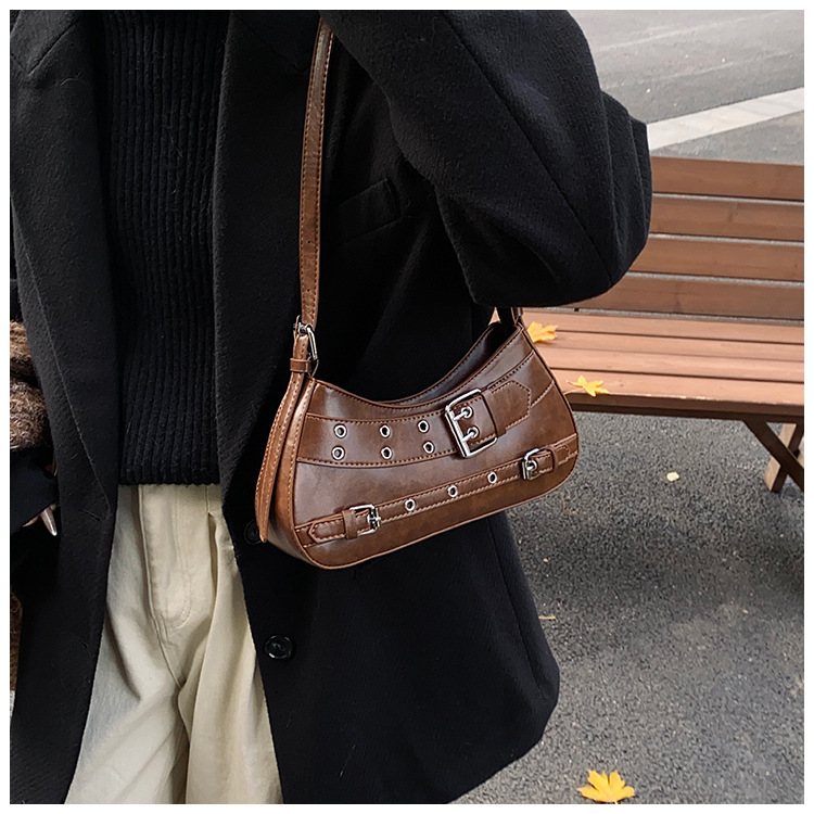 트렌디 한 쿨 스파이스 소녀 작은 가방 2024 겨울 새로운 여성 가방 맞춤형 오토바이 스타일 숄더 백 레트로 올 매치 크로스 바디 백스토어 가기