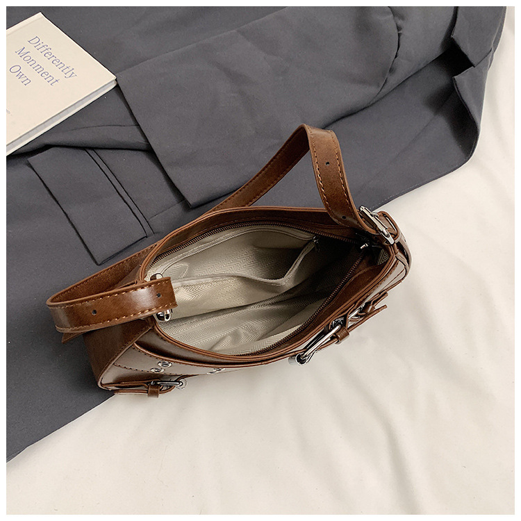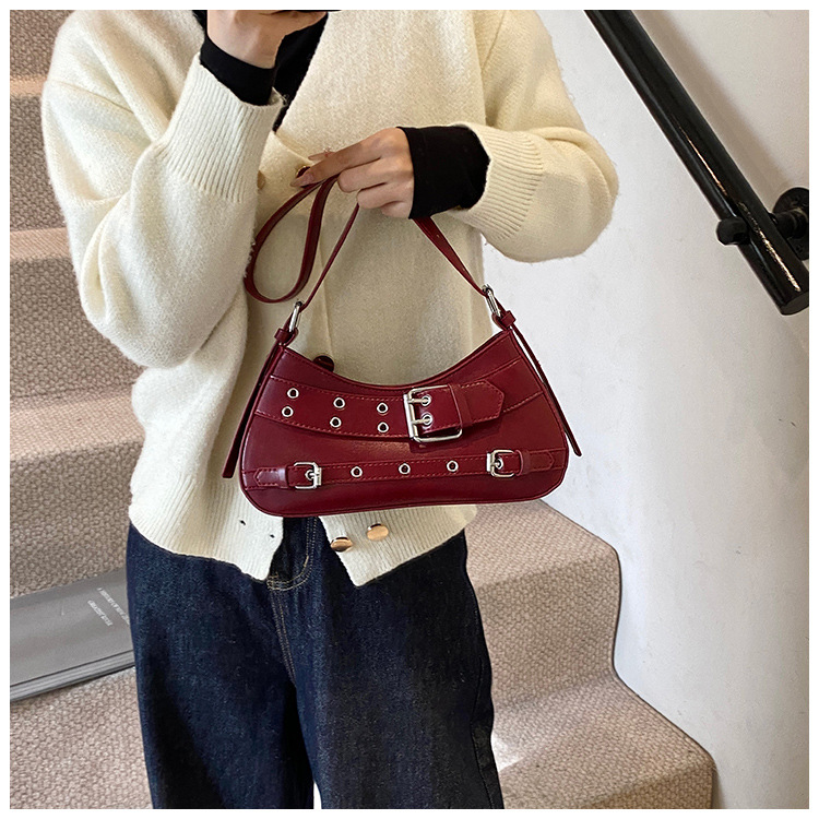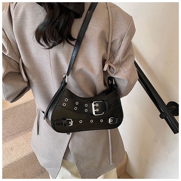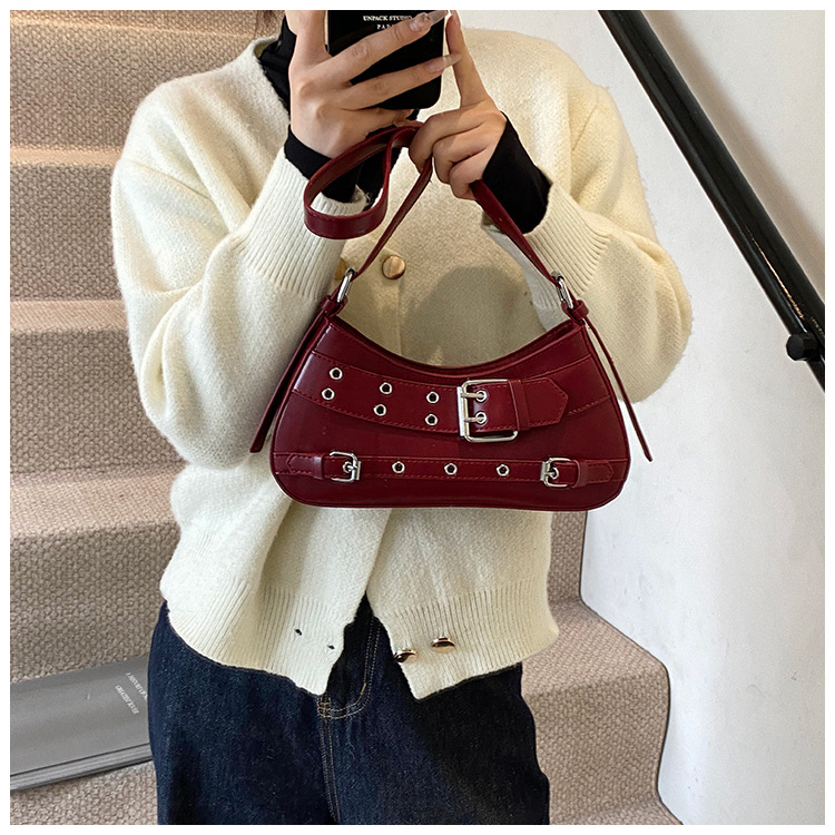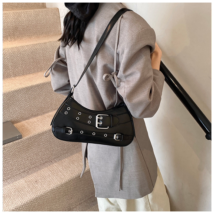 트렌디 한 쿨 스파이스 소녀 작은 가방 2024 겨울 새로운 여성 가방 맞춤형 오토바이 스타일 숄더 백 레트로 올 매치 크로스 바디 백