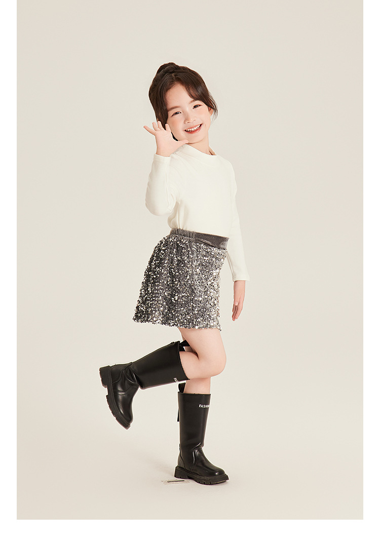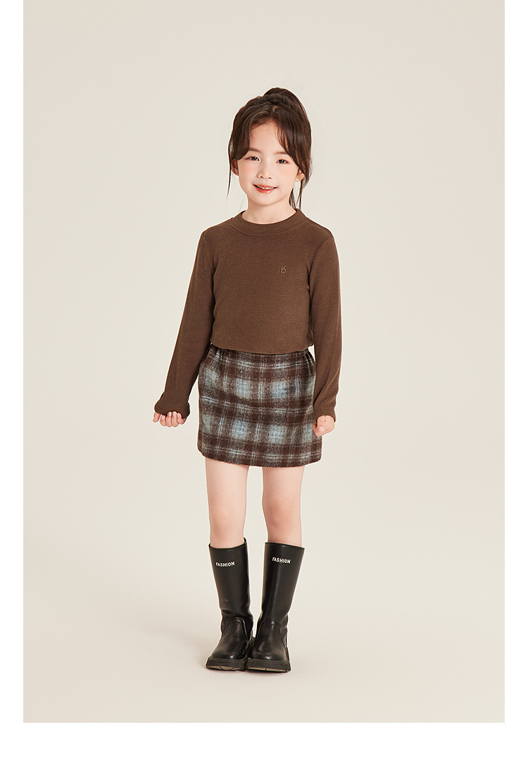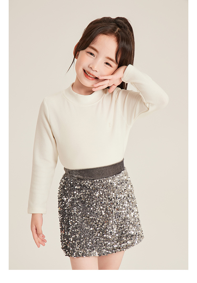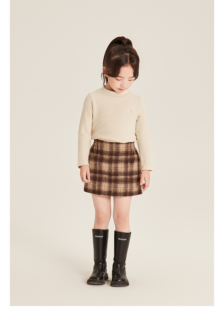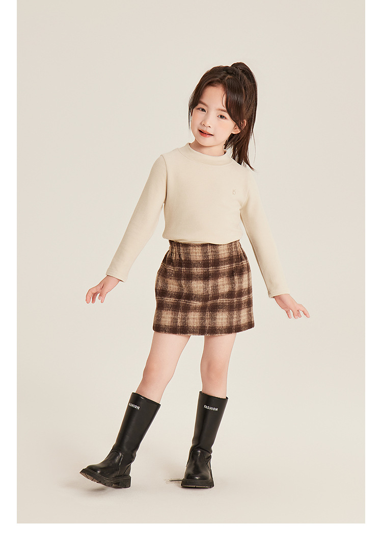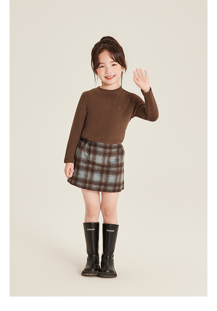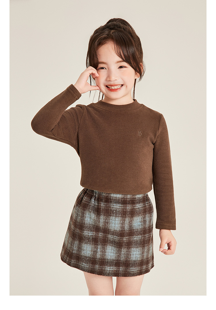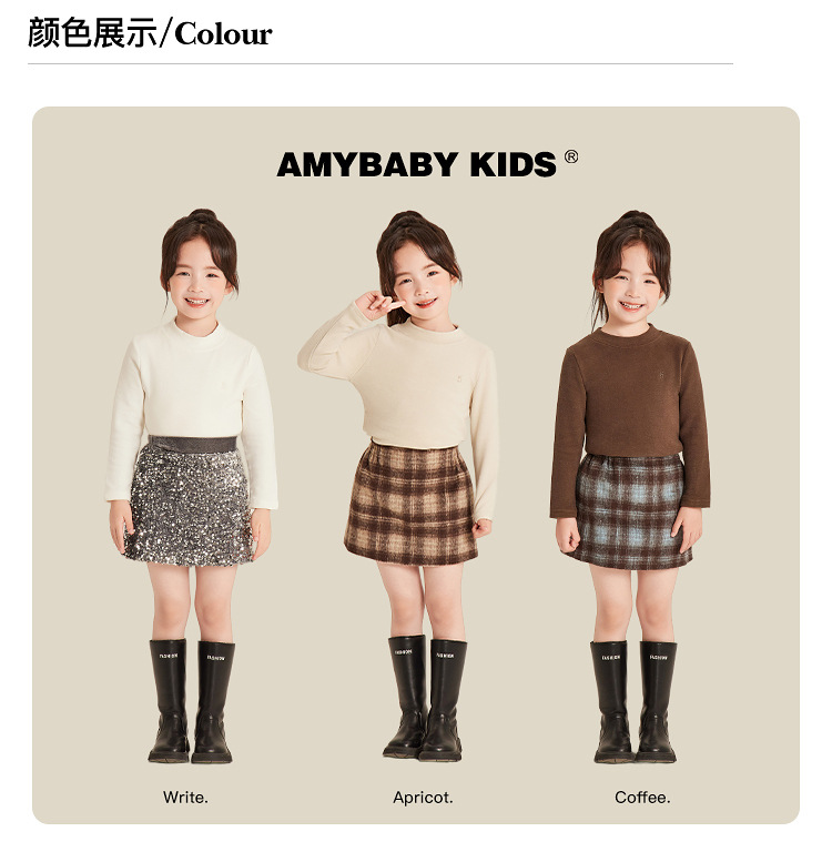 Amybaby Girls 'Top Winter 2024 새로운 가을과 겨울 단색 따뜻한 반 높은 목 긴 소매베이스 셔츠스토어 가기