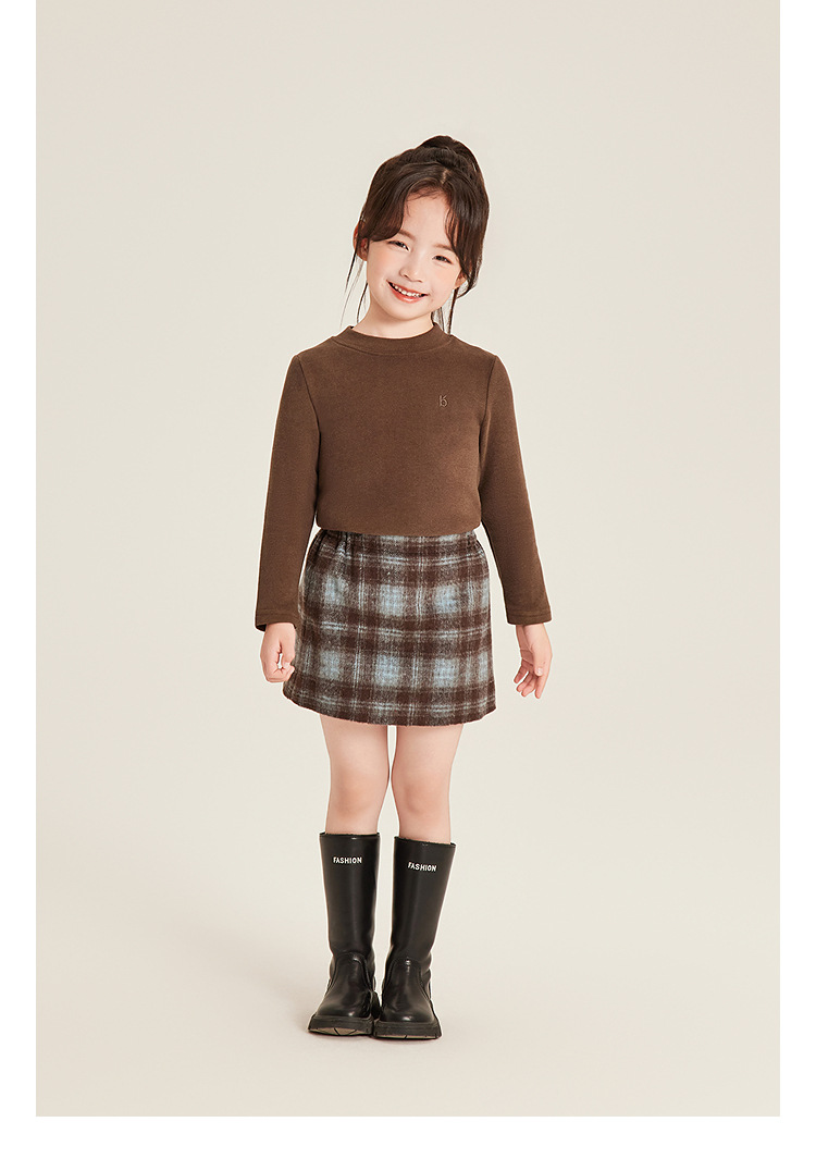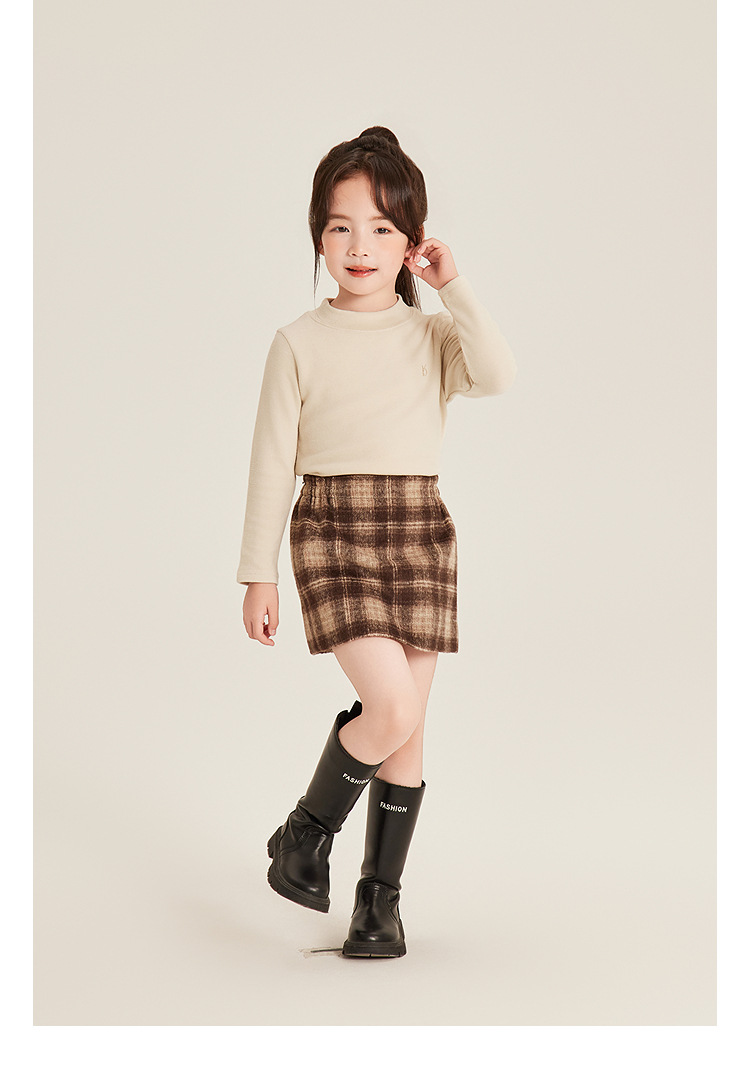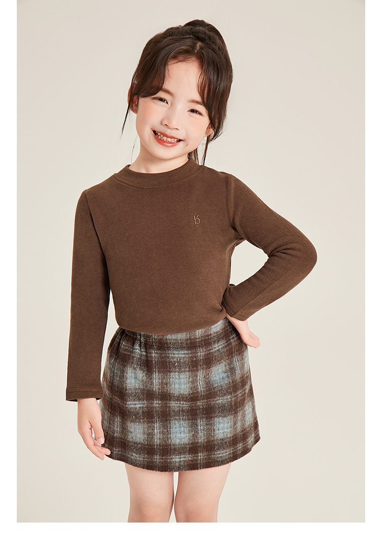 Amybaby Girls 'Top Winter 2024 새로운 가을과 겨울 단색 따뜻한 반 높은 목 긴 소매베이스 셔츠