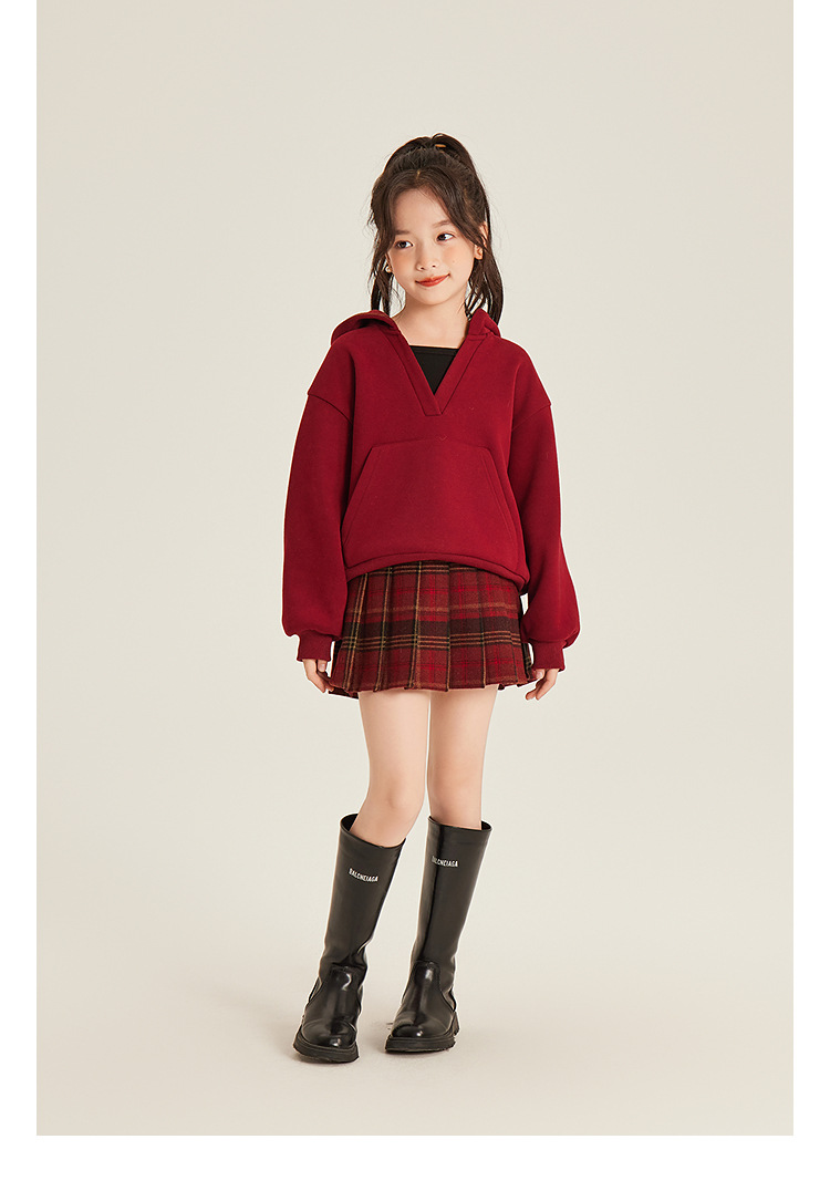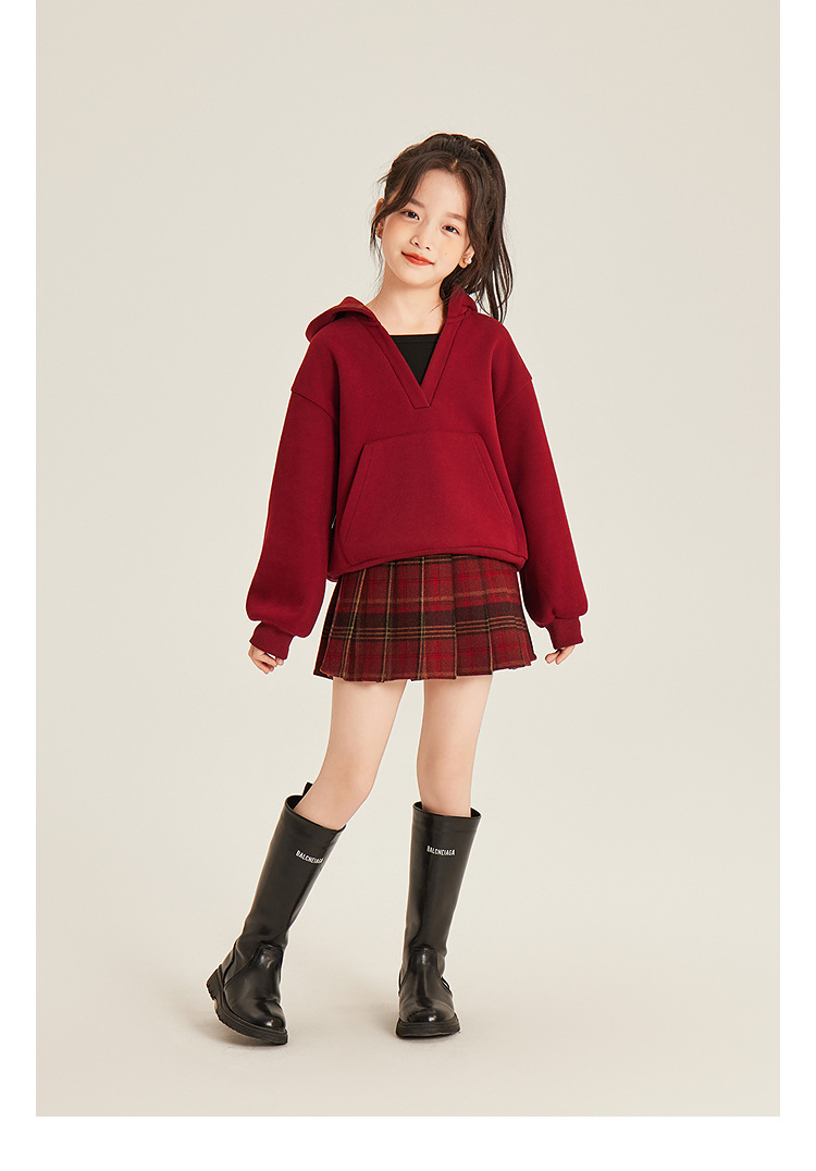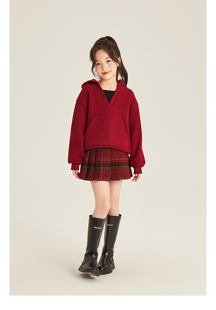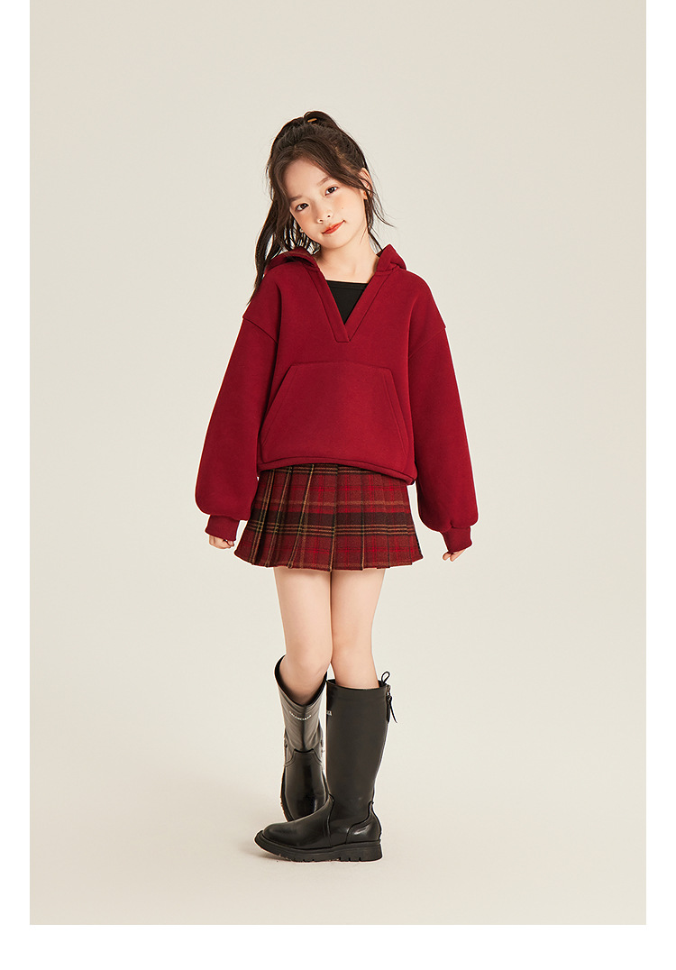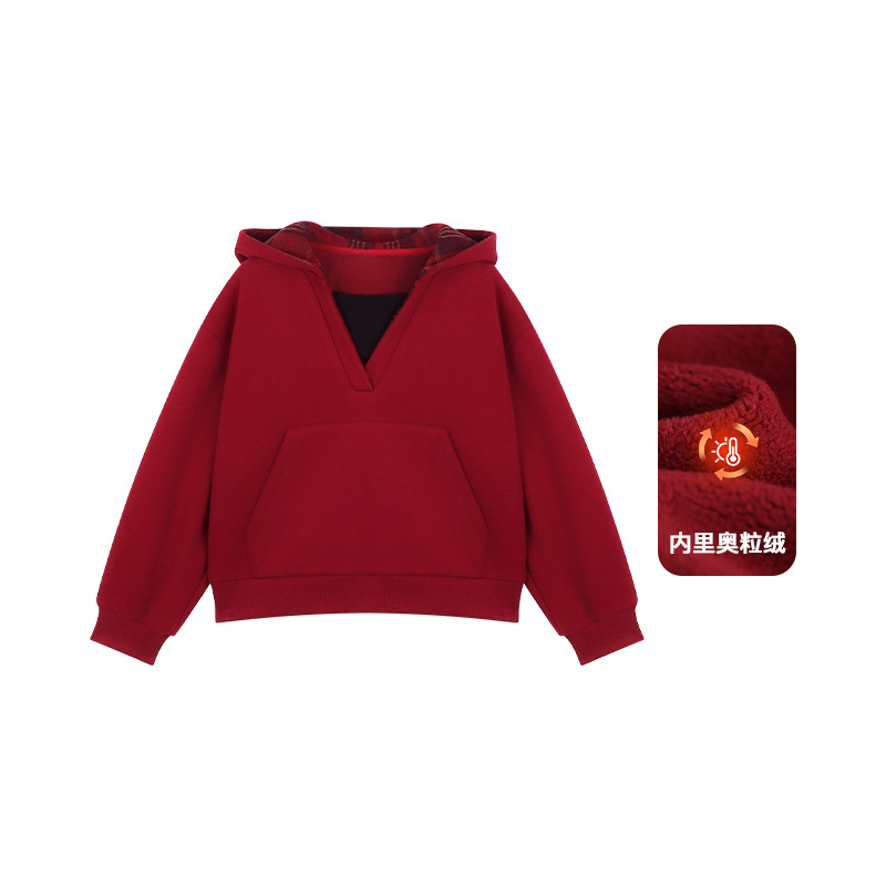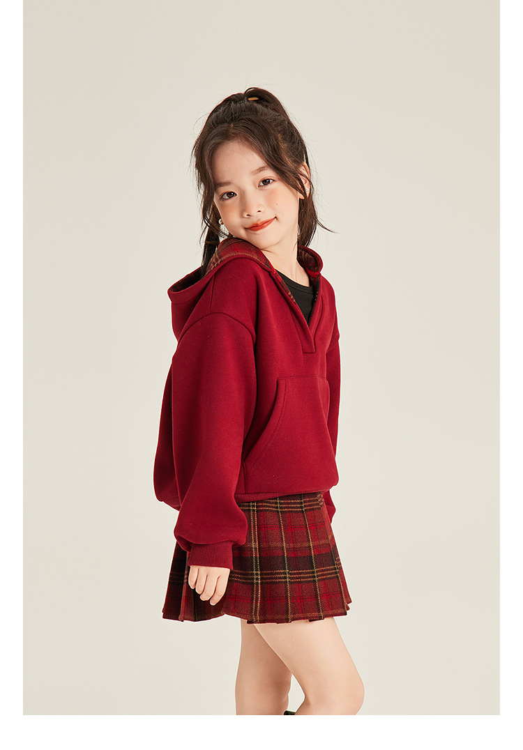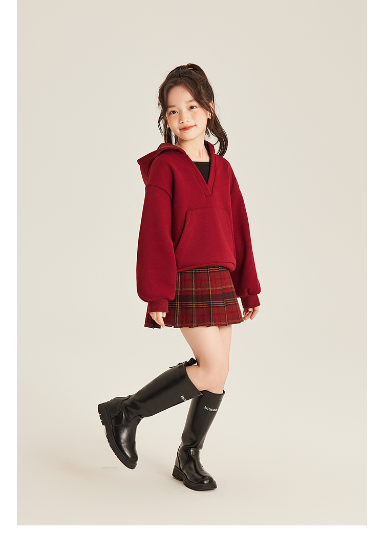 Amybaby Girls 'Top Winter 2024 새로운 캐주얼 따뜻한 게으른 새해 붉은 느슨한 후드 땀스토어 가기
