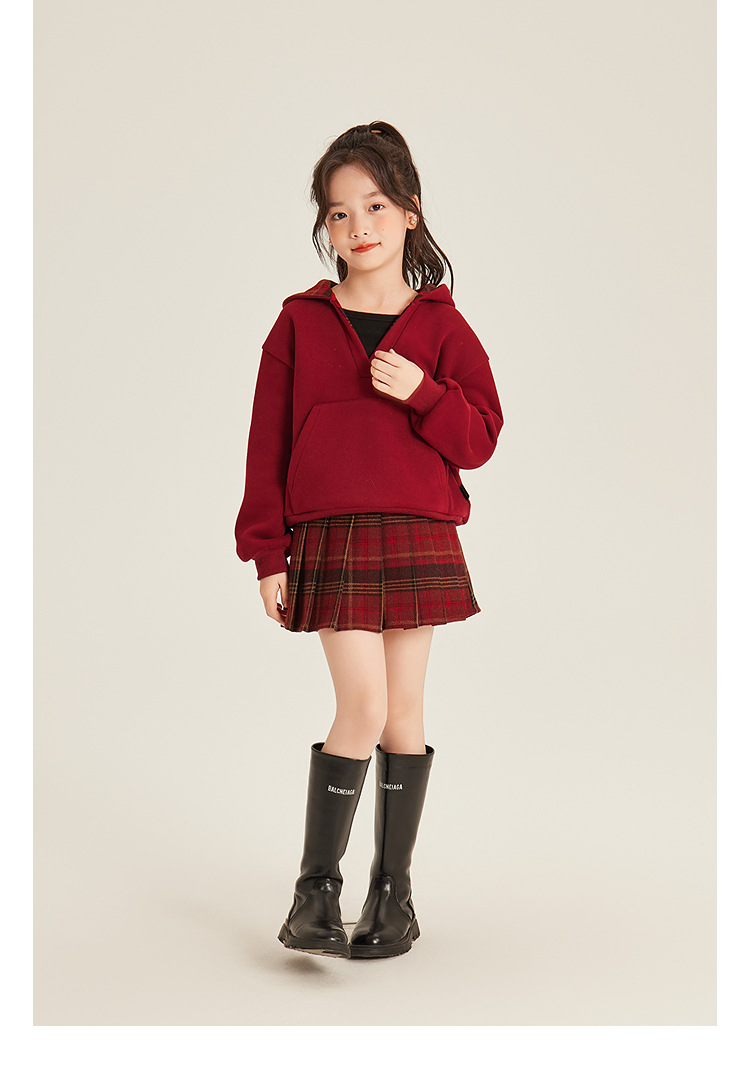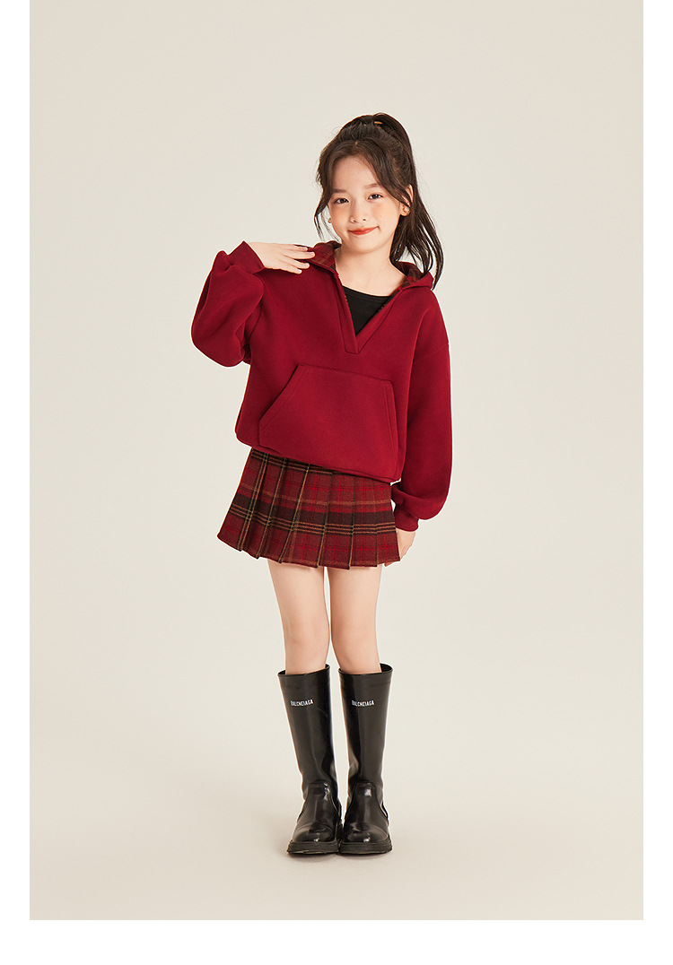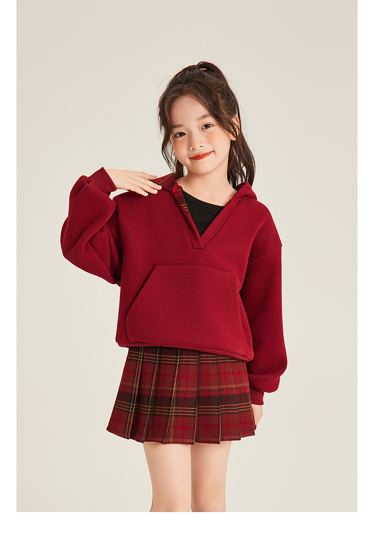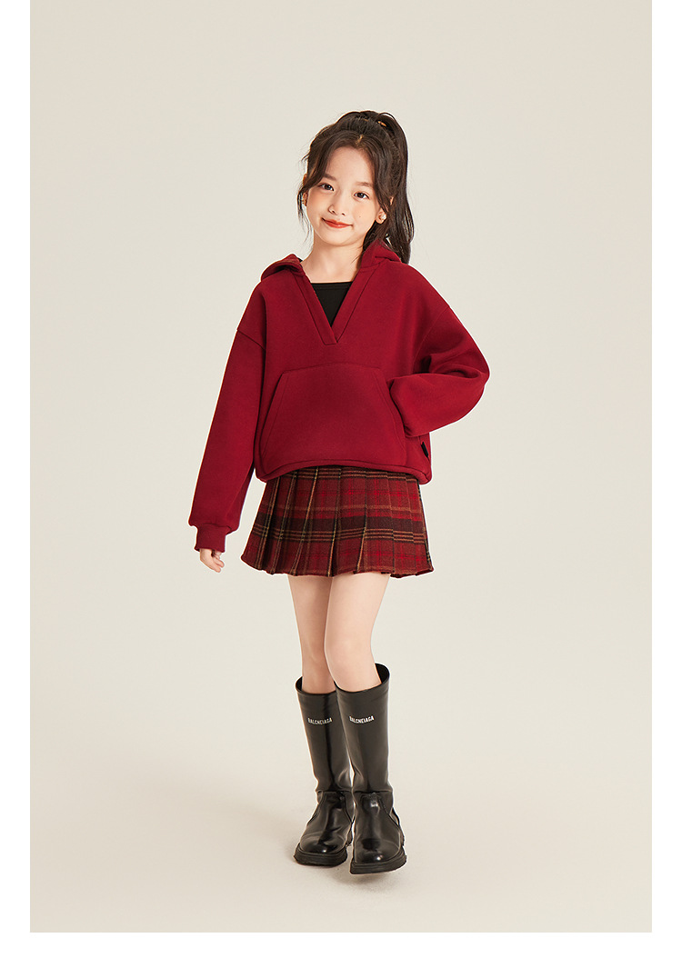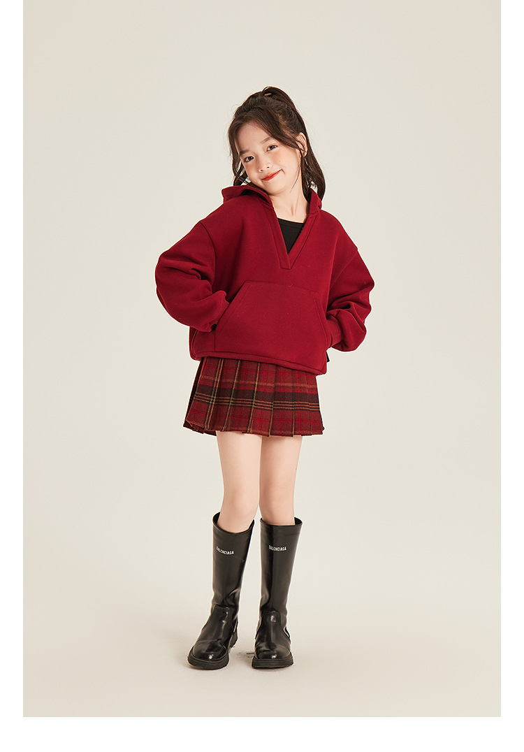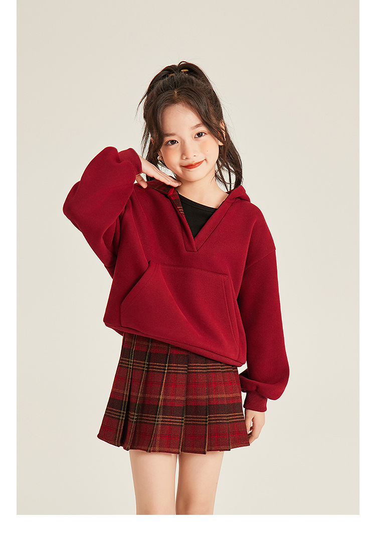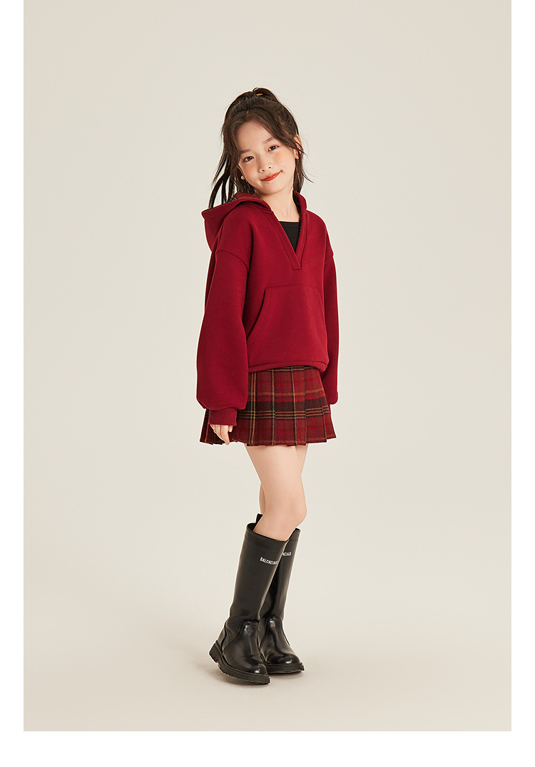 Amybaby Girls 'Top Winter 2024 새로운 캐주얼 따뜻한 게으른 새해 붉은 느슨한 후드 땀스토어 가기