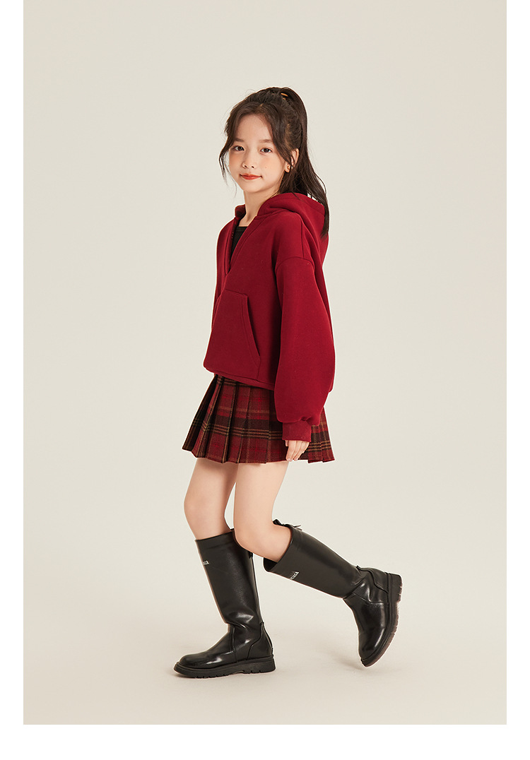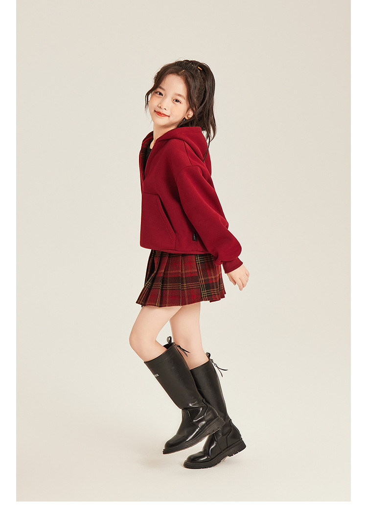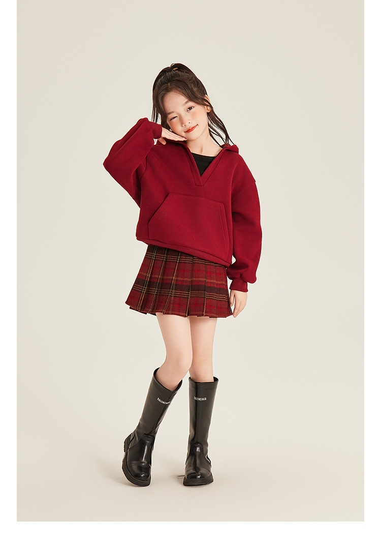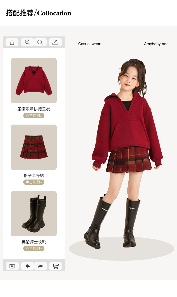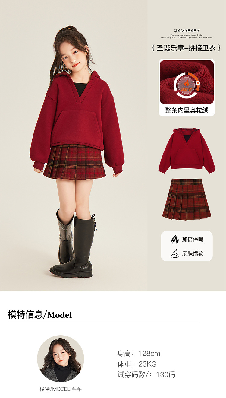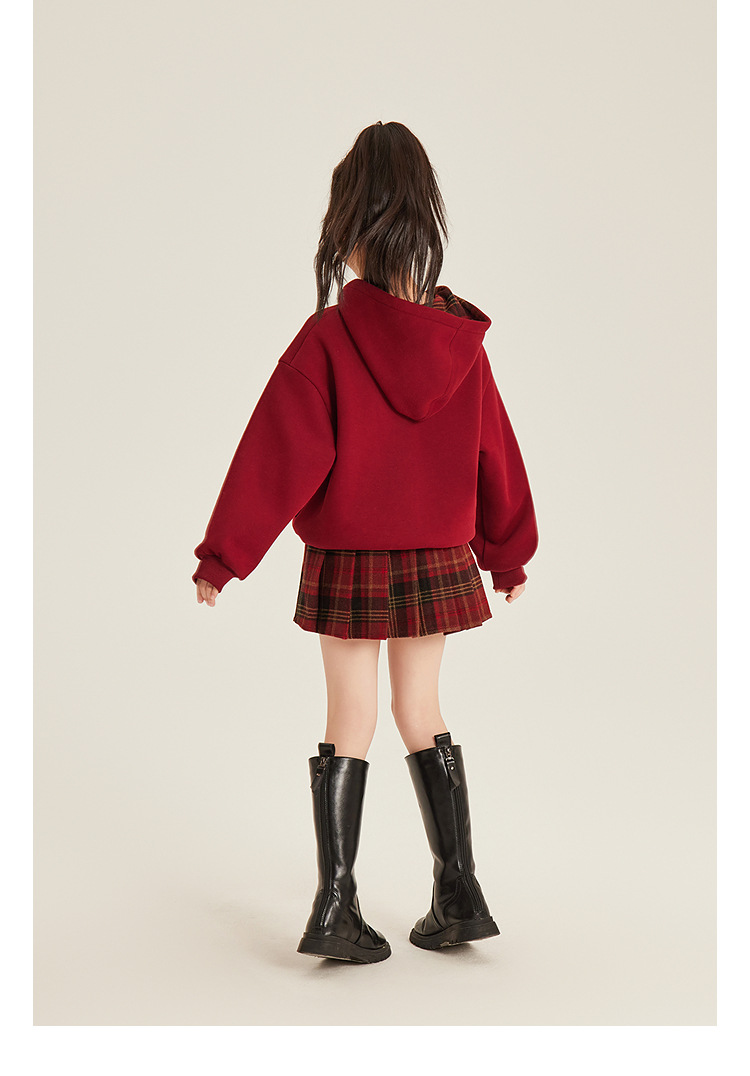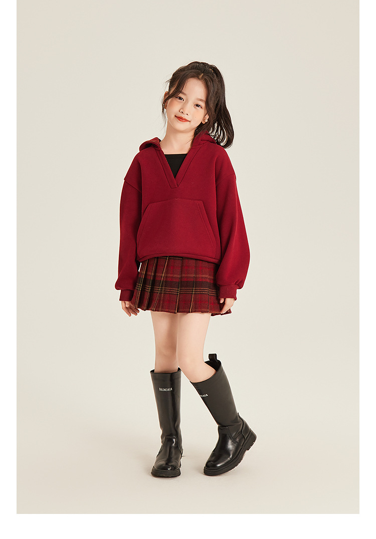 Amybaby Girls 'Top Winter 2024 새로운 캐주얼 따뜻한 게으른 새해 붉은 느슨한 후드 땀스토어 가기