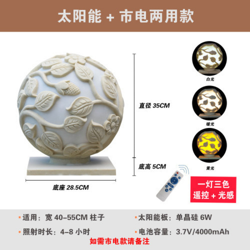 태양 안뜰 기둥 헤드 램프 울타리 게이트 스톤 램프 야외 방수 사암 중국 정원 풍경 빌라 램프
