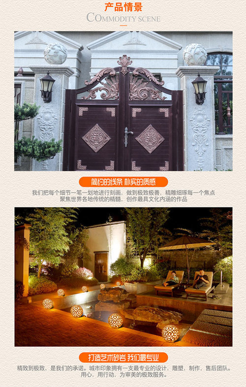 태양 안뜰 기둥 헤드 램프 울타리 게이트 스톤 램프 야외 방수 사암 중국 정원 풍경 빌라 램프스토어 가기