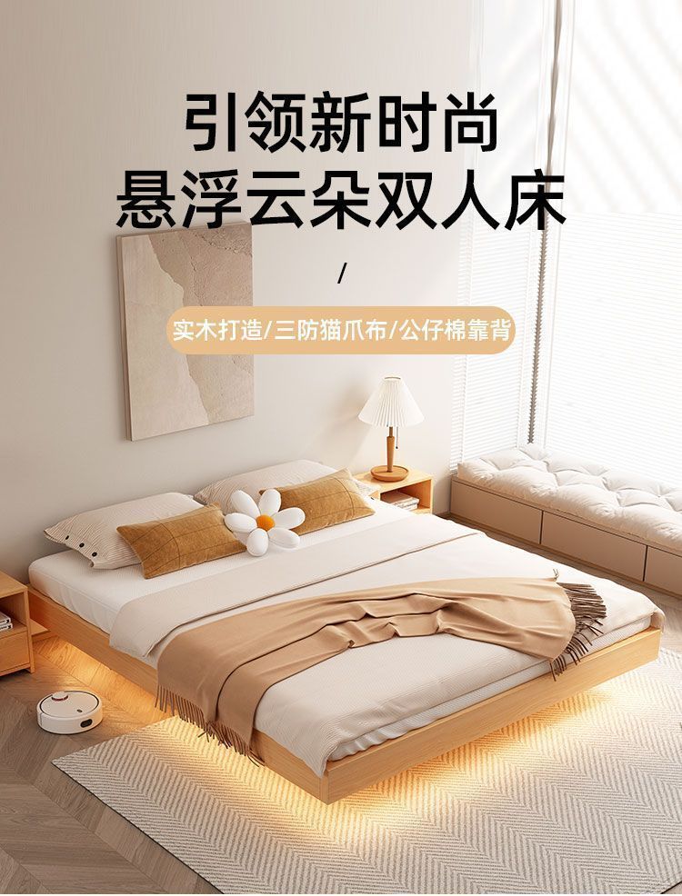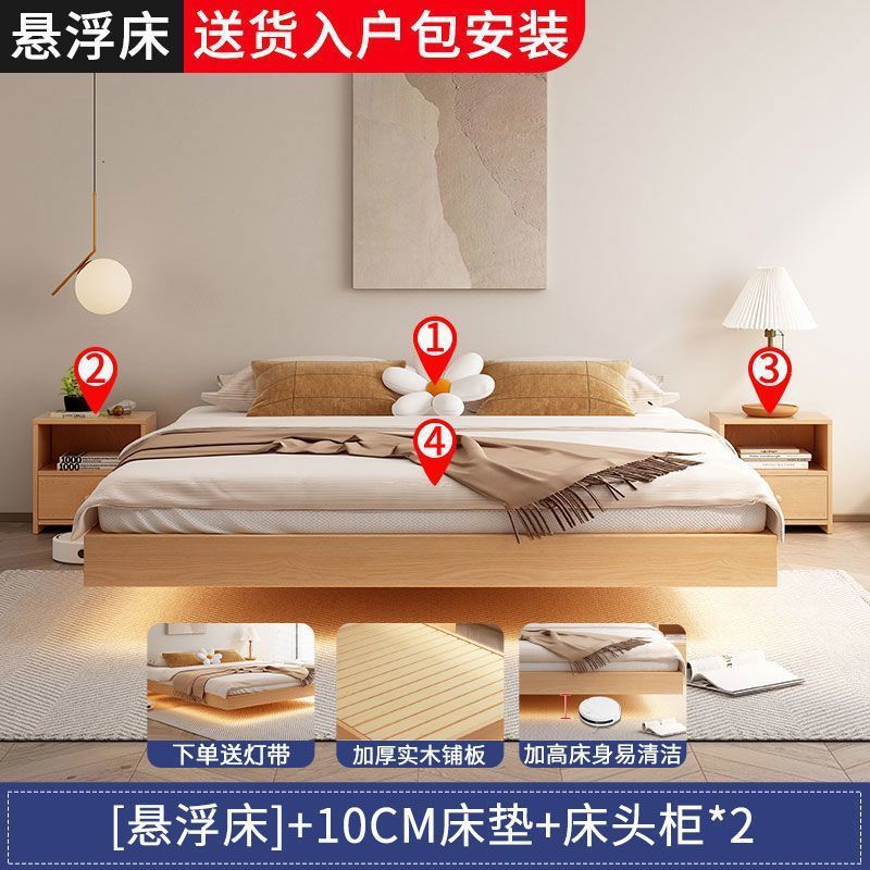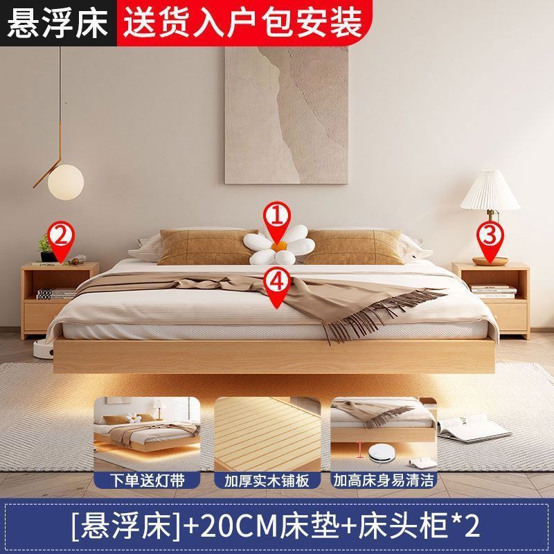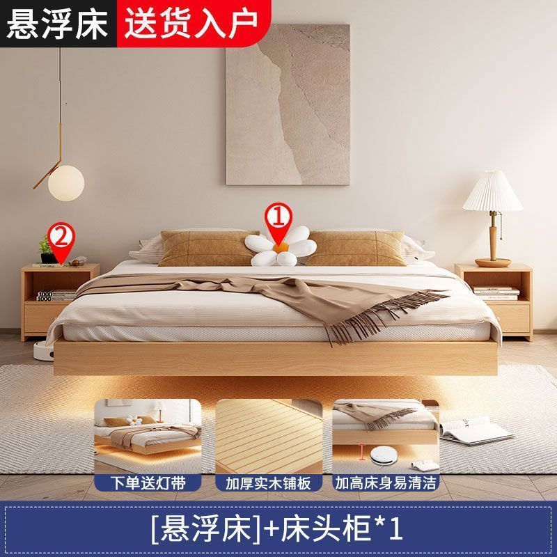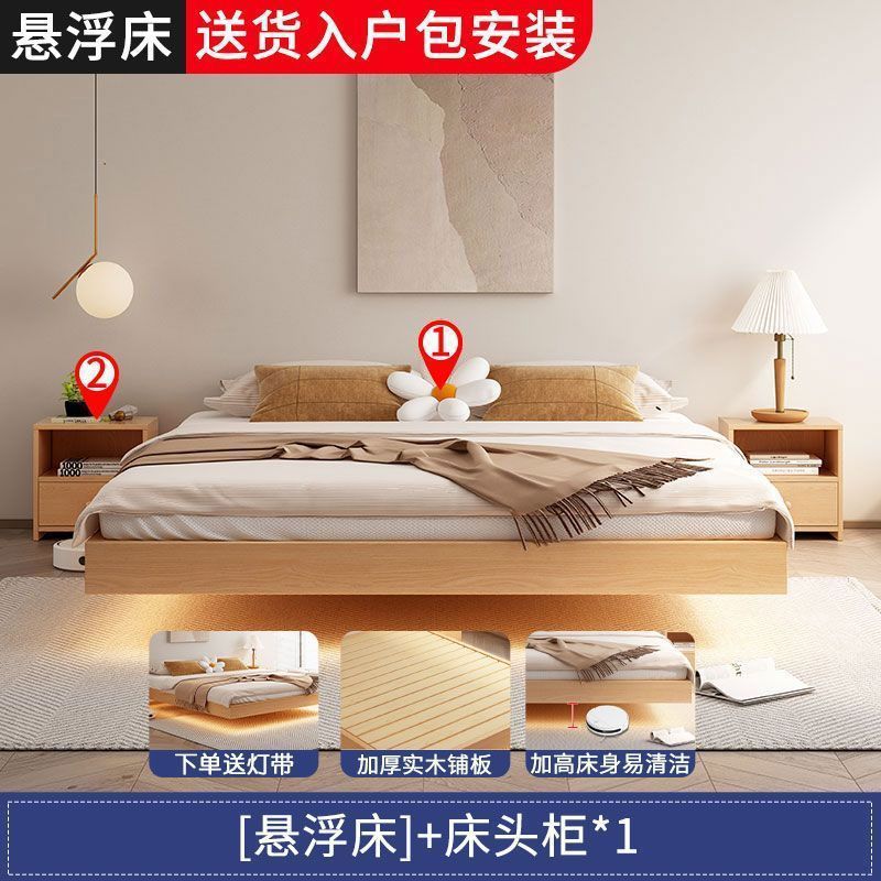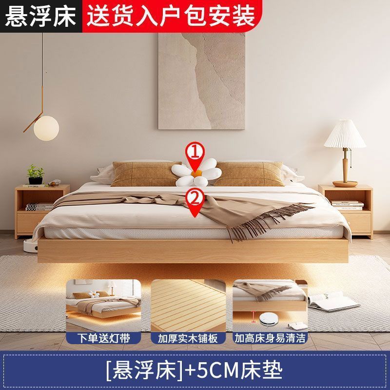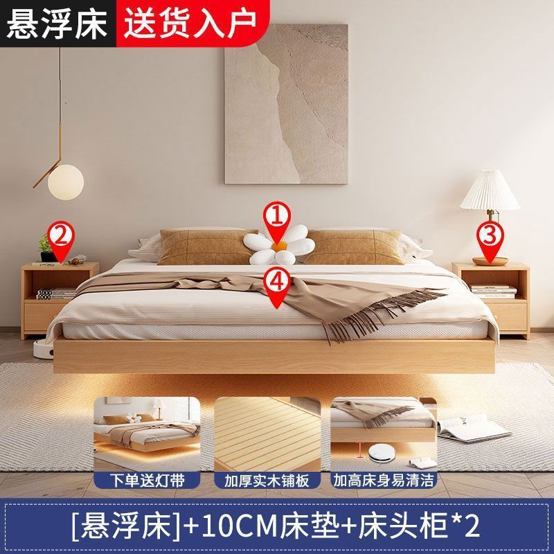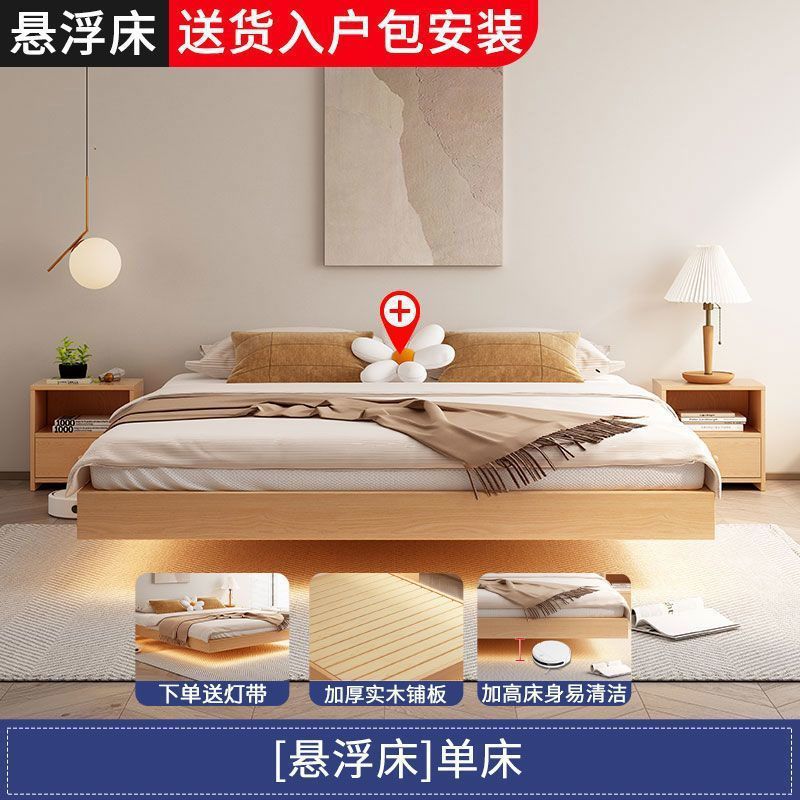 침대 옆 서스펜션 단단한 나무 침대 홈 현대 간단한 더블 침대 프레임 작은 아파트 다다미 싱글 침대스토어 가기