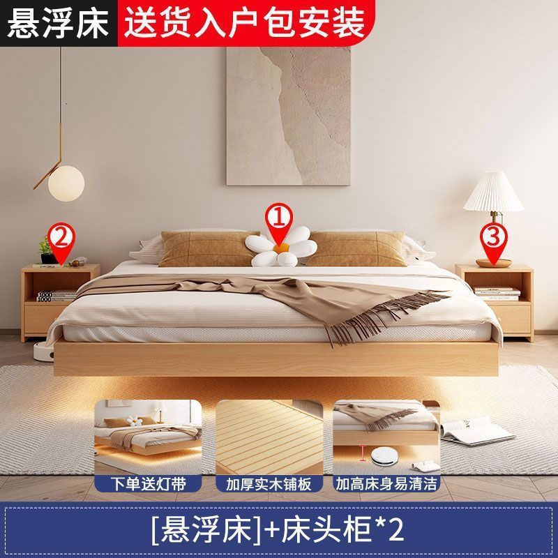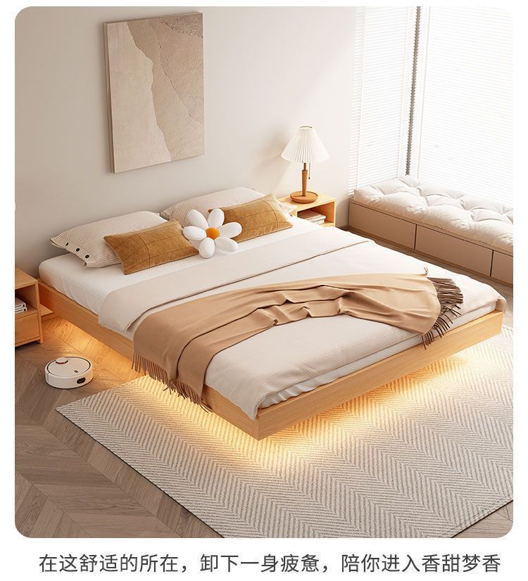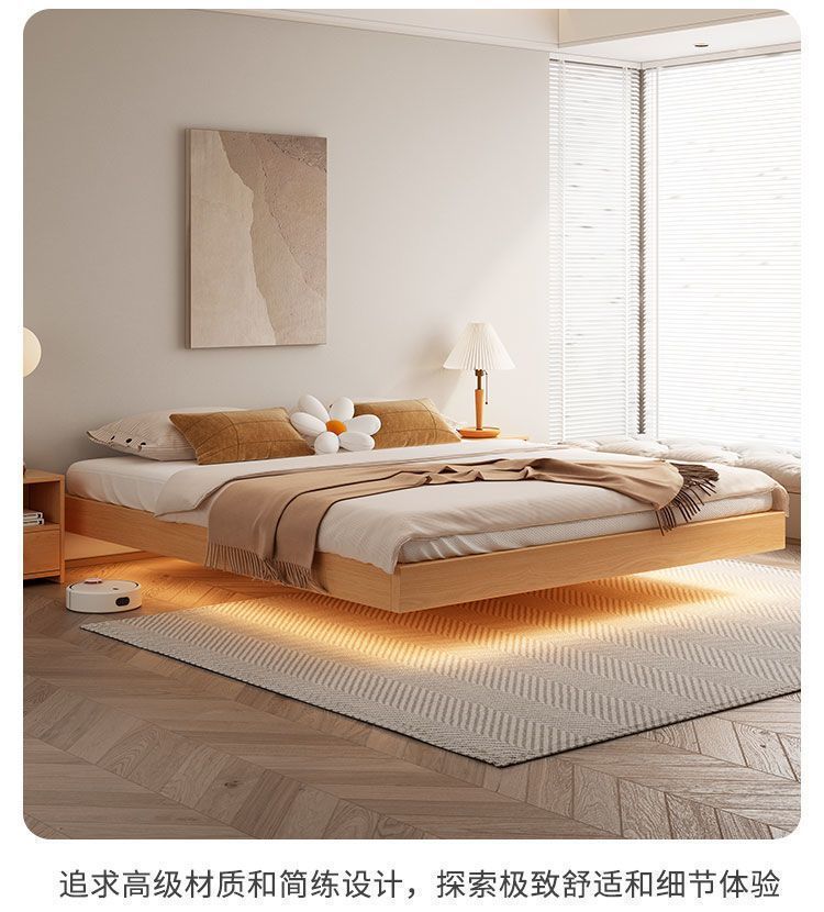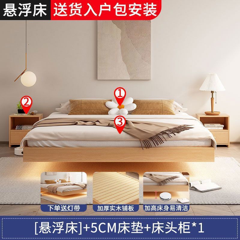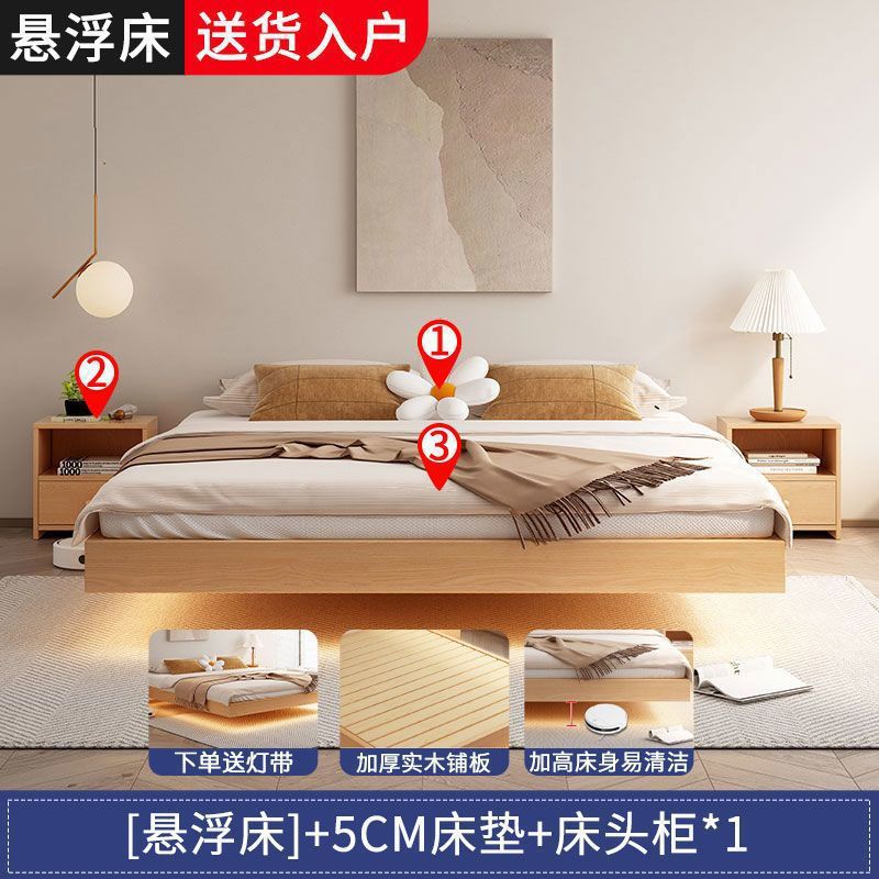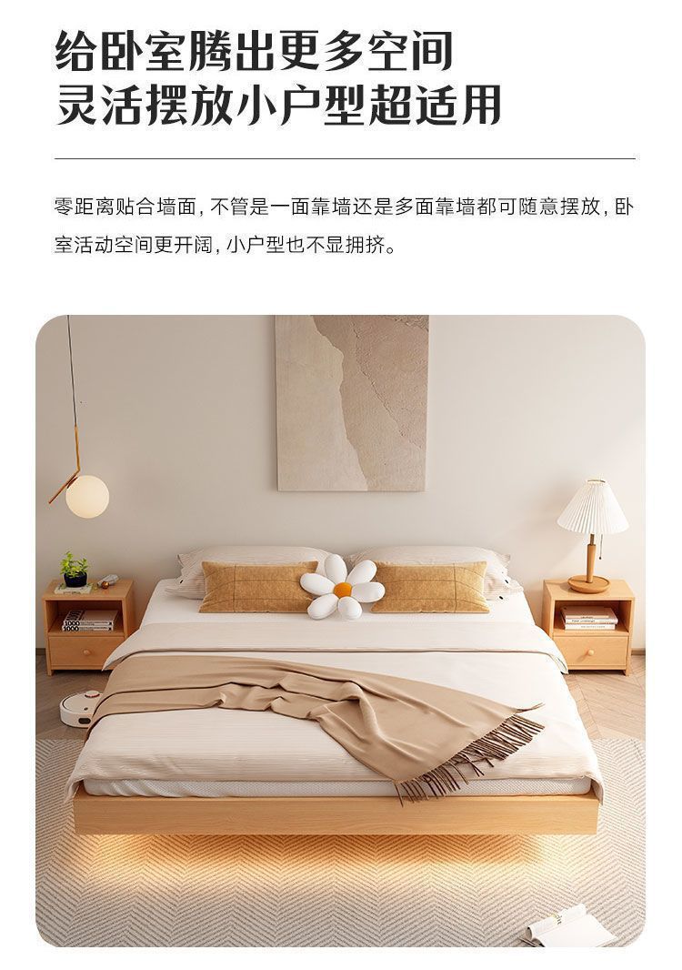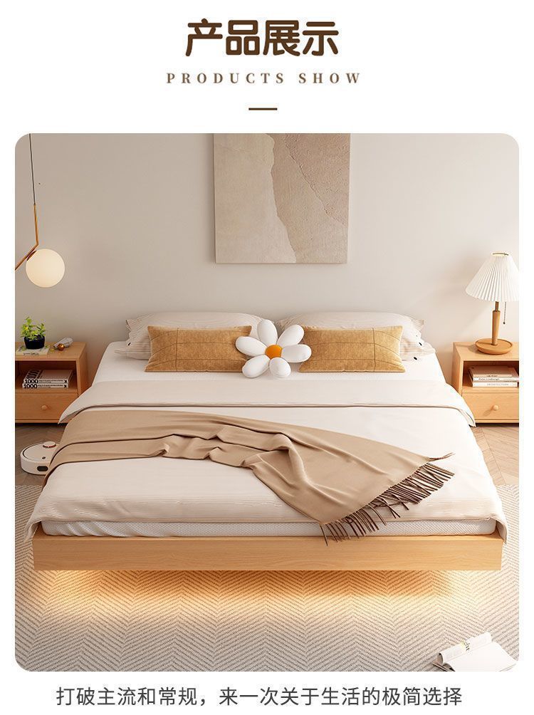 침대 옆 서스펜션 단단한 나무 침대 홈 현대 간단한 더블 침대 프레임 작은 아파트 다다미 싱글 침대