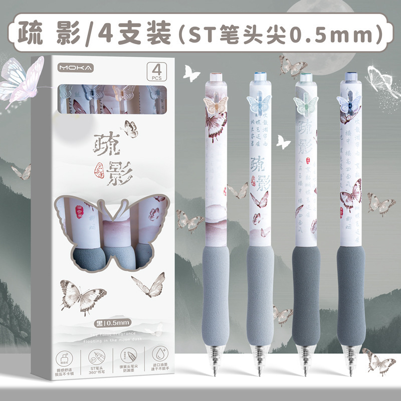 Guofeng 프레스 젤 펜 높은 색상 가치 스테레오 나비 펜 학생 스폰지 소프트 그립 ST 헤드 빠른 드라이 브러시 펜