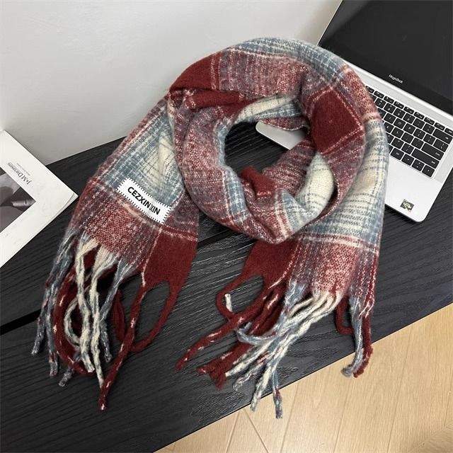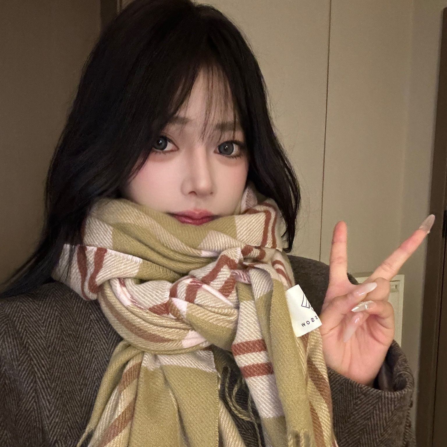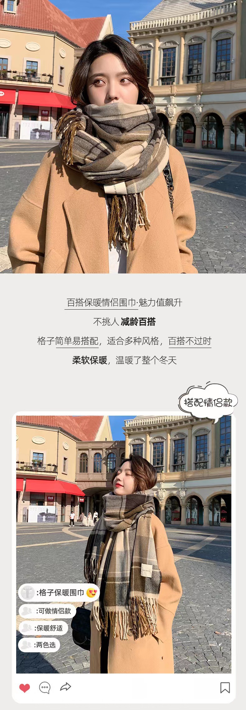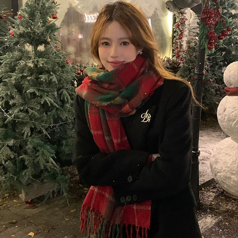 격자 무늬 스카프 여자 가을 겨울 한국 스타일 분위기 붉은 스카프 커플 두꺼운 니트 따뜻한 스카프 올매치 목도리