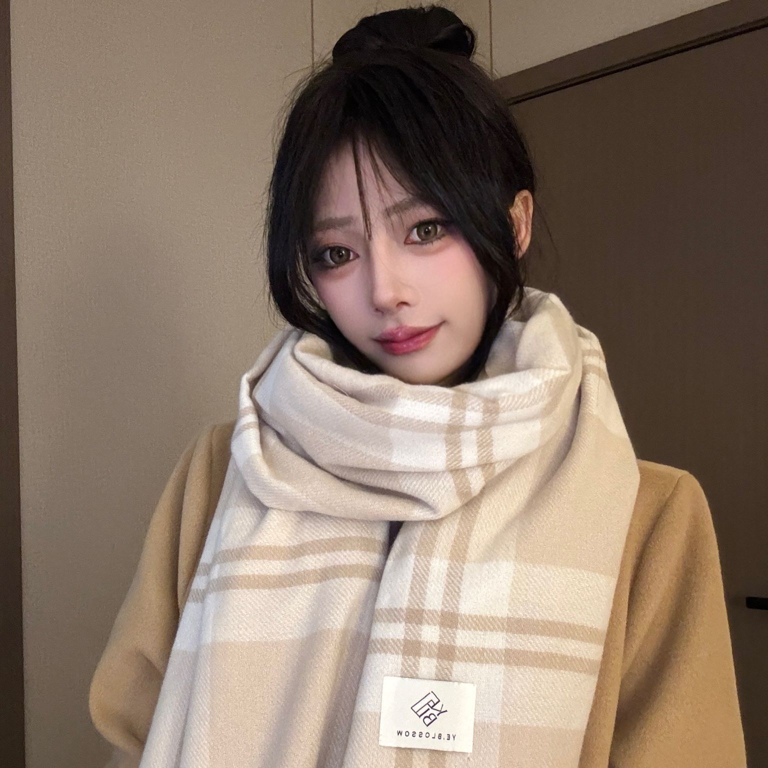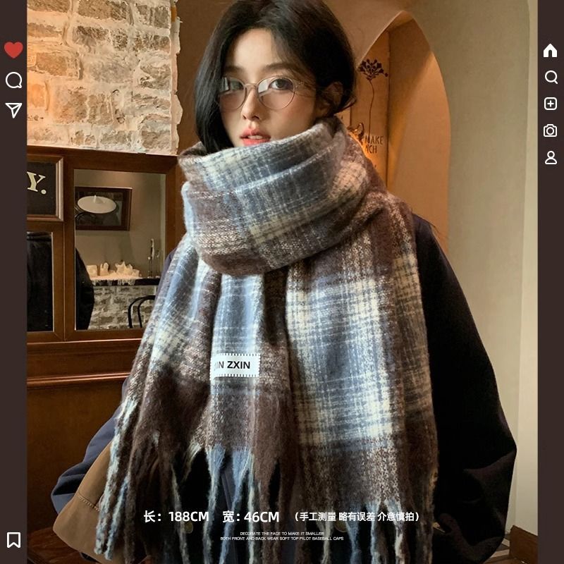 격자 무늬 스카프 여자 가을 겨울 한국 스타일 분위기 붉은 스카프 커플 두꺼운 니트 따뜻한 스카프 올매치 목도리스토어 가기