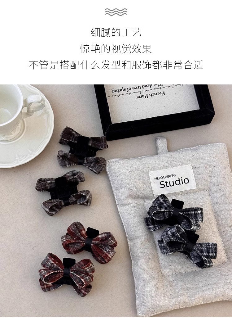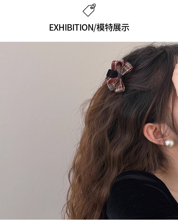 한국 스타일 양모 패턴 활 그랩 클립 스몰 사이즈 여성 가을 및 겨울 사이드 뱅 헤어핀 새로운 도착 상어 클립 헤어 액세서리스토어 가기