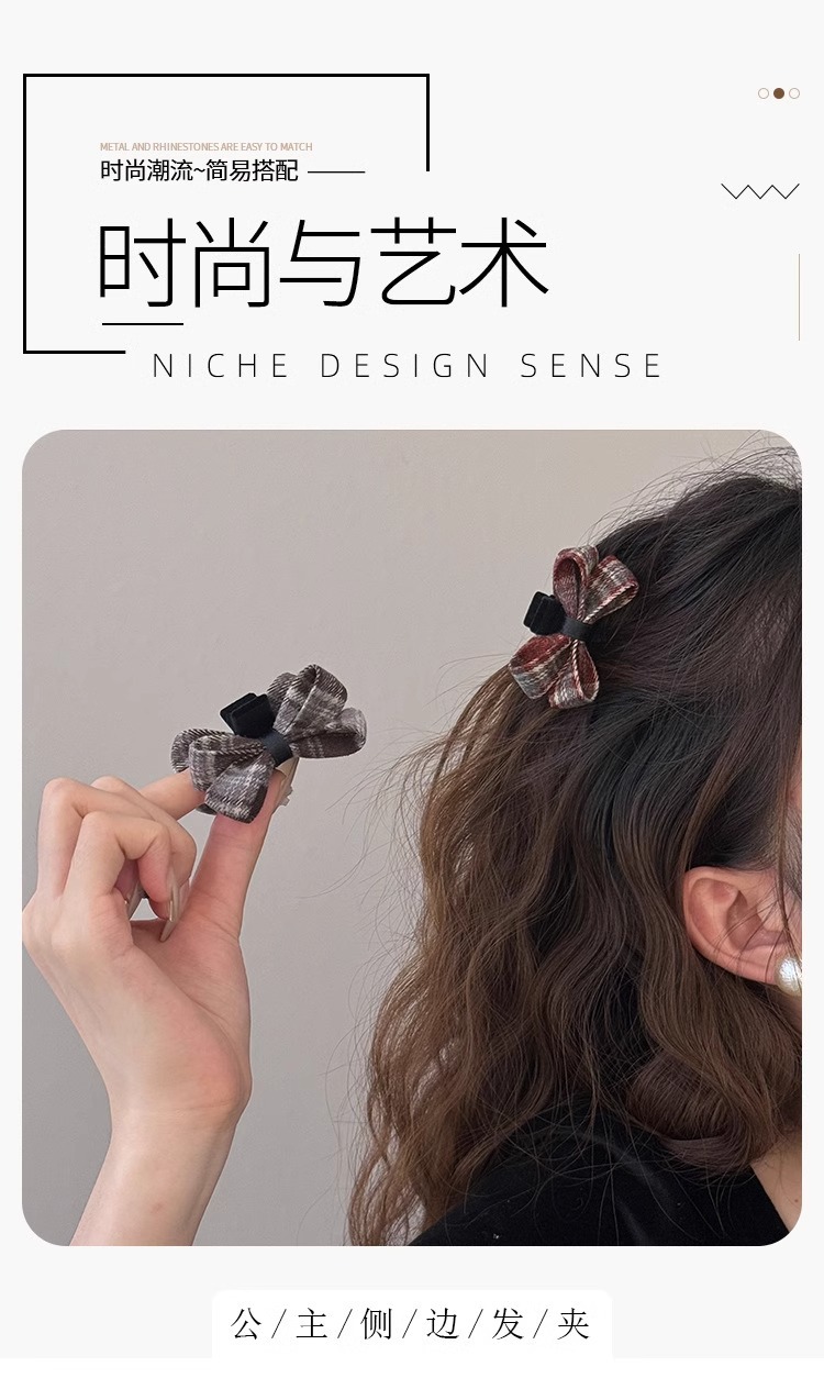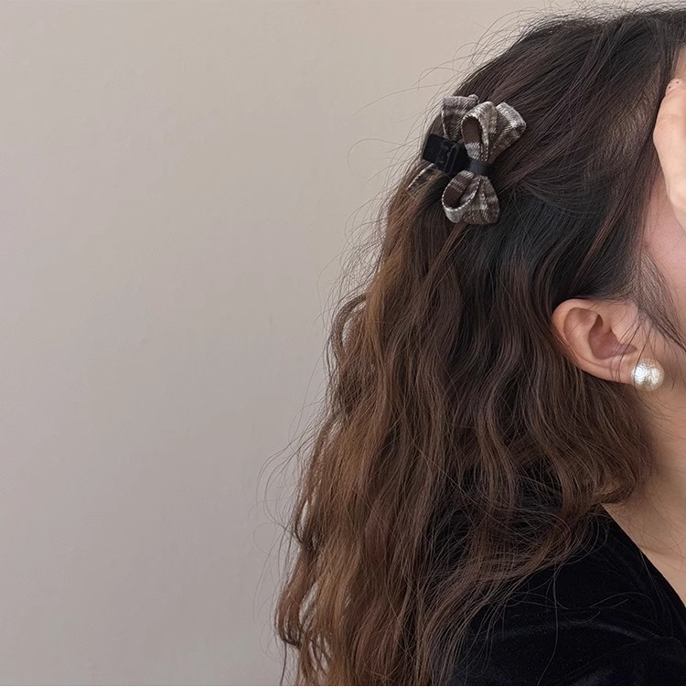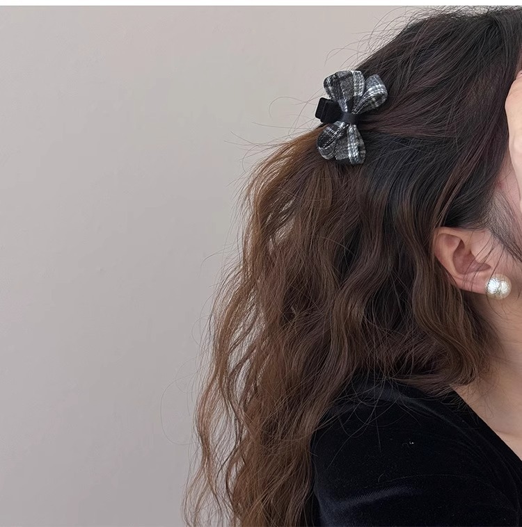 한국 스타일 양모 패턴 활 그랩 클립 스몰 사이즈 여성 가을 및 겨울 사이드 뱅 헤어핀 새로운 도착 상어 클립 헤어 액세서리