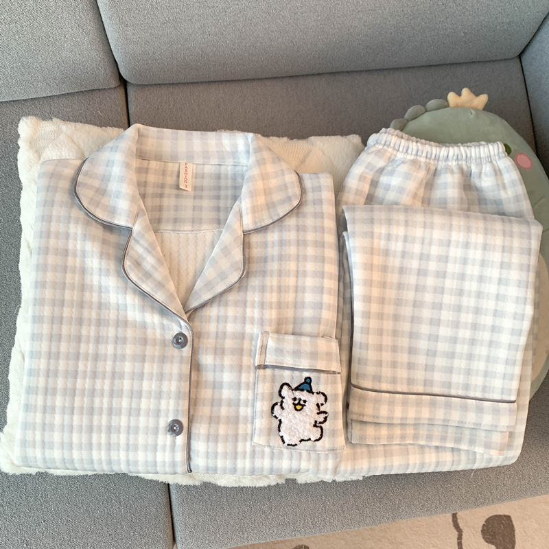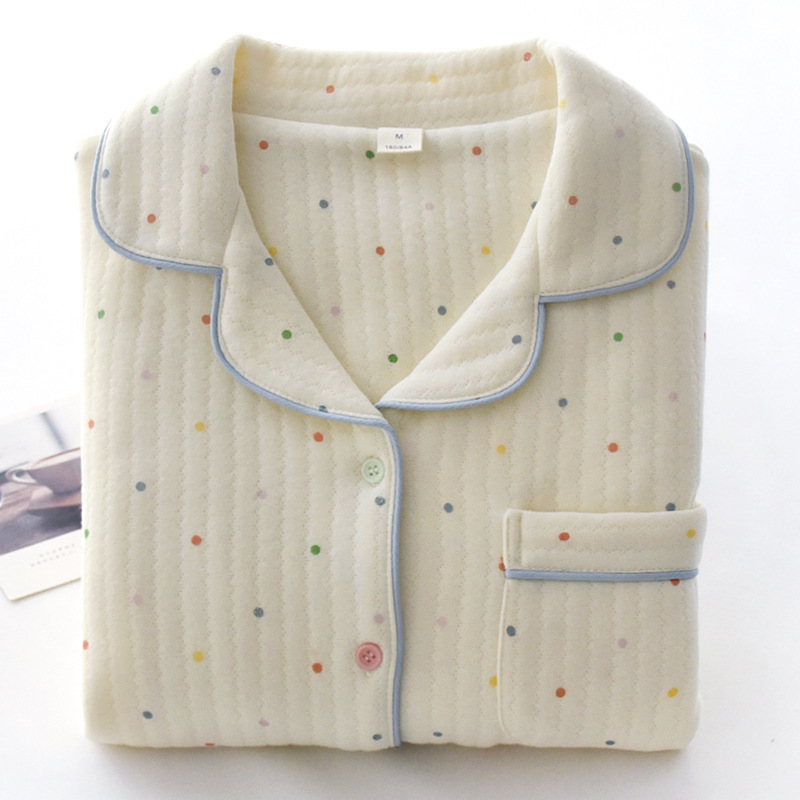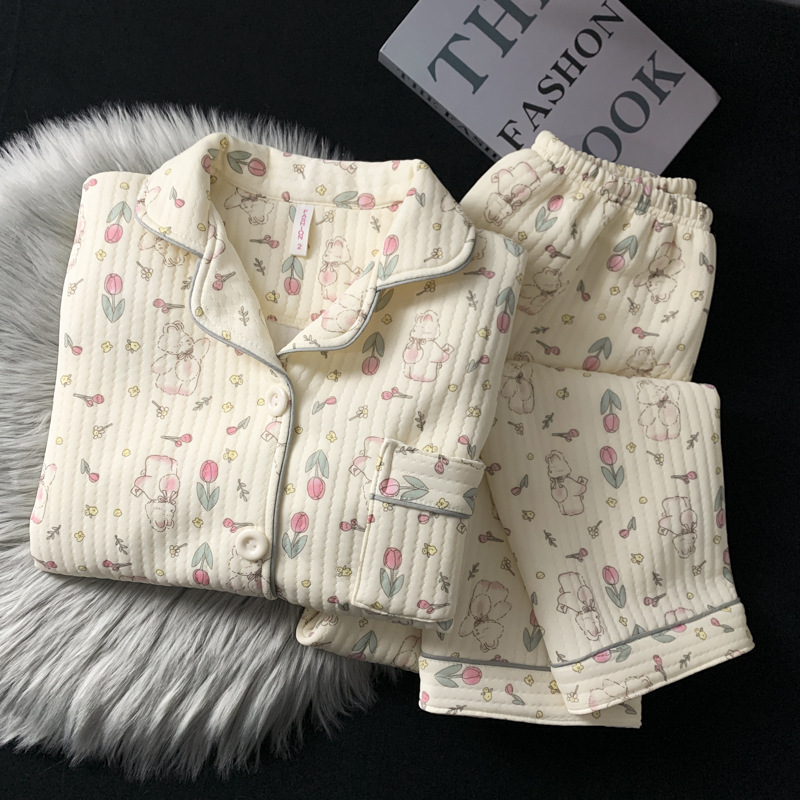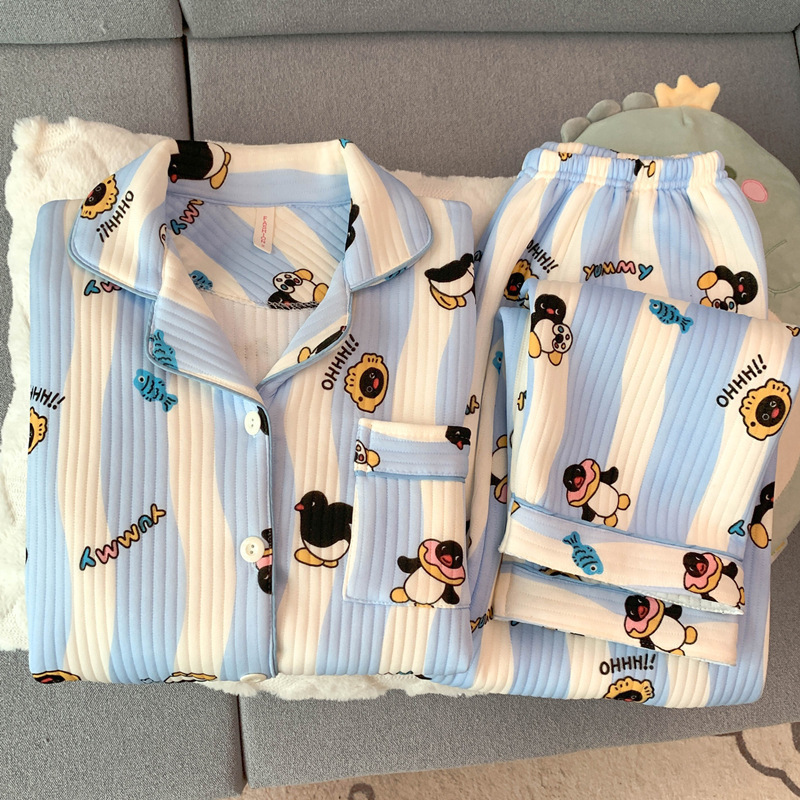 일본 잠옷 여성의 가을과 겨울 샌드위치 공기 퀼트 귀여운 강아지 소녀의 만화 두꺼운 따뜻한 집 옷스토어 가기