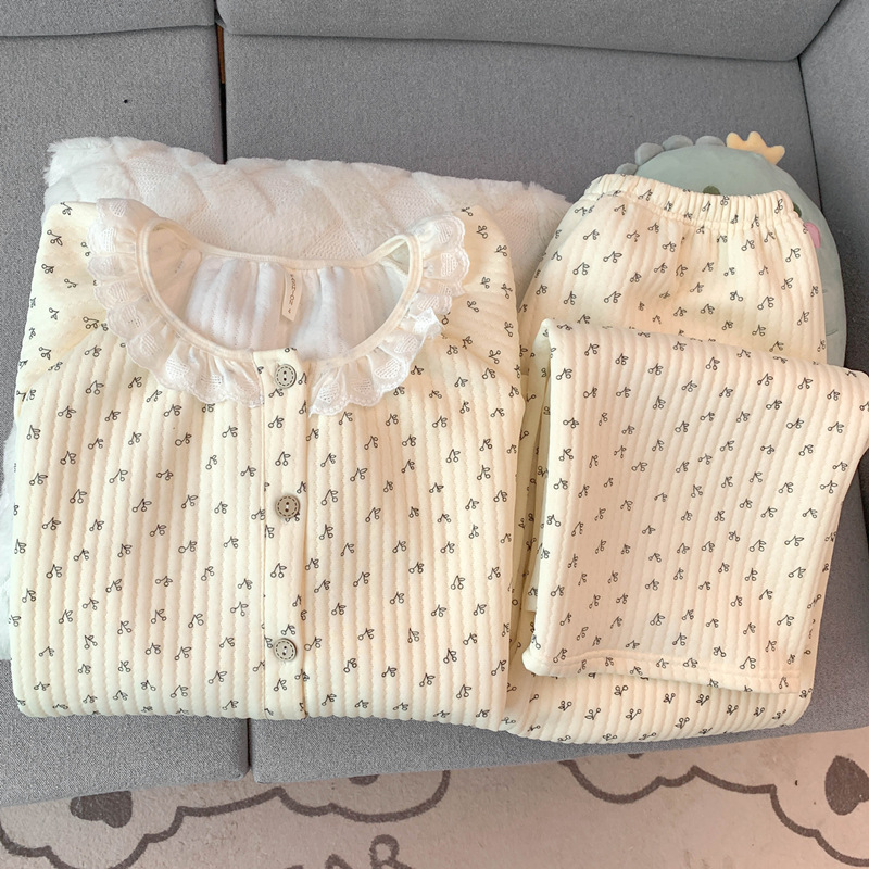일본 잠옷 여성의 가을과 겨울 샌드위치 공기 퀼트 귀여운 강아지 소녀의 만화 두꺼운 따뜻한 집 옷