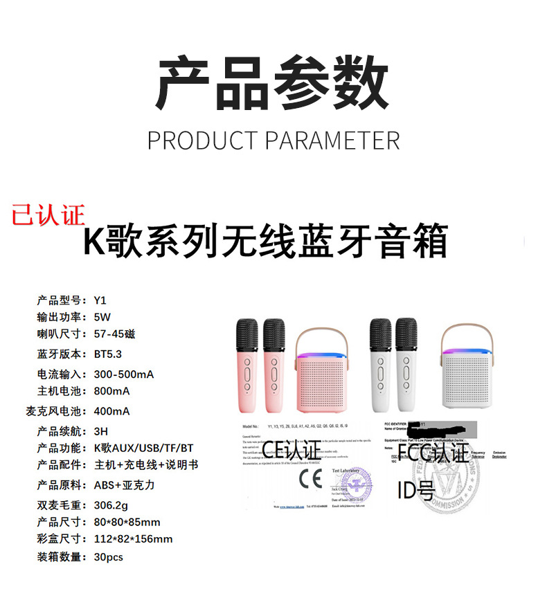 고품질 스피커 마이크 오디오 Y1 올인원 마이크 가정용 무선 블루투스 올인원 K 가족용 kt
