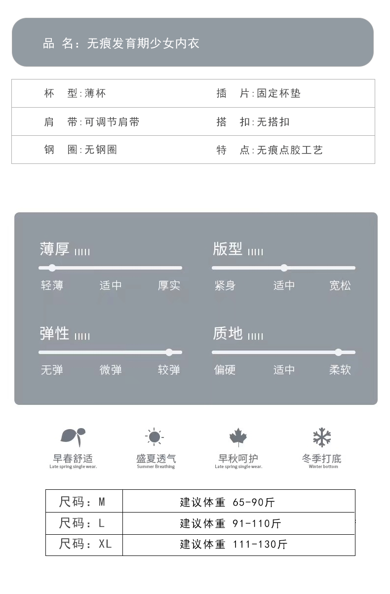 얼음 실크 디스펜싱 발달 속옷 원활한 고정 코스터 포장 가슴 중학교 여학생 브래지어 작은 조끼