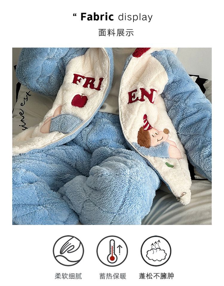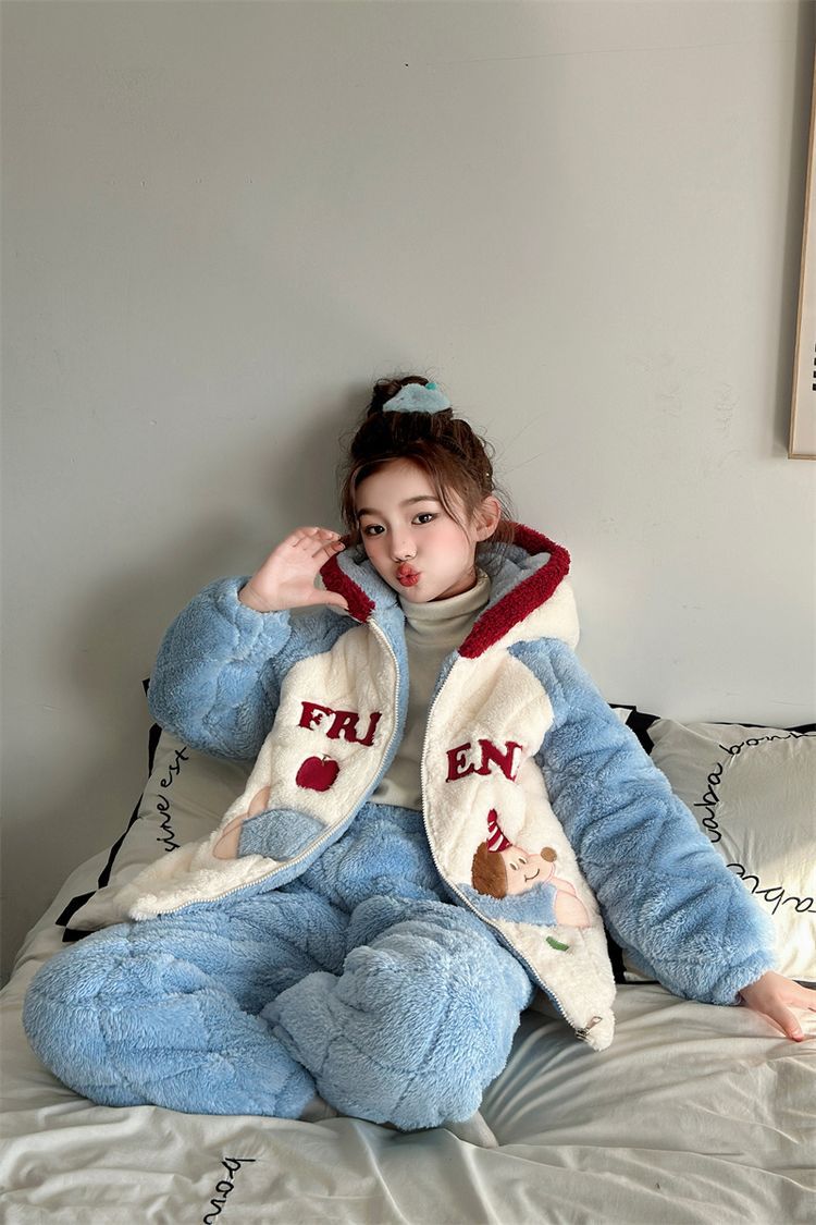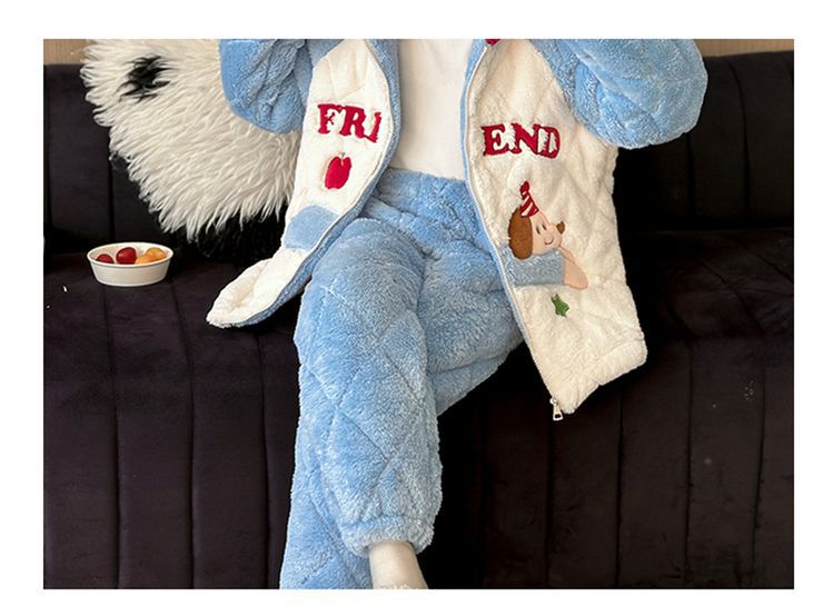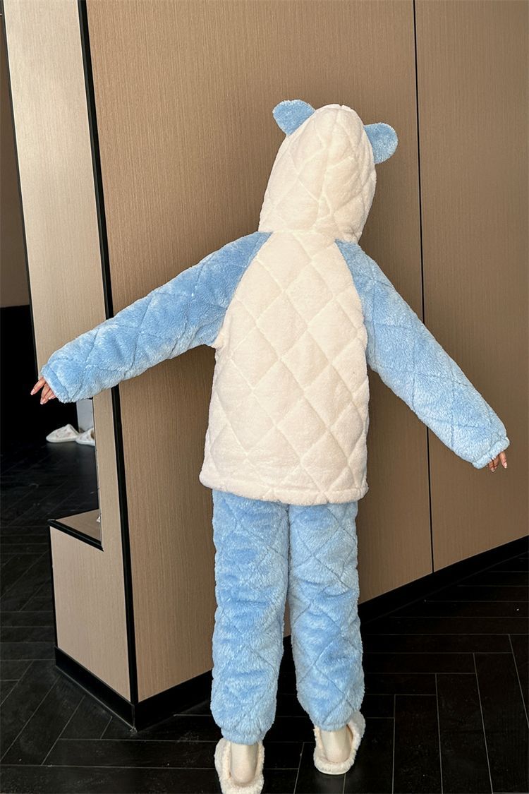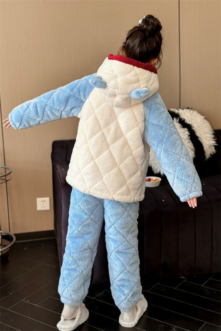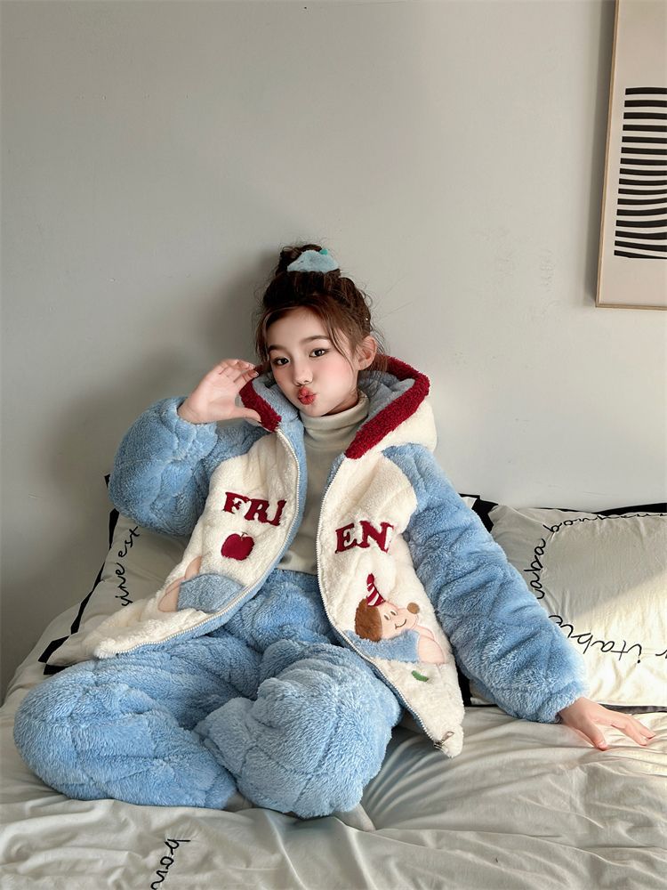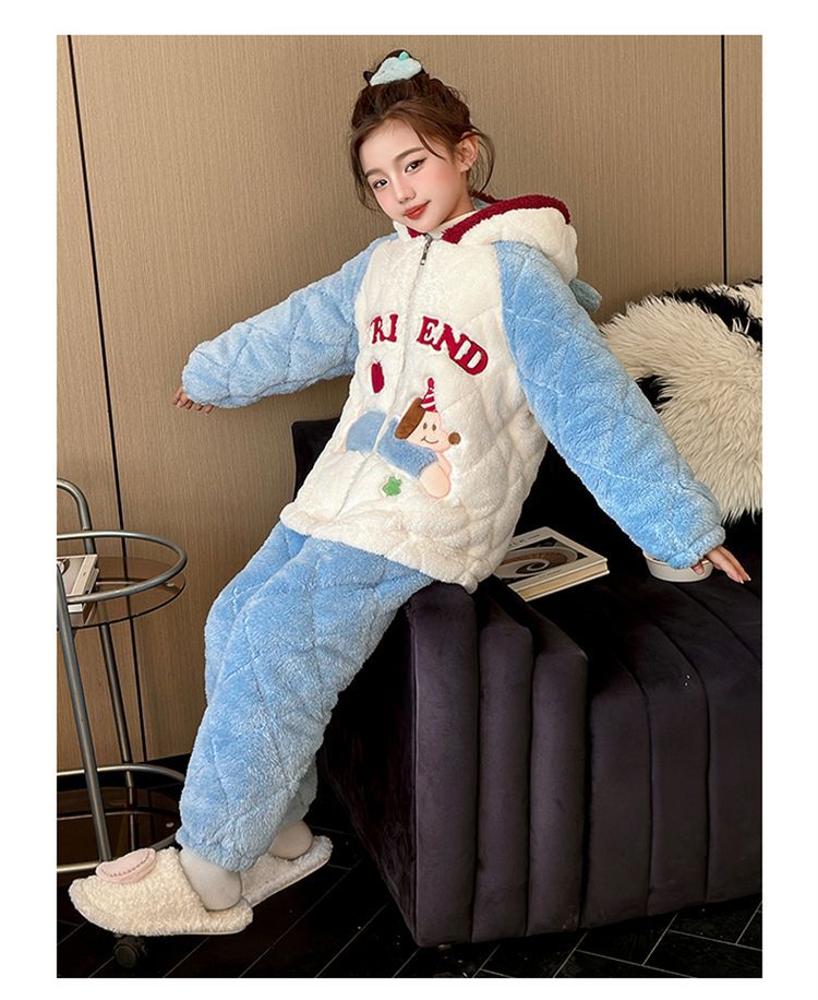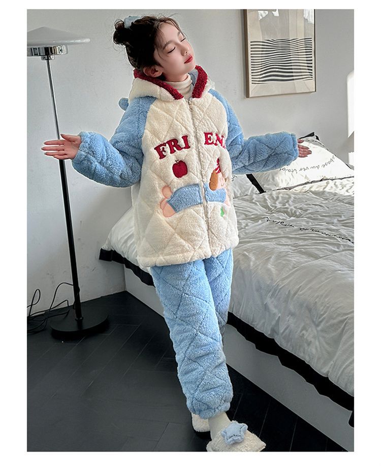 걸스 3 층 퀼트 파자마 세트 어린이 겨울 기모 두꺼운 따뜻한 외모가 후드 홈 옷을 입고스토어 가기