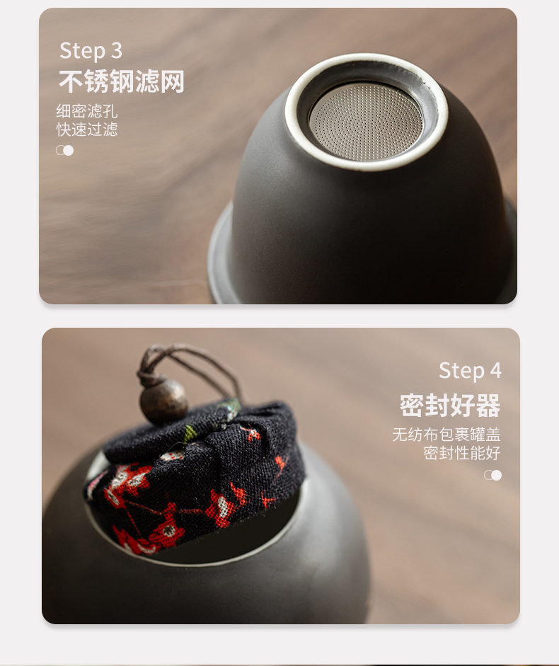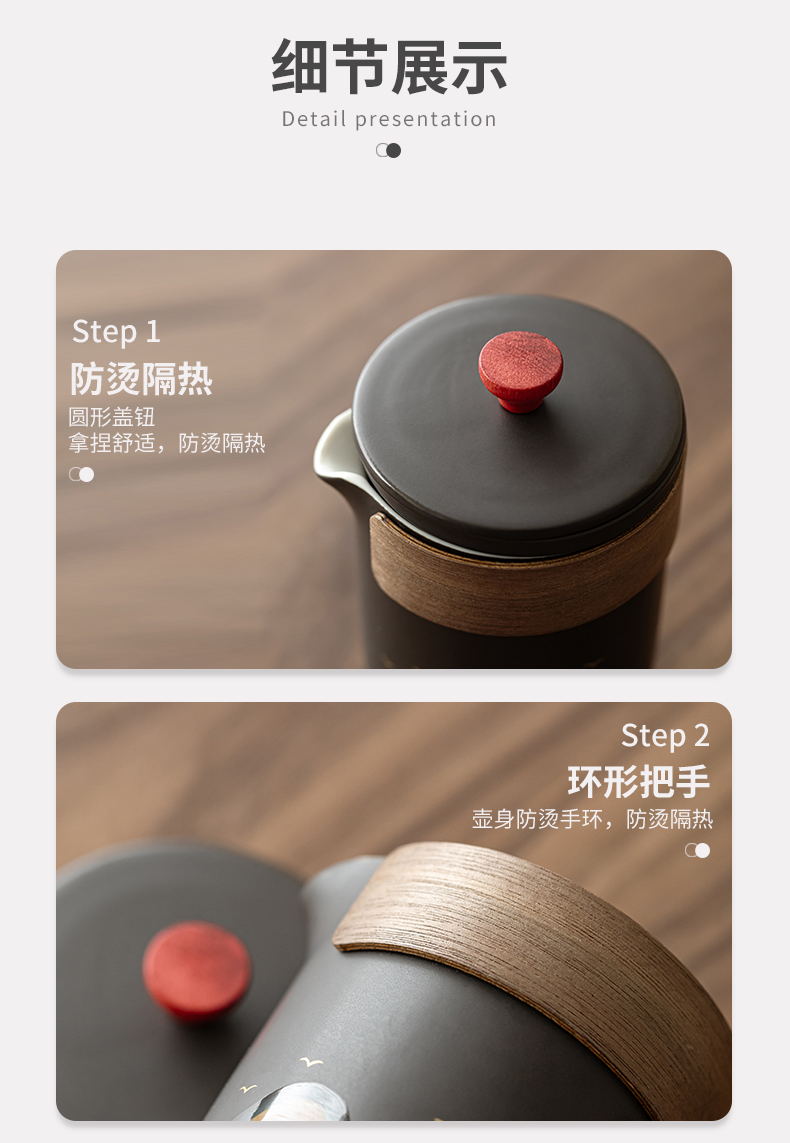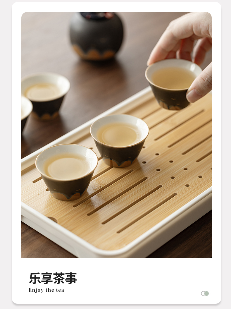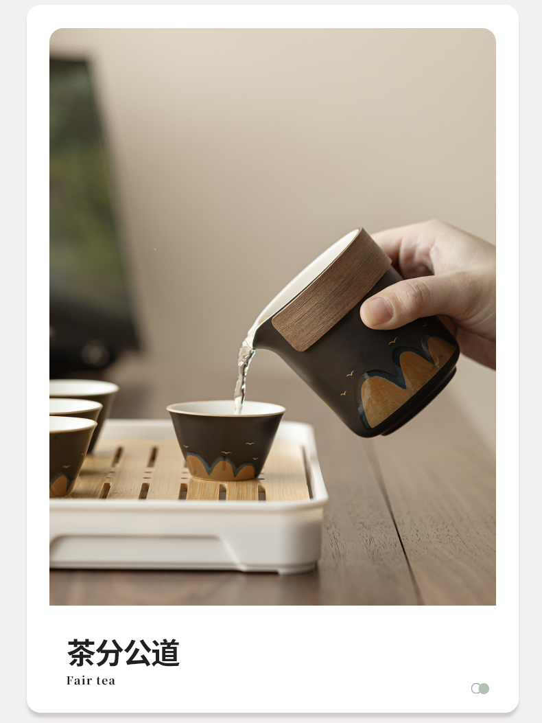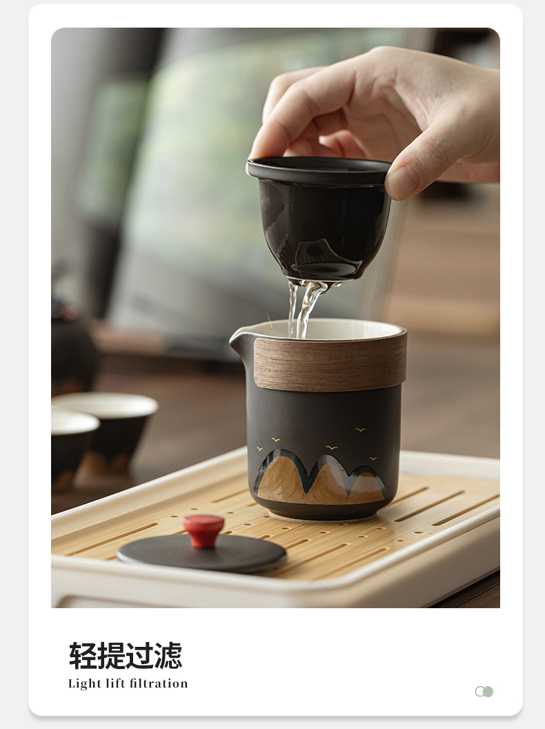 • ♥❤❥❣매트 화이트 Wanli Jiangshan, 냄비 1개, 컵 6개, 캔 1개 + 수건 클립 + 차 트레이 + 회색 가죽 가방❣❥❤