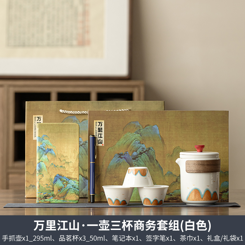 • ♥❤❥❣매트 화이트 Wanli Jiangshan 냄비 3컵 + 펜 + 노트북 + 선물 상자❣❥❤